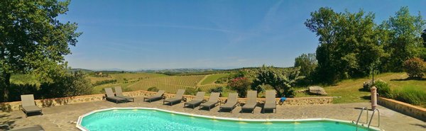 Schönes Bauernhaus mit Bauernhof, Dependance und Swimmingpool in Barberino Val D'Elsa, südlich von Florenz, zu verkaufen. Umgeben von Weinbergen mit 360°-Blick über Chianti, Volterra und San Gimignano, ist es nicht weit von San Donato und Castellina