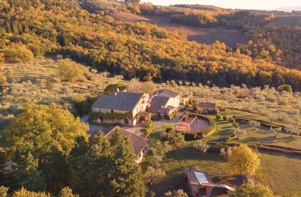 Schönes Bauernhaus mit Bauernhof, Dependance und Swimmingpool in Barberino Val D'Elsa, südlich von Florenz, zu verkaufen. Umgeben von Weinbergen mit 360°-Blick über Chianti, Volterra und San Gimignano, ist es nicht weit von San Donato und Castellina in Chianti entfernt. Im Jahr 1400 als Bauernhaus erbaut, wurde es 1780 in eine Ölmühle umgewandelt und kürzlich zu einem eleganten Bauernhaus mit sieben Wohnungen und einem Studio-Apartment renoviert. Das Herrenhaus besteht aus mehreren Etagen mit Stein- und Ziegelfassaden, die auf einen Innenhof blicken. Im Inneren sind typisch toskanische Details wie sichtbare Balken und Terrakottaböden erhalten geblieben. Im Erdgeschoss befinden sich gemütliche Räume: Salons, einer davon mit dem alten Mühlstein, ein Restaurant, eine professionelle Küche, ein rustikaler Keller, ein Büro, eine Waschküche und technische Räume. Im Erdgeschoss befinden sich vier Wohnungen (ein bis zwei Zimmer), während im ersten Stock ein Wohnhaus mit acht Zimmern und Bad liegt. Eine sechste Wohnung, ebenfalls im ersten Stock, hat einen separaten Eingang über eine Außentreppe und zwei Zimmer mit Bad. Vor dem Haus befindet sich eine Panoramaterrasse mit Pavillon und Blick auf den Garten und den von Olivenbäumen umgebenen Swimmingpool. Eine unabhängige Hütte, die 2017 in modernem Stil und mit Fußbodenheizung renoviert wurde, beherbergt die siebte Wohnung mit einem hellen Wohnzimmer und zwei Schlafzimmern mit Bad. Ein separates Nebengebäude wurde in eine Suite/Studio mit Veranda umgewandelt. Der Bio-Bauernhof umfasst 53 Hektar mit 600 Olivenbäumen, Ackerland, Wald und einem kleinen Weinberg. Photovoltaik-Paneele liefern Strom und Warmwasser; zwei artesische Brunnen und ein Teich sorgen für die Selbstversorgung mit Wasser. Eine Oase der Ruhe in kurzer Entfernung zu allen Dienstleistungen, ideal als Wohnsitz oder zur Fortsetzung des etablierten Agrotourismus.