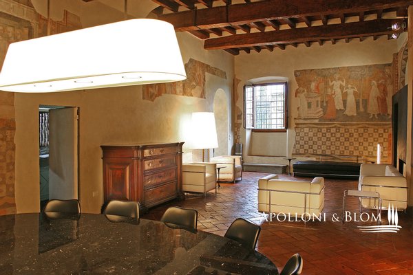 Zeitlose Eleganz zwischen Kunst und Geschichte, Teil einer Landvilla mit Fresken, feinen Oberflächen, Garten, zu verkaufen in der Gegend von Castello in Florenz. Vor den Toren des ersten Hügels im Norden von Florenz, in einem ländlichen Wohngebiet, das in den vergangenen Jahrhunderten von Adelsfamilien als Feriendomizil genutzt wurde, steht diese charmante Villa aus dem 14. Jahrhundert, die heute in zwei Einheiten aufgeteilt ist. Die zum Verkauf stehende Wohnung erstreckt sich über zwei Ebenen - Erdgeschoss und Souterrain - mit einer Gesamtfläche von über 300 Quadratmetern, die sich harmonisch zwischen historischen Räumen und zeitgenössischen architektonischen Lösungen verteilen. Bei der geschickten und respektvollen Renovierung wurden die ursprünglichen Elemente wie die Fresken aus dem 14. Jahrhundert, die alten Terrakottaböden und die Decken mit sichtbaren Balken aufgewertet und mit modernen Geräten kombiniert, die die Wohnlichkeit und den Komfort optimieren. Besonders hervorzuheben ist das Arbeitszimmer mit einem Dachboden aus Holz und Stahl sowie das Hauptschlafzimmer, ebenfalls mit einem Dachboden, ausgestattet mit einem eigenen Bad und einem begehbaren Kleiderschrank. Die gemauerte Küche erinnert an die gesellige Atmosphäre der toskanischen Häuser von einst, während die Einrichtung, ein raffiniertes Gleichgewicht zwischen Antiquitäten und zeitgenössischem Design, dazu beiträgt, jeden Raum warm und einladend zu gestalten. Zwei elegante Marmorbäder, ein Kellergeschoss mit Waschküche, Keller und Wirtschaftsräumen sowie ein perfekt gepflegter, 480 Quadratmeter großer Privatgarten mit Zitronenbäumen, saisonalen Blumen und einer Glyzinien-Pergola, die zum Essen im Freien einlädt, vervollständigen das Anwesen. Der Garten ist befahrbar und verfügt über Außenparkplätze.