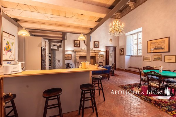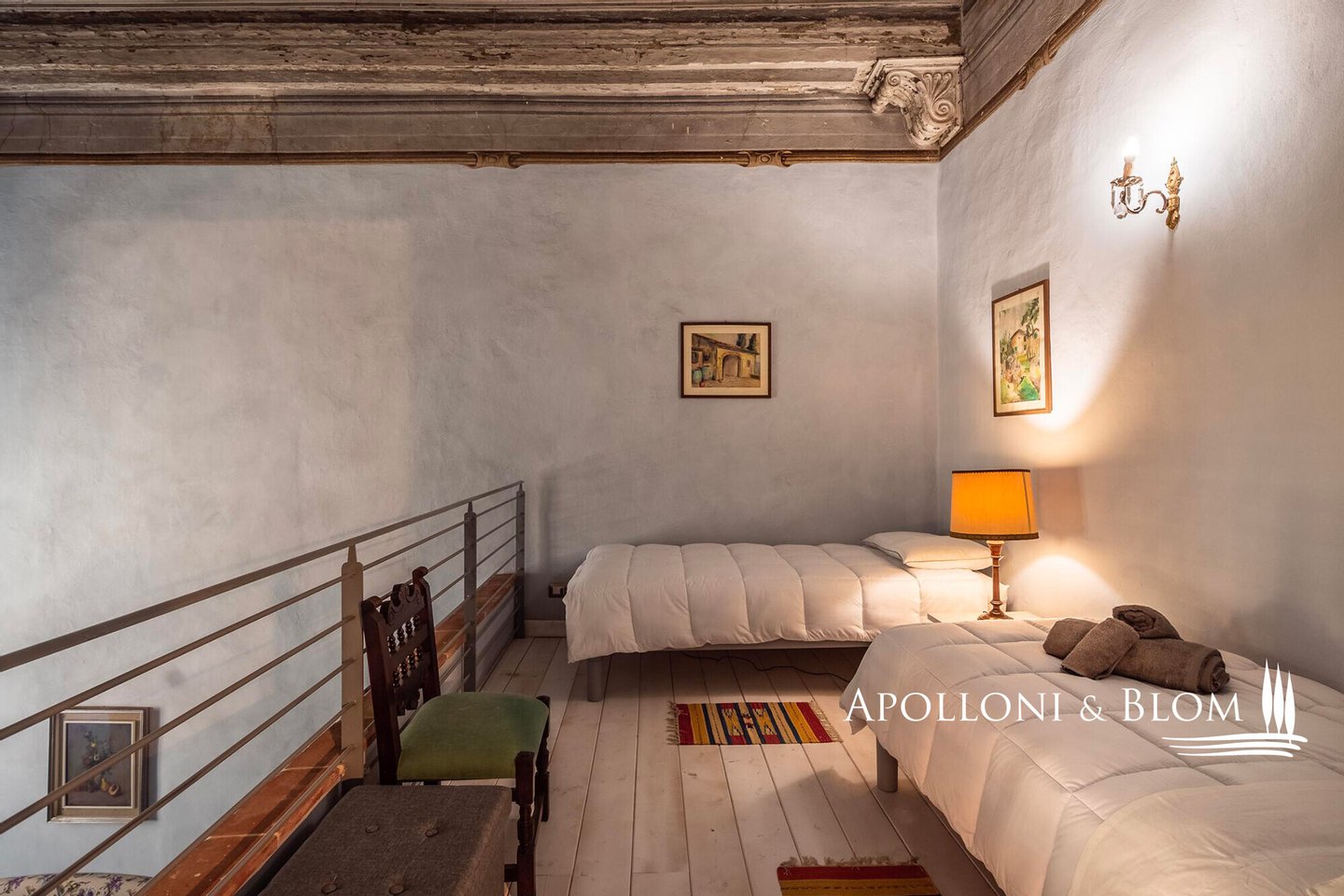 Residenza di prestigio con balcone, al piano primo di palazzo nobile del 1500 con ascensore, in vendita nel centro storico di Montepulciano, Siena. Nel cuore del centro storico di Montepulciano, in una delle vie principali con dimore nobiliari