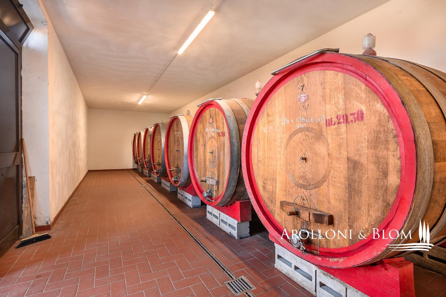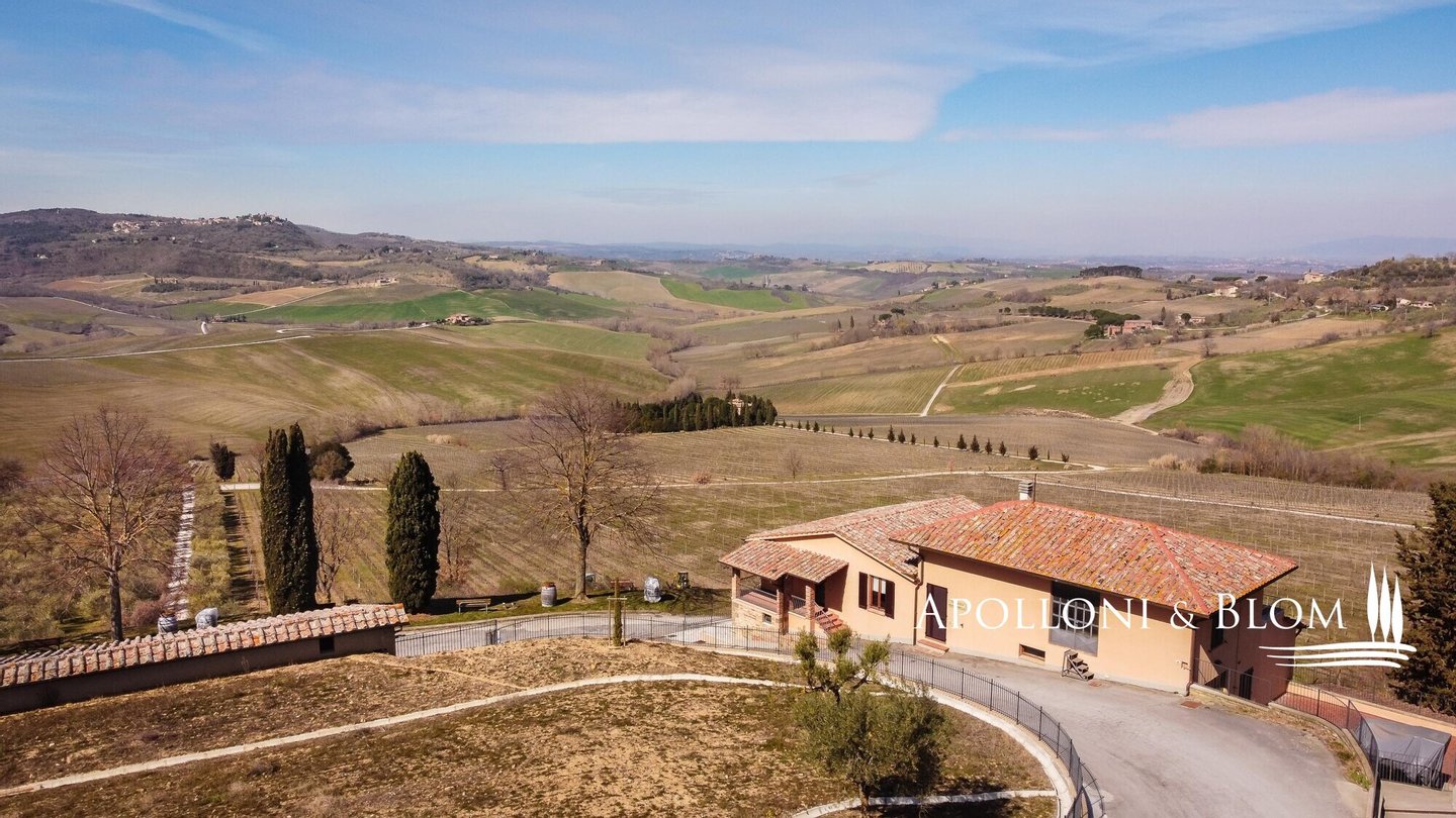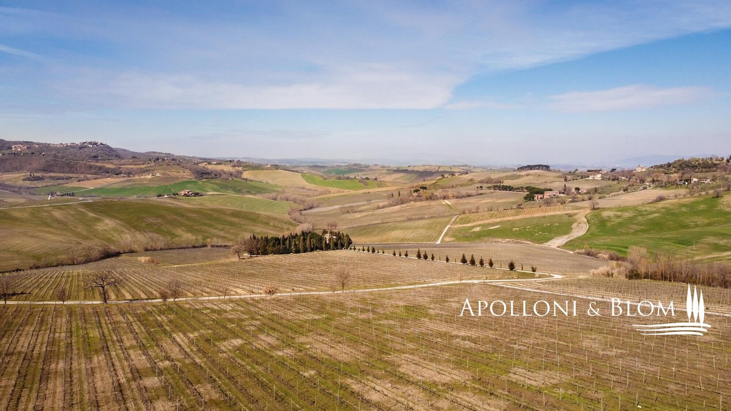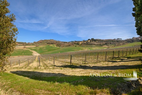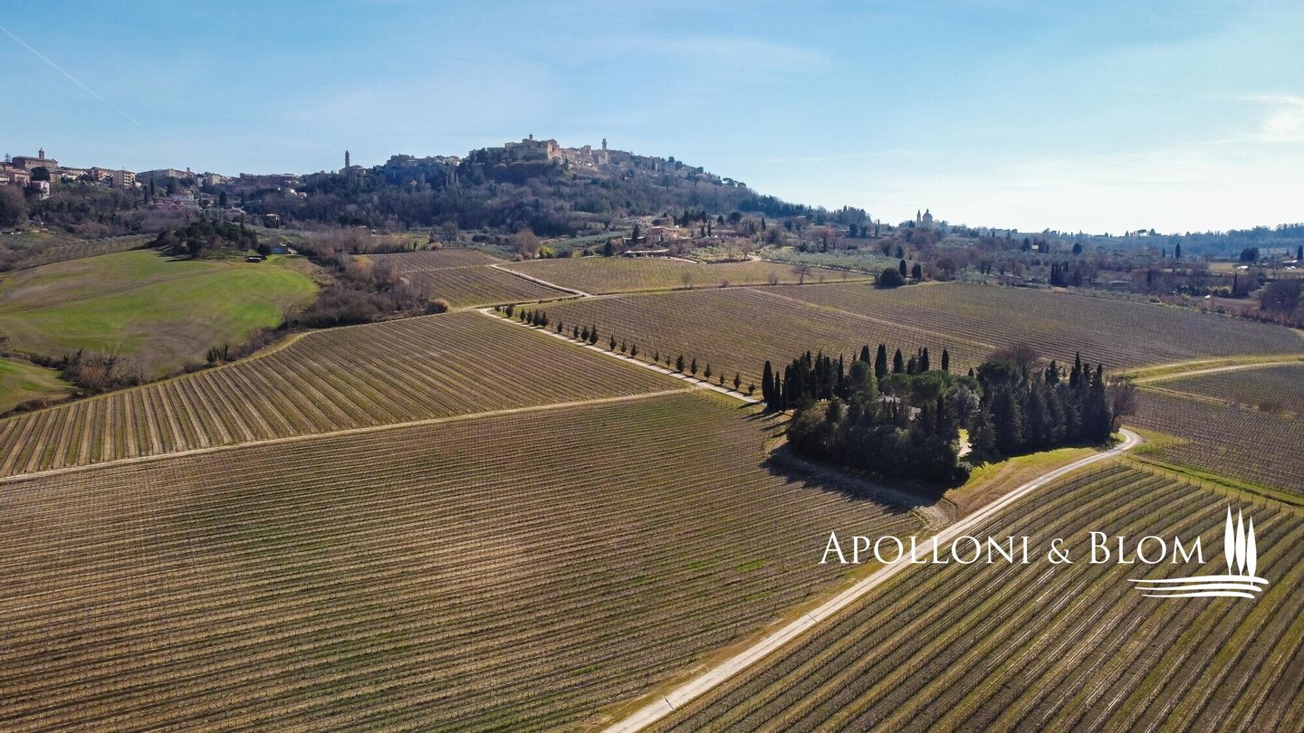 Weingut mit biologisch bewirtschafteten Weinbergen und Weinkeller in Montepulciano, Siena, zu verkaufen. Das Weingut hat 48 Hektar, von denen 31 mit Reben bepflanzt sind, von denen 16 für die Produktion von Vino Nobile reserviert sind. Die Reben stehen auf Mergel- und Kiesböden in einer Höhe von 350 bis 400 m über dem Meeresspiegel. Die Weinberge sind hauptsächlich nach Süden ausgerichtet, und die Reben werden mit dem horizontalen Kordon und dem Guyot-System angebaut. Weitere 4 Hektar sind für Olivenbäume reserviert, aus denen das Native Olivenöl Extra D.O.P Terre di Siena hergestellt wird. Die Hauptproduktion ist der Vino Nobile di Montepulciano, ein Wein mit großer Tradition, der in den letzten Jahren eine Qualitätssteigerung erfahren hat, die zu einem wachsenden internationalen Erfolg geführt hat. Darüber hinaus verfügt das Unternehmen über eine diskrete Produktion von Rosso di Montepulciano und den preisgekrönten, edlen und großzügigen Supertuscan-Verschnitt aus Sangiovese und Merlot für wichtige Anlässe. Die Produktion umfasst auch den Calamus, einen ausgezeichneten weißen IGT Toscana und den noch wichtigeren Il Muffato mit seinem süßen Honigaroma, ein ausgezeichneter Meditationswein. Aus einem Olivenhain von ca. 4 ha wird ein Natives Olivenöl Extra mit außergewöhnlichen organoleptischen Eigenschaften hergestellt, fruchtig und mit einem leicht würzigen Nachgeschmack. Die Oliven werden noch am Tag der Ernte in die Mühle gebracht, um die einzigartigen Eigenschaften des Öls und einen sehr geringen Säuregehalt zu gewährleisten. Das Öl hat die Zertifizierung D.O.P Terre di Siena (geschützte Ursprungsbezeichnung) erhalten.