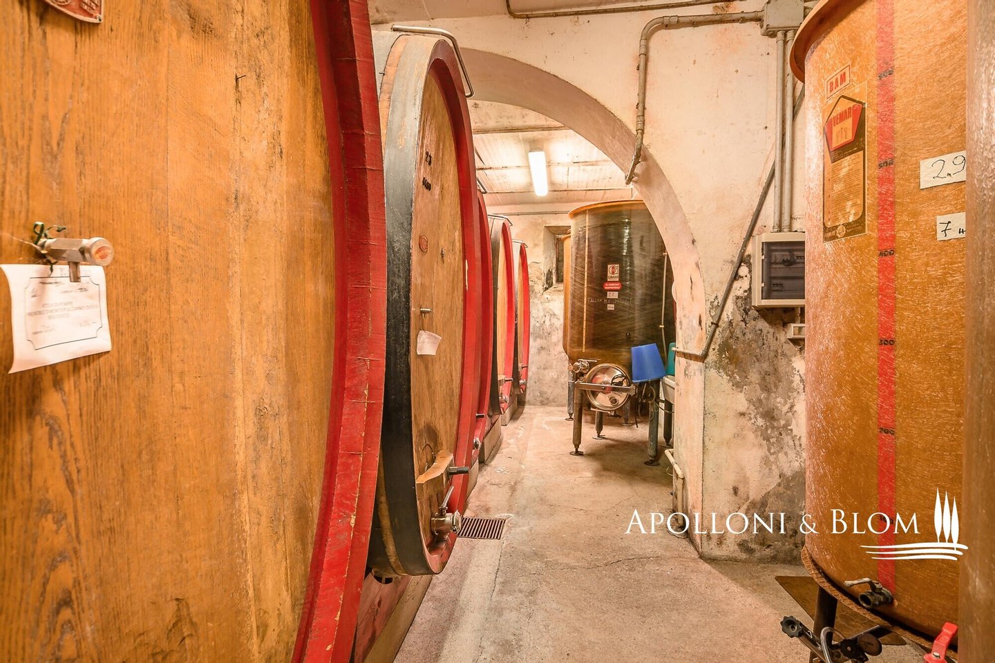 Land: insgesamt 48,5 Hektar. 33 Hektar Weinberge (von denen 2 derzeit ungenutzt sind); 4 Hektar Olivenhain, 1038 Bäume, hauptsächlich Frantoio und Leccino; 4 Hektar Ackerland, 1,3 Hektar städtische Einheit, 5 Hektar unbebautes und festes Land (einschließlich Straßen, Vorgewende und Freiflächen, die nicht für den Weinberg genutzt werden können)