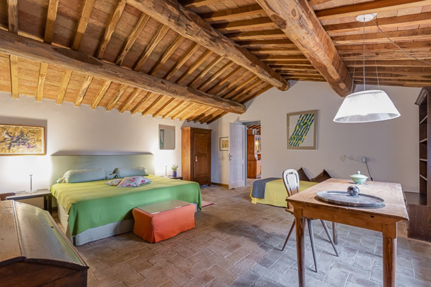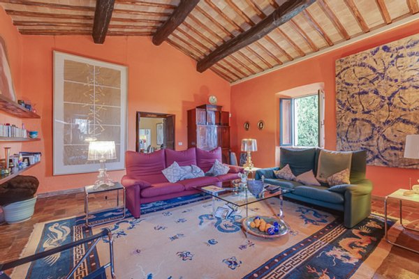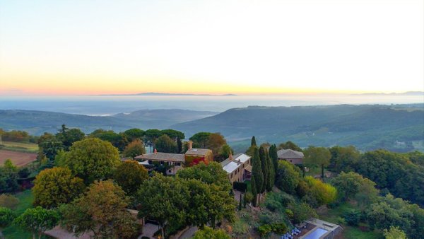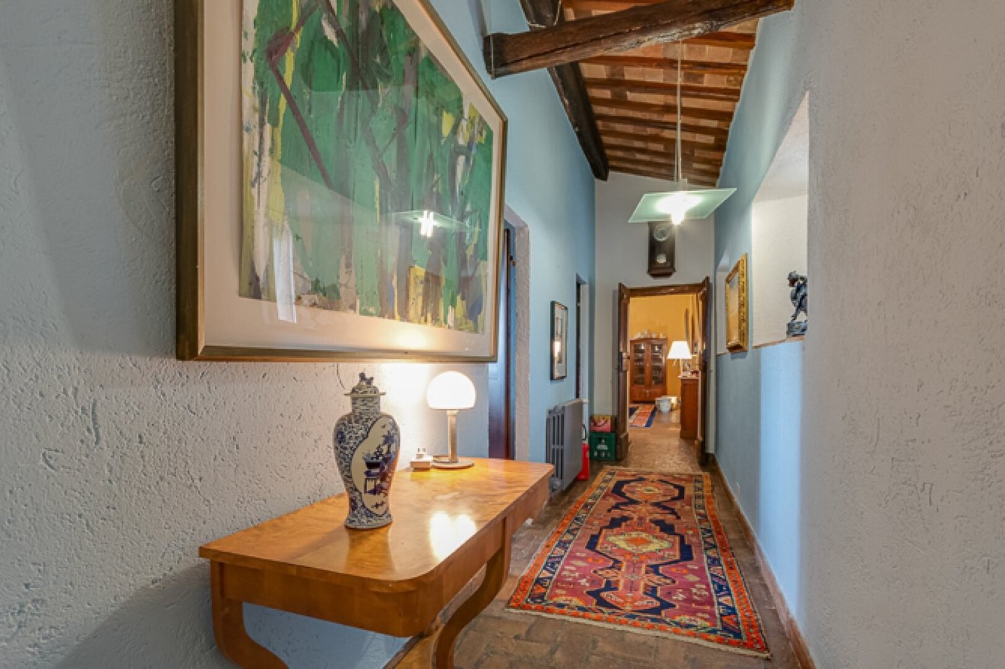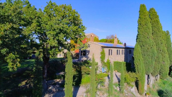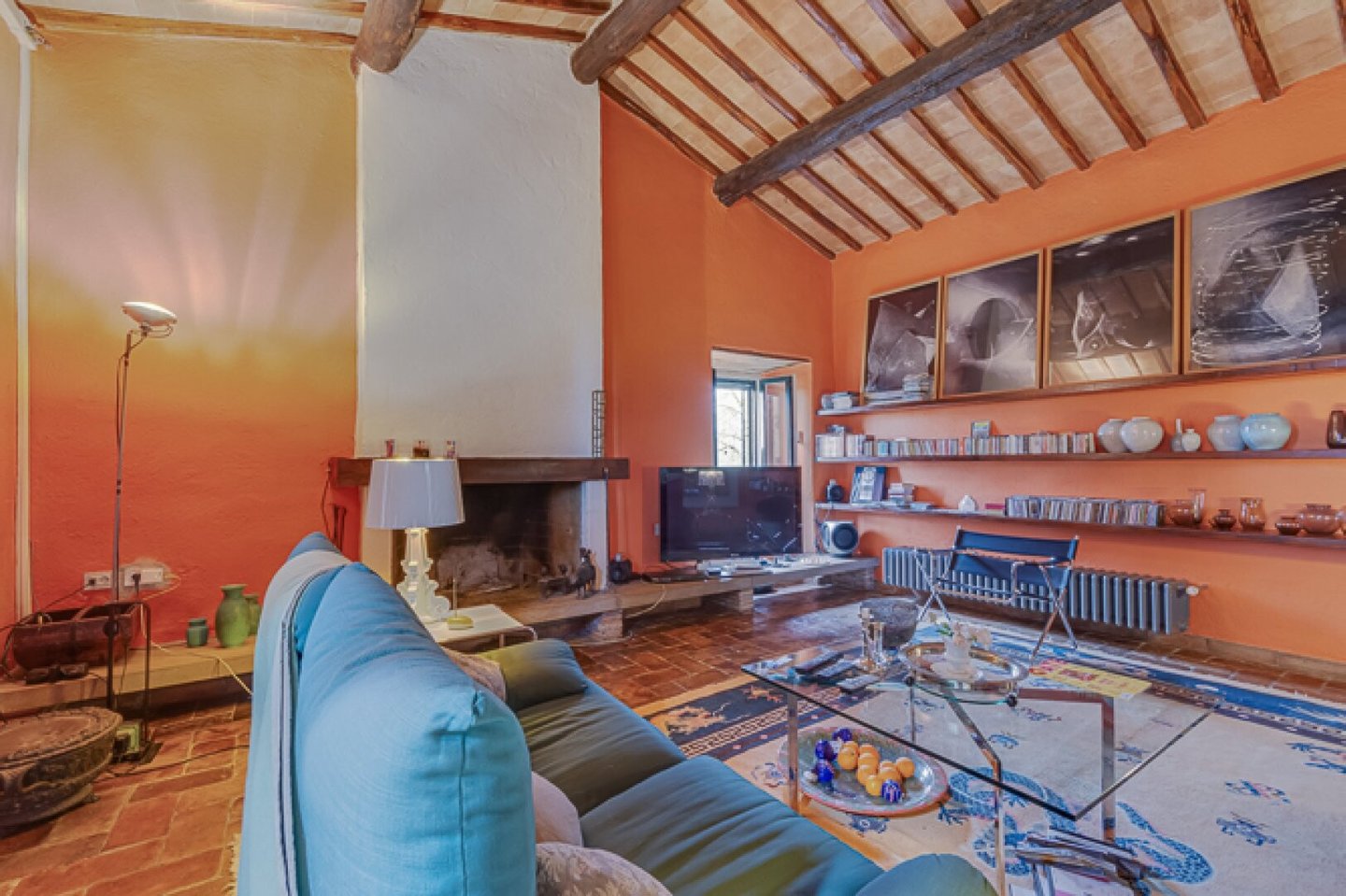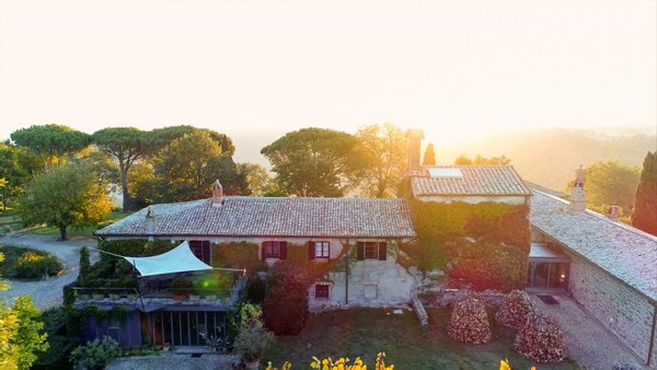 Charmantes, tausend Jahre altes Anwesen mit natürlicher Quelle, fein restauriert, mit Schwimmbad, Sonnenkollektoren, Gästehaus und Land zu verkaufen in Orvieto, Umbrien. In einer außergewöhnlichen Lage mit Blick auf den Bolsena-See gelegen, war dieses Anwesen von den Etruskern bis zu den Römern über 2500 Jahre lang ein wichtiger Orientierungspunkt, wie die unter der Villa entdeckten etruskischen Höhlen beweisen. Die meisten der wertvollen Artefakte sind heute in einem Museum in Orvieto ausgestellt. Aufgrund ihrer strategischen Lage war sie viele Jahrhunderte lang eine Verteidigungsfestung; von dem ursprünglich fünfstöckigen Turm sind heute nur noch zwei erhalten. Nach dem Mittelalter wurde sie zu einer bedeutenden Abtei und einem Kloster, bis die neuen adligen Besitzer um 1800 begannen, sie als landwirtschaftliches Gut zu nutzen. Eine der ursprünglichen Kapellen ist heute noch erhalten. In den 1980er Jahren wurde eine erste sorgfältige konservative Restaurierung von einem der bedeutendsten italienischen Architekturbüros der damaligen Zeit durchgeführt, die eine Gesamtfläche von 1 172 Quadratmetern umfasste. Das Hauptelement ist der mittelalterliche Turm, der von den ländlichen Steingebäuden umarmt wird, und ein moderner Raum mit Doppelverglasung, der den Turm mit dem landwirtschaftlichen Nebengebäude verbindet, eine zeitgenössische Note, die perfekt mit den alten Steinmauern harmoniert. Das Innere des Hauses erstreckt sich über mehrere Ebenen mit interessanten Wegen und Treppen, die zu den verschiedenen Räumen führen. Die handgefertigten Terrakottaböden, die im Kontrast zu den weiß gekalkten Wänden stehen, die hohen Decken mit freiliegenden Holzbalken und die majestätisch restaurierten Originalsteine, von denen einige überraschende jahrhundertealte Spuren aufweisen, bilden einen fantastischen und faszinierenden Kontrast. Das Anwesen, das erst kürzlich mit Sonnenkollektoren, einem Fitnessraum und einer Sauna ausgestattet wurde, verfügt über zwei getrennte Wohnhäuser im ehemaligen Kloster und Turm, in denen sich wunderschöne Wohnräume mit Kaminen und insgesamt sechs Schlafzimmern befinden, sowie über ein separates Cottage mit einem Schlafzimmer. Der ehemalige Schweinestall aus Stein muss noch restauriert werden und bietet hervorragende Möglichkeiten zum Umbau und zur Vergrößerung. Der Garten verfügt über natürliche Brunnen und Quellen, alte Bäume, mediterrane Sträucher, eine Panoramaterrasse mit atemberaubendem Blick auf die umliegende Landschaft und einen modernen, rechteckigen Bodenpool, der durch einen steinernen Wasserfall und ein elegant mit Holz und Stein gepflastertes Solarium einzigartig ist. Außerdem gibt es fünf überdachte Parkplätze und eine Höhle, die als Keller und Holzschuppen genutzt werden kann. Die 5 Hektar landwirtschaftliche Nutzfläche bestehen aus einem Olivenhain, einem Obstgarten mit Haselnüssen, Wäldern und Ackerland, das komplett eingezäunt ist. Mit seinen prestigeträchtigen Merkmalen und Annehmlichkeiten ist dies eine wunderbare Immobilie, um sie jetzt für den privaten Gebrauch mit Familie und Freunden zu bewohnen oder Reisende für ihren exklusiven Urlaub in Mittelitalien zu beherbergen.