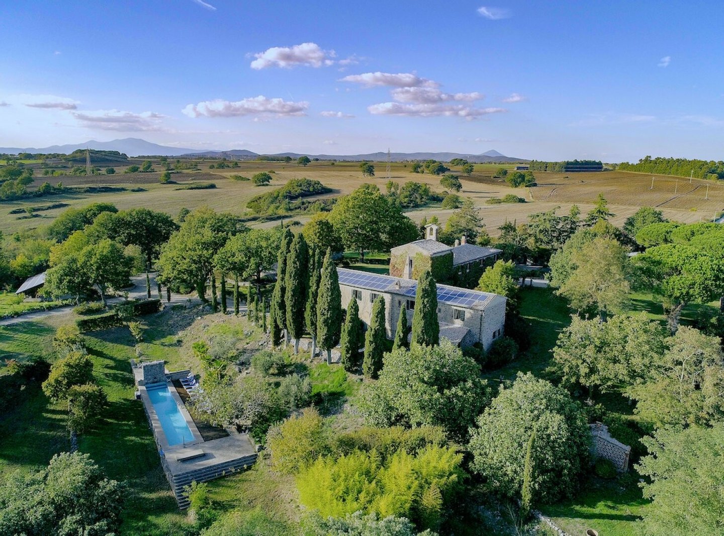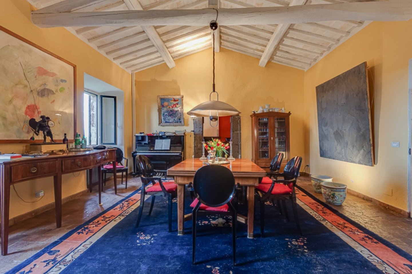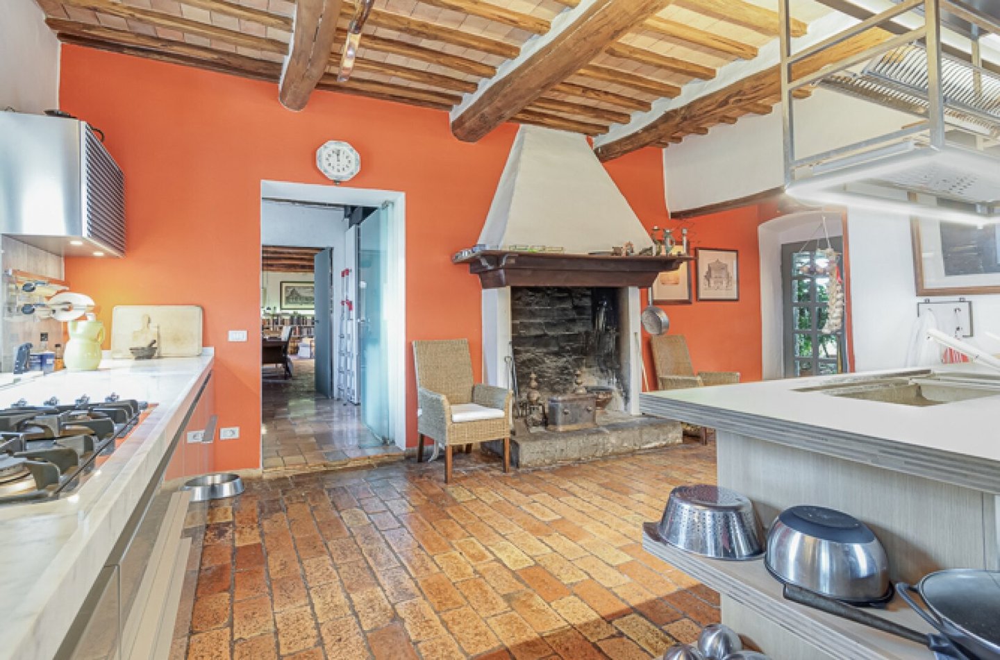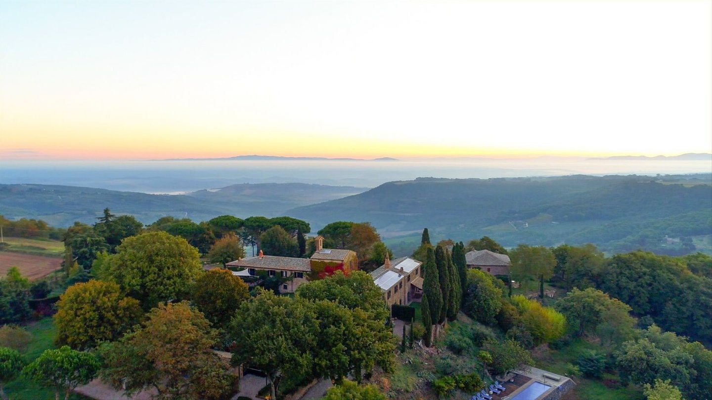Charmantes, tausend Jahre altes Anwesen mit natürlicher Quelle, fein restauriert, mit Schwimmbad, Sonnenkollektoren, Gästehaus und Land zu verkaufen in Orvieto, Umbrien. In einer außergewöhnlichen Lage mit Blick auf den Bolsena-See gelegen, war dieses Anwesen von den Etruskern bis zu den Römern über 2500 Jahre lang ein wichtiger Orientierungspunkt, wie die unter der Villa entdeckten etruskischen Höhlen beweisen. Die meisten der wertvollen Artefakte sind heute in einem Museum in Orvieto ausgestellt. Aufgrund ihrer strategischen Lage war sie viele Jahrhunderte lang eine Verteidigungsfestung; von dem ursprünglich fünfstöckigen Turm sind heute nur noch zwei erhalten. Nach dem Mittelalter wurde sie zu einer bedeutenden Abtei und einem Kloster, bis die neuen adligen Besitzer um 1800 begannen, sie als landwirtschaftliches Gut zu nutzen. Eine der ursprünglichen Kapellen ist heute noch erhalten. In den 1980er Jahren wurde eine erste sorgfältige konservative Restaurierung von einem der bedeutendsten italienischen Architekturbüros der damaligen Zeit durchgeführt, die eine Gesamtfläche von 1 172 Quadratmetern umfasste. Das Hauptelement ist der mittelalterliche Turm, der von den ländlichen Steingebäuden umarmt wird, und ein moderner Raum mit Doppelverglasung, der den Turm mit dem landwirtschaftlichen Nebengebäude verbindet, eine zeitgenössische Note, die perfekt mit den alten Steinmauern harmoniert. Das Innere des Hauses erstreckt sich über mehrere Ebenen mit interessanten Wegen und Treppen, die zu den verschiedenen Räumen führen. Die handgefertigten Terrakottaböden, die im Kontrast zu den weiß gekalkten Wänden stehen, die hohen Decken mit freiliegenden Holzbalken und die majestätisch restaurierten Originalsteine, von denen einige überraschende jahrhundertealte Spuren aufweisen, bilden einen fantastischen und faszinierenden Kontrast. Das Anwesen, das erst kürzlich mit Sonnenkollektoren, einem Fitnessraum und einer Sauna ausgestattet wurde, verfügt über zwei getrennte Wohnhäuser im ehemaligen Kloster und Turm, in denen sich wunderschöne Wohnräume mit Kaminen und insgesamt sechs Schlafzimmern befinden, sowie über ein separates Cottage mit einem Schlafzimmer. Der ehemalige Schweinestall aus Stein muss noch restauriert werden und bietet hervorragende Möglichkeiten zum Umbau und zur Vergrößerung. Der Garten verfügt über natürliche Brunnen und Quellen, alte Bäume, mediterrane Sträucher, eine Panoramaterrasse mit atemberaubendem Blick auf die umliegende Landschaft und einen modernen, rechteckigen Bodenpool, der durch einen steinernen Wasserfall und ein elegant mit Holz und Stein gepflastertes Solarium einzigartig ist. Außerdem gibt es fünf überdachte Parkplätze und eine Höhle, die als Keller und Holzschuppen genutzt werden kann. Die 5 Hektar landwirtschaftliche Nutzfläche bestehen aus einem Olivenhain, einem Obstgarten mit Haselnüssen, Wäldern und Ackerland, das komplett eingezäunt ist. Mit seinen prestigeträchtigen Merkmalen und Annehmlichkeiten ist dies eine wunderbare Immobilie, um sie jetzt für den privaten Gebrauch mit Familie und Freunden zu bewohnen oder Reisende für ihren exklusiven Urlaub in Mittelitalien zu beherbergen.