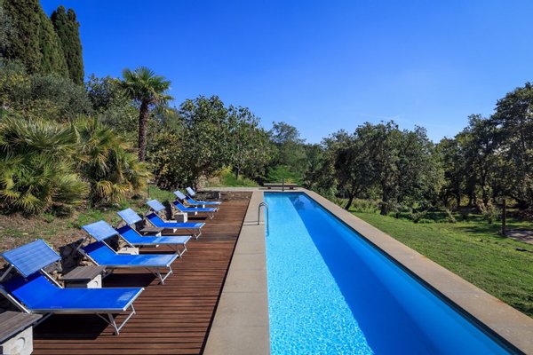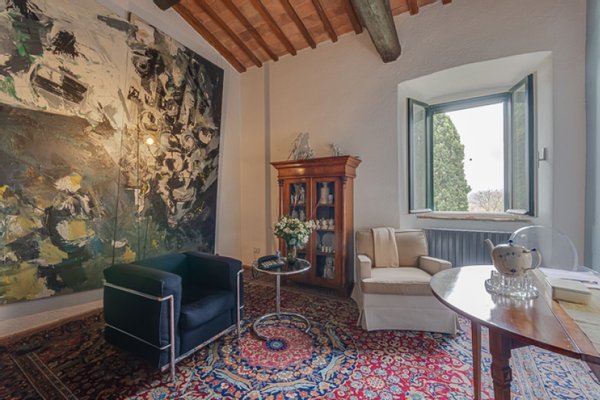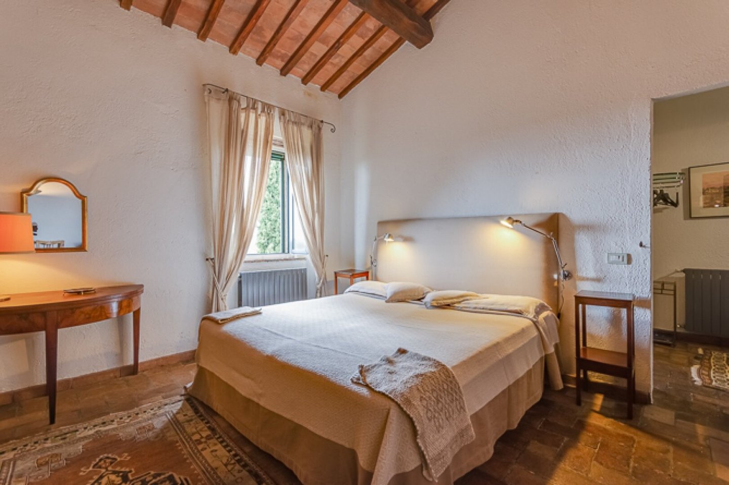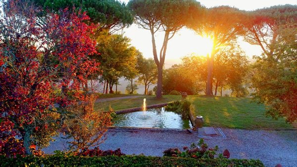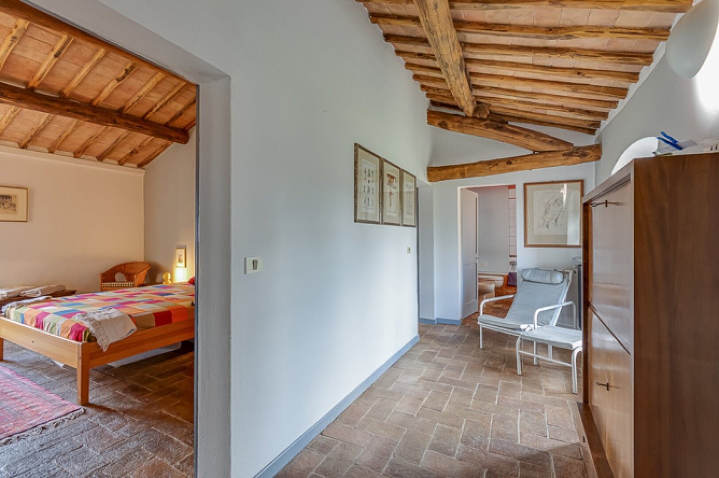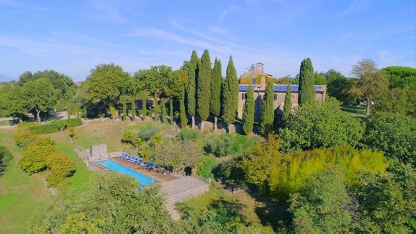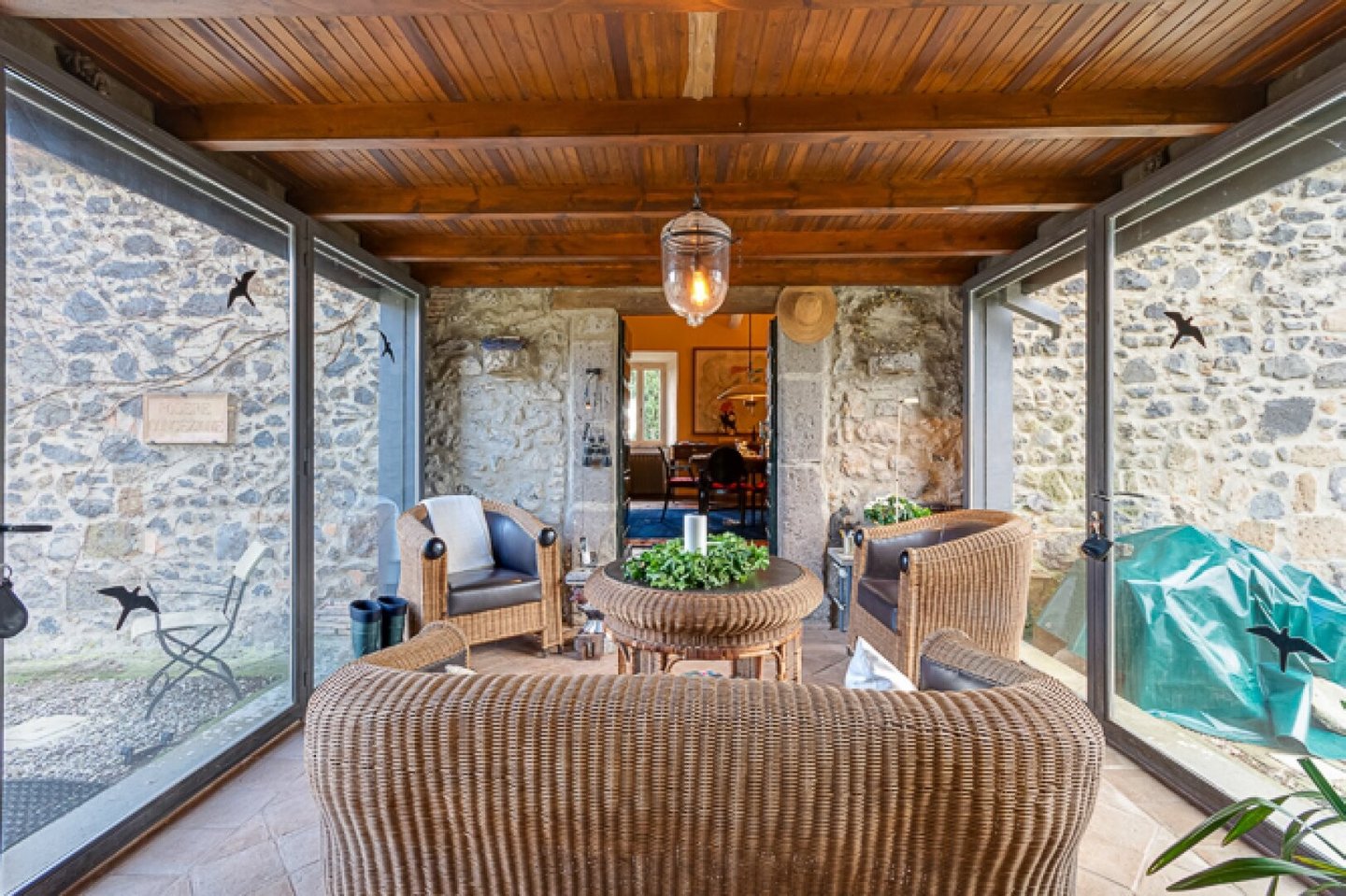 Charmantes, tausend Jahre altes Anwesen mit natürlicher Quelle, fein restauriert, mit Schwimmbad, Sonnenkollektoren, Gästehaus und Land zu verkaufen in Orvieto, Umbrien. In einer außergewöhnlichen Lage mit Blick auf den Bolsena-See gelegen, war dieses Anwesen von den Etruskern bis zu den Römern über 2500 Jahre lang ein wichtiger Orientierungspunkt, wie die unter der Villa entdeckten etruskischen Höhlen beweisen. Die meisten der wertvollen Artefakte sind heute in einem Museum in Orvieto ausgestellt. Aufgrund ihrer strategischen Lage war sie viele Jahrhunderte lang eine Verteidigungsfestung; von dem ursprünglich fünfstöckigen Turm sind heute nur noch zwei erhalten. Nach dem Mittelalter wurde sie zu einer bedeutenden Abtei und einem Kloster, bis die neuen adligen Besitzer um 1800 begannen, sie als landwirtschaftliches Gut zu nutzen. Eine der ursprünglichen Kapellen ist heute noch erhalten. In den 1980er Jahren wurde eine erste sorgfältige konservative Restaurierung von einem der bedeutendsten italienischen Architekturbüros der damaligen Zeit durchgeführt, die eine Gesamtfläche von 1 172 Quadratmetern umfasste. Das Hauptelement ist der mittelalterliche Turm, der von den ländlichen Steingebäuden umarmt wird, und ein moderner Raum mit Doppelverglasung, der den Turm mit dem landwirtschaftlichen Nebengebäude verbindet, eine zeitgenössische Note, die perfekt mit den alten Steinmauern harmoniert. Das Innere des Hauses erstreckt sich über mehrere Ebenen mit interessanten Wegen und Treppen, die zu den verschiedenen Räumen führen. Die handgefertigten Terrakottaböden, die im Kontrast zu den weiß gekalkten Wänden stehen, die hohen Decken mit freiliegenden Holzbalken und die majestätisch restaurierten Originalsteine, von denen einige überraschende jahrhundertealte Spuren aufweisen, bilden einen fantastischen und faszinierenden Kontrast. Das Anwesen, das erst kürzlich mit Sonnenkollektoren, einem Fitnessraum und einer Sauna ausgestattet wurde, verfügt über zwei getrennte Wohnhäuser im ehemaligen Kloster und Turm, in denen sich wunderschöne Wohnräume mit Kaminen und insgesamt sechs Schlafzimmern befinden, sowie über ein separates Cottage mit einem Schlafzimmer. Der ehemalige Schweinestall aus Stein muss noch restauriert werden und bietet hervorragende Möglichkeiten zum Umbau und zur Vergrößerung. Der Garten verfügt über natürliche Brunnen und Quellen, alte Bäume, mediterrane Sträucher, eine Panoramaterrasse mit atemberaubendem Blick auf die umliegende Landschaft und einen modernen, rechteckigen Bodenpool, der durch einen steinernen Wasserfall und ein elegant mit Holz und Stein gepflastertes Solarium einzigartig ist. Außerdem gibt es fünf überdachte Parkplätze und eine Höhle, die als Keller und Holzschuppen genutzt werden kann. Die 5 Hektar landwirtschaftliche Nutzfläche bestehen aus einem Olivenhain, einem Obstgarten mit Haselnüssen, Wäldern und Ackerland, das komplett eingezäunt ist. Mit seinen prestigeträchtigen Merkmalen und Annehmlichkeiten ist dies eine wunderbare Immobilie, um sie jetzt für den privaten Gebrauch mit Familie und Freunden zu bewohnen oder Reisende für ihren exklusiven Urlaub in Mittelitalien zu beherbergen.