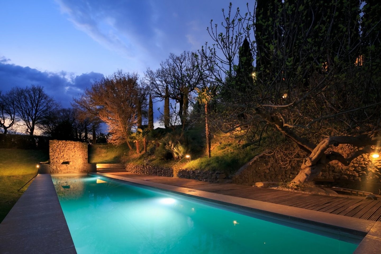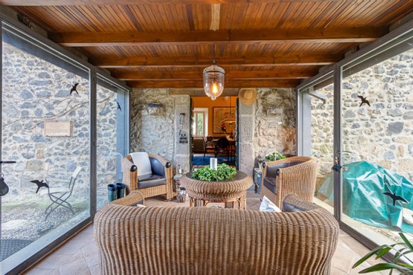 Typ: Hauptgebäude mit Turm von ca. 906 m², umstrukturiert in 2 Residenzen mit Sauna in der alten Grotte, Fitnessraum, Garten mit Schwimmbad, kombiniert mit einem Gästeanbau, Garage, Nebengebäude zum Umbau, Land mit Wald, Ackerland, Obstgarten mit Haselnuss- und Olivenbäumen