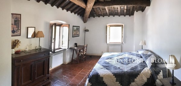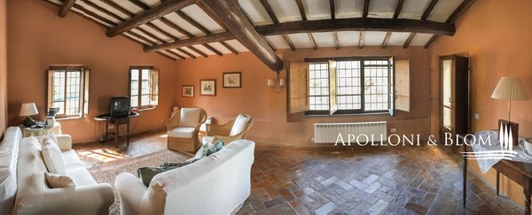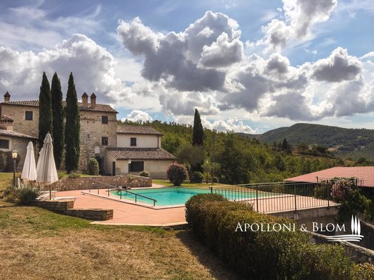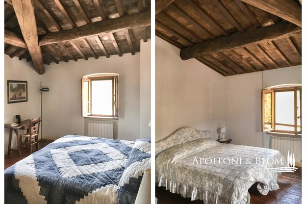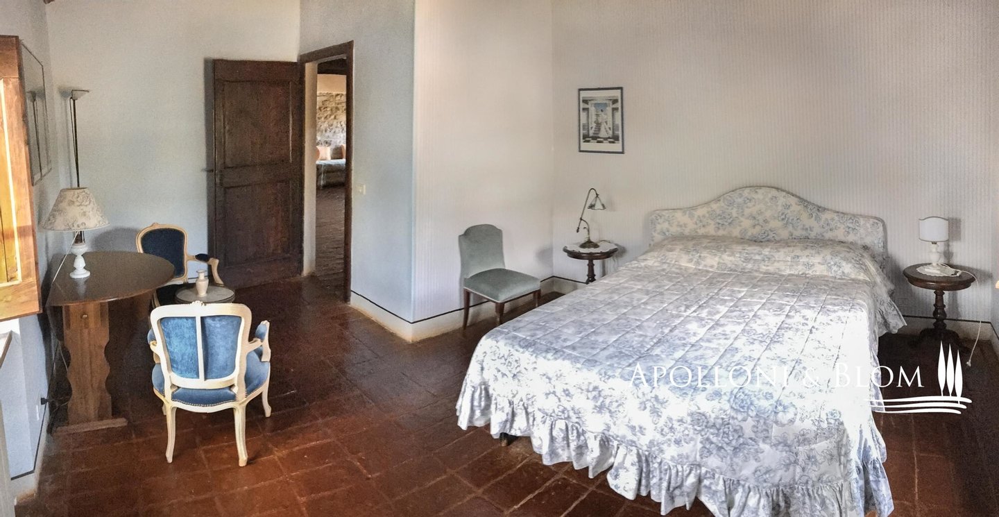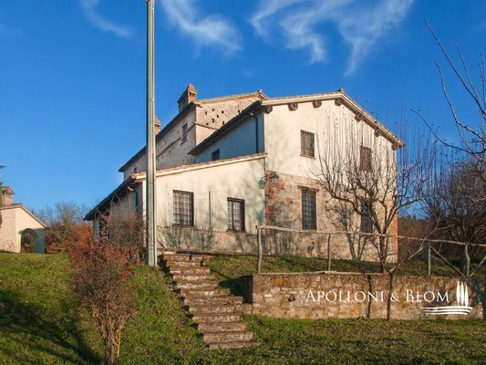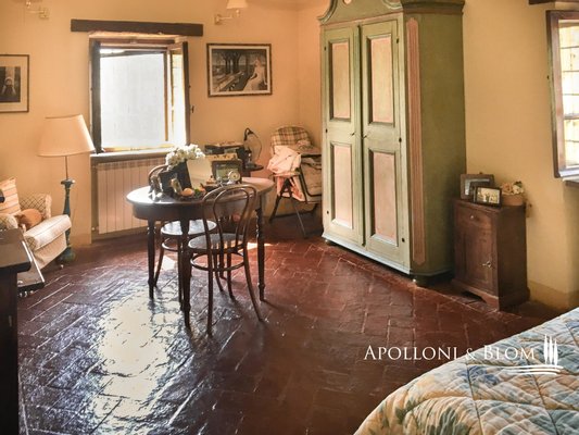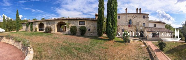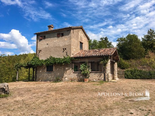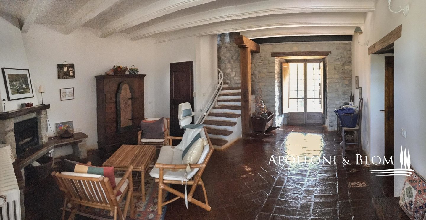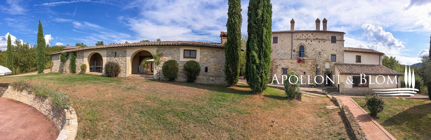Historisches Landgut mit Panoramapool, Park und Land zu verkaufen in Umbertide, östlich von Perugia. In dominanter Hanglage, im grünen Herzen Umbriens, liegt dieses historische Anwesen inmitten von ca. 18 Hektar Wald und Weideland, von wo aus man einen spektakulären Blick auf die umliegende Landschaft genießen kann, in einer Atmosphäre absoluter Ruhe und zeitlosen Charmes, während man gleichzeitig bequem an die wichtigsten Dienstleistungen angebunden ist. Die Zufahrt erfolgt über einen gut gepflegten Feldweg, der sich sanft durch die Bäume schlängelt und das Gefühl der Privatsphäre und der Ankunft an einem besonderen Ort noch unterstreicht. Im Zentrum des Anwesens steht ein elegantes Bauernhaus aus Stein mit einer Fläche von 637 Quadratmetern auf drei Etagen, das im Einklang mit der umbrischen Architekturtradition sorgfältig restauriert wurde. Die ursprünglichen Materialien, wie die freiliegenden Steinmauern, die Holzbalken und die handgefertigten Terrakottaböden, stehen in einem harmonischen Dialog mit den Eingriffen, die den Komfort und die Raffinesse in den Räumen mit einem authentischen und nüchternen Geschmack erhöhen. Im Erdgeschoss befinden sich Wohnräume, die natürlich aufeinander folgen: ein Wohnzimmer mit Kamin, ein zweiter Wohnbereich, zwei Schlafzimmer, ein Badezimmer und ein Keller. Ein Flügel des Hauses, mit einem unabhängigen Eingang vom Garten aus, wird derzeit als Keller und Abstellraum genutzt. Ebenfalls im Erdgeschoss befindet sich eine unabhängige Wohnung auf zwei Ebenen, ideal für Gäste oder Personal, bestehend aus einem Wohnzimmer mit Kochnische, einem Badezimmer und einem Schlafbereich im Zwischengeschoss. Im ersten Stock führt ein helles Wohnzimmer mit Steinkamin zu einer rustikalen Küche und einem weiteren Wohnzimmer, flankiert von zwei Schlafzimmern und einem Badezimmer. Der Zugang, sowohl von innen als auch von außen, garantiert Vielseitigkeit und Privatsphäre. Die zweite Etage beherbergt ein gemütliches Wohnzimmer mit Kamin, zwei Schlafzimmer, beide mit doppeltem Blick auf das Tal, und ein Badezimmer, so dass ein intimer Raum entsteht, der perfekt für die Eigentümer oder Gäste ist. Das Anwesen wird durch zwei Nebengebäude vervollständigt: ein zweistöckiges Nebengebäude mit einem Schlafzimmer, das einen rustikalen und gemütlichen Charakter hat, und eine neuere Struktur, die für Dienstleistungen gedacht ist, mit einer Küche, technischen Räumen und einem Säulengang mit Bögen, ideal für zukünftige Entwicklungen im Bereich der Gastfreundschaft. Das Schwimmbad mit Panoramablick befindet sich in einer ruhigen und dominanten Lage im Park und bietet Momente der absoluten Entspannung mit freiem Blick auf die umbrische Landschaft. Eine charmante Residenz, die Geschichte, Eleganz und Unterkunftsmöglichkeiten in einem der authentischsten und stimmungsvollsten Orte Mittelitaliens vereint.