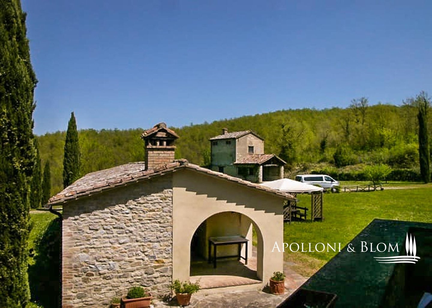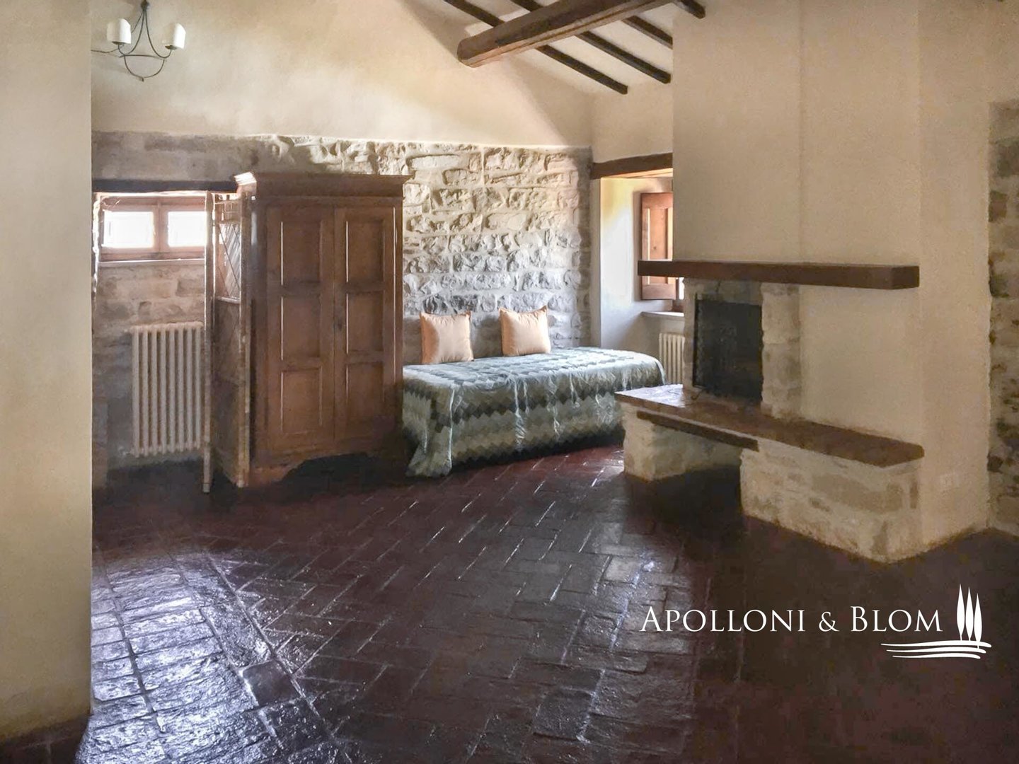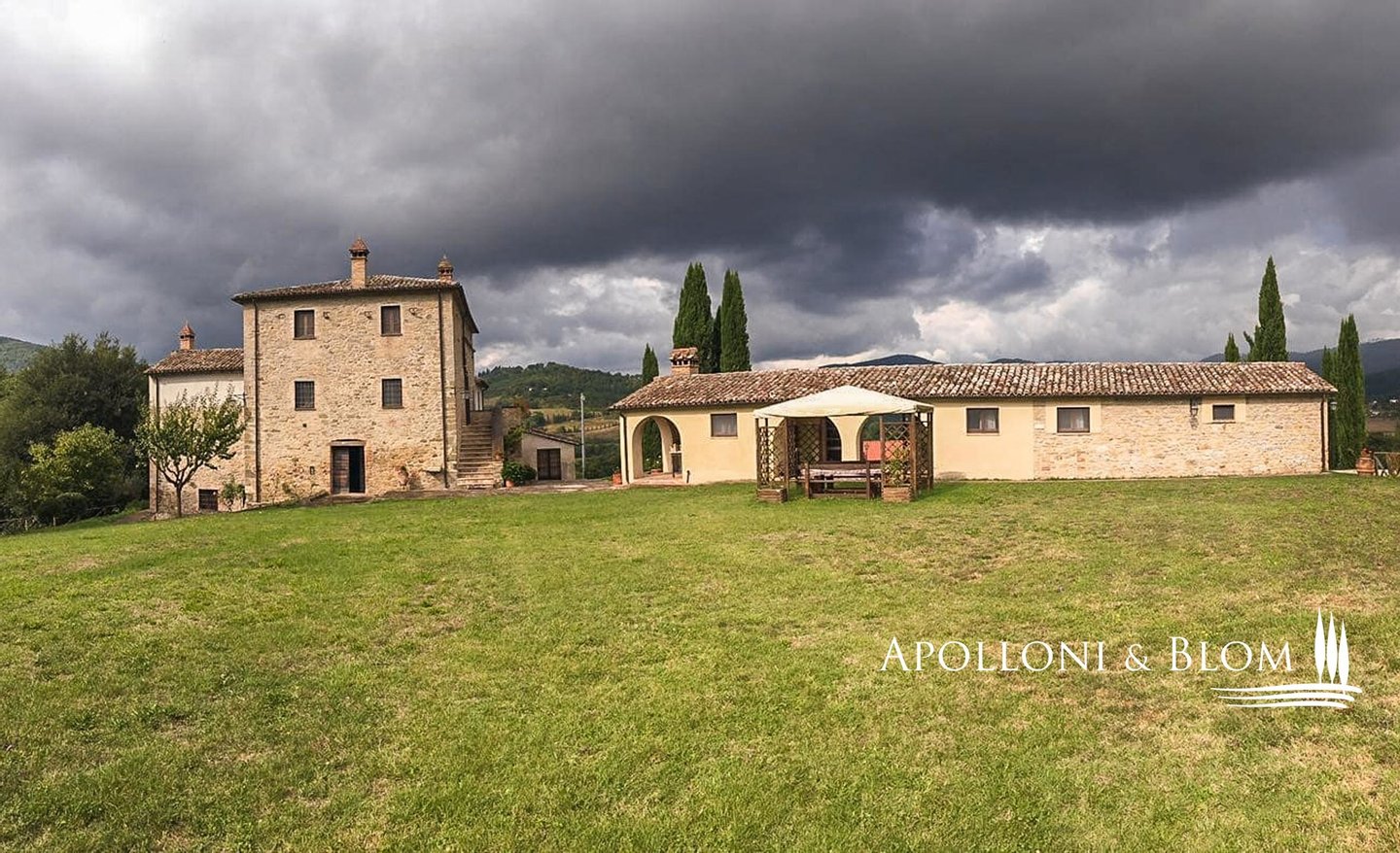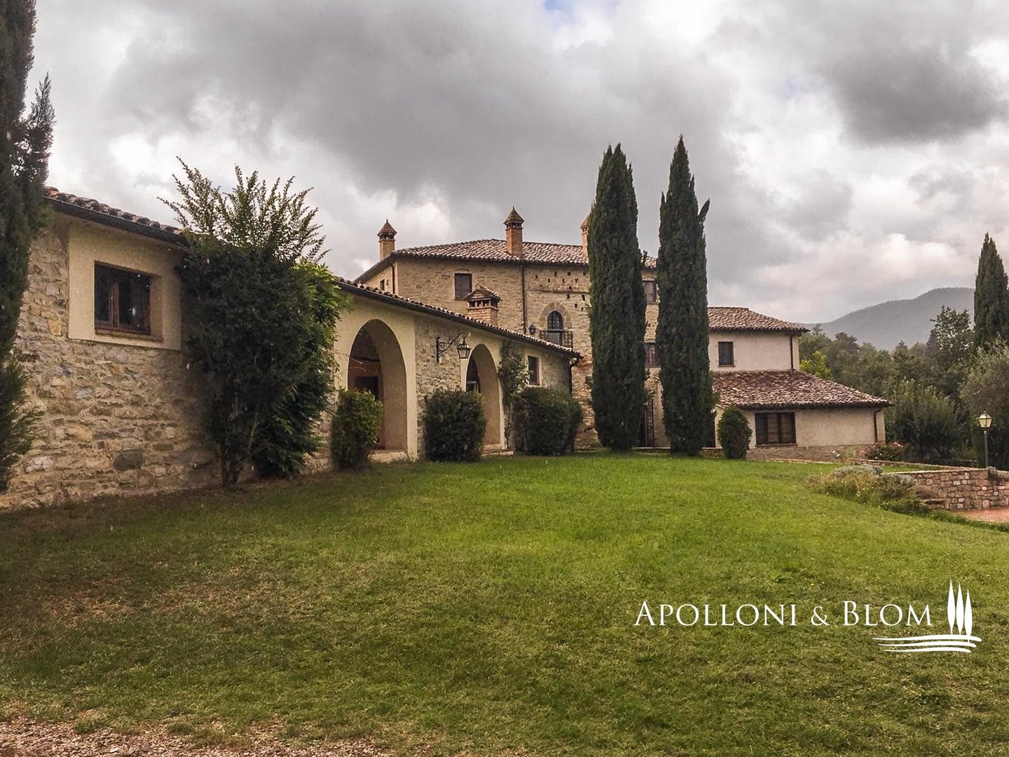 Historisches Landgut mit Panoramapool, Park und Land zu verkaufen in Umbertide, östlich von Perugia. In dominanter Hanglage, im grünen Herzen Umbriens, liegt dieses historische Anwesen inmitten von ca. 18 Hektar Wald und Weideland, von wo aus man einen spektakulären Blick auf die umliegende Landschaft genießen kann, in einer Atmosphäre absoluter Ruhe und zeitlosen Charmes, während man gleichzeitig bequem an die wichtigsten Dienstleistungen angebunden ist. Die Zufahrt erfolgt über einen gut gepflegten Feldweg, der sich sanft durch die Bäume schlängelt und das Gefühl der Privatsphäre und der Ankunft an einem besonderen Ort noch unterstreicht. Im Zentrum des Anwesens steht ein elegantes Bauernhaus aus Stein mit einer Fläche von 637 Quadratmetern auf drei Etagen, das im Einklang mit der umbrischen Architekturtradition sorgfältig restauriert wurde. Die ursprünglichen Materialien, wie die freiliegenden Steinmauern, die Holzbalken und die handgefertigten Terrakottaböden, stehen in einem harmonischen Dialog mit den Eingriffen, die den Komfort und die Raffinesse in den Räumen mit einem authentischen und nüchternen Geschmack erhöhen. Im Erdgeschoss befinden sich Wohnräume, die natürlich aufeinander folgen: ein Wohnzimmer mit Kamin, ein zweiter Wohnbereich, zwei Schlafzimmer, ein Badezimmer und ein Keller. Ein Flügel des Hauses, mit einem unabhängigen Eingang vom Garten aus, wird derzeit als Keller und Abstellraum genutzt. Ebenfalls im Erdgeschoss befindet sich eine unabhängige Wohnung auf zwei Ebenen, ideal für Gäste oder Personal, bestehend aus einem Wohnzimmer mit Kochnische, einem Badezimmer und einem Schlafbereich im Zwischengeschoss. Im ersten Stock führt ein helles Wohnzimmer mit Steinkamin zu einer rustikalen Küche und einem weiteren Wohnzimmer, flankiert von zwei Schlafzimmern und einem Badezimmer. Der Zugang, sowohl von innen als auch von außen, garantiert Vielseitigkeit und Privatsphäre. Die zweite Etage beherbergt ein gemütliches Wohnzimmer mit Kamin, zwei Schlafzimmer, beide mit doppeltem Blick auf das Tal, und ein Badezimmer, so dass ein intimer Raum entsteht, der perfekt für die Eigentümer oder Gäste ist. Das Anwesen wird durch zwei Nebengebäude vervollständigt: ein zweistöckiges Nebengebäude mit einem Schlafzimmer, das einen rustikalen und gemütlichen Charakter hat, und eine neuere Struktur, die für Dienstleistungen gedacht ist, mit einer Küche, technischen Räumen und einem Säulengang mit Bögen, ideal für zukünftige Entwicklungen im Bereich der Gastfreundschaft. Das Schwimmbad mit Panoramablick befindet sich in einer ruhigen und dominanten Lage im Park und bietet Momente der absoluten Entspannung mit freiem Blick auf die umbrische Landschaft. Eine charmante Residenz, die Geschichte, Eleganz und Unterkunftsmöglichkeiten in einem der authentischsten und stimmungsvollsten Orte Mittelitaliens vereint.