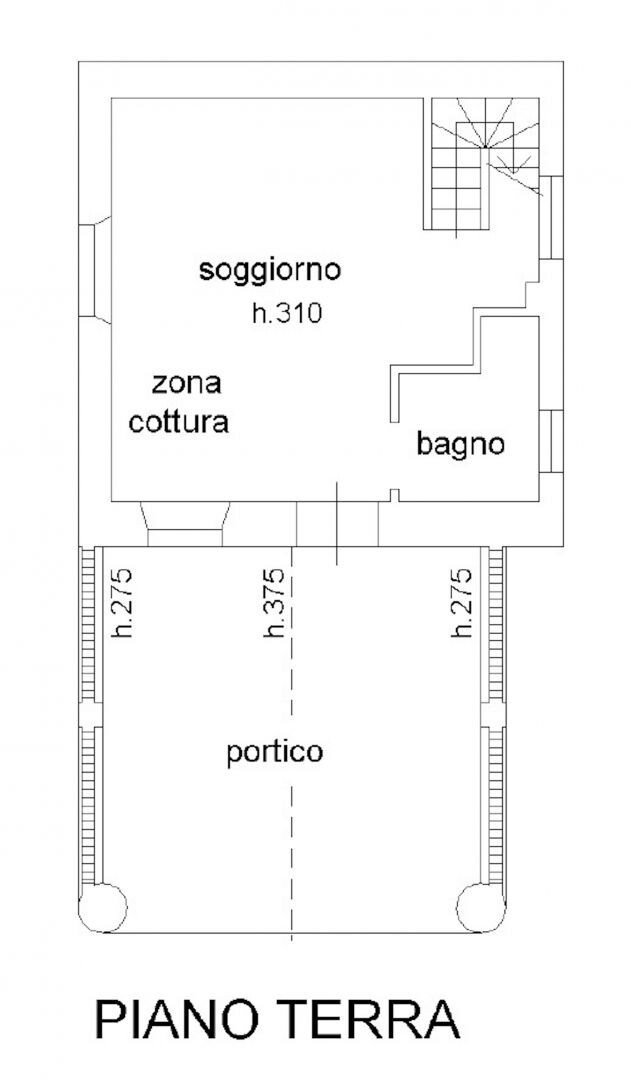 Erdgeschoss: Eingangsveranda mit Steinsäulen und Holzdachstuhl, Wohnzimmer mit Kamin, Kochnische, Bad