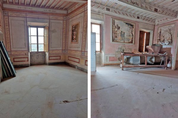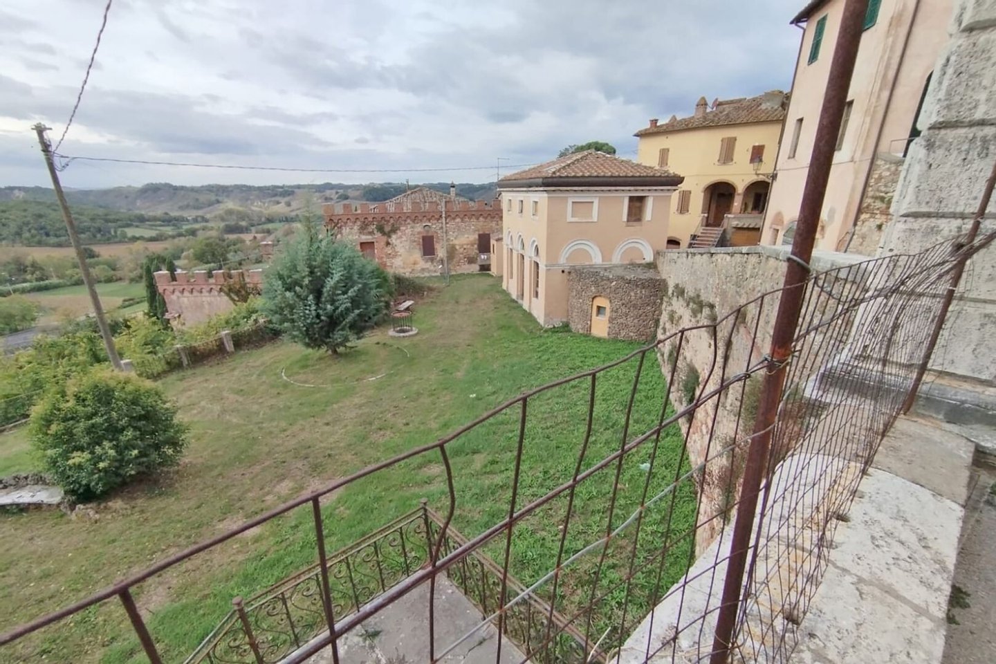 Villa in befestigtem Weiler mit Panoramagarten, Zitronenhaus, Ölmühle, zu restaurieren, nur einen Steinwurf von den Thermen in Armaiolo, Siena, Toskana. Im antiken Dorf Armaiolo, einem stolzen Bollwerk der Republik Siena gegen die Florentiner, steht dieser schöne Immobilienkomplex, der aus einer Villa aus dem 16. Jahrhundert, einem großen Vorgarten mit Zitronenhain und einer Ölmühle besteht. Die Villa mit regelmäßiger geometrischer Form erstreckt sich über 3 Etagen + Dachgeschoss und hat eine gut erhaltene Fassade mit deutlich rosafarbenem Verputz, die von regelmäßigen, kadenzierten Fenstern mit gelb gestrichenen Architraven durchsetzt ist, die den Blick auf das umliegende Tal und das Dorf freigeben. Im Inneren befinden sich die Räume des Herrenhauses, die größtenteils mit Fresken an den Wänden und Decken mit Grotesken, geometrischen Bordüren und mythologischen Themen bemalt sind, sowie die Räume für die Bediensteten der Adelsfamilie, zu der die Villa gehörte. Die Struktur ist nicht restaurierungsbedürftig, während die Innenräume je nach Verwendungszweck individuell gestaltet werden können. Der Eingang vom Garten aus besteht aus einer doppelten Treppe, die von einem schmiedeeisernen Geländer und einem Tor begrenzt wird. Eine Travertinmauer umgibt das Anwesen und lässt das Zitronenhaus und die Ölmühle im Inneren. Das Zitronenhaus, das über eine große Eingangstür und zwei große, nach Süden ausgerichtete Fenster verfügt, die für viel Licht und Luft sorgen, wurde vor kurzem als Bar genutzt und muss nur in dem großen, einzigen Raum, aus dem es besteht, aufgefrischt werden. Dieser ist sehr hoch und zeichnet sich durch das Vorhandensein von Säulen und Tonnengewölben und Travertinböden aus, dem typischen Stein der Gegend aufgrund des Vorhandenseins von schwefelhaltigem Wasser in dieser Gegend. Die vollständig zu sanierende Ölmühle kann dank ihrer großzügigen Fläche zu einem komfortablen Wohnsitz werden. Der Garten ist nach Süden ausgerichtet und seine Breite erlaubt bequem den Bau eines Swimmingpools mit großer Sonnenterrasse, Umkleidekabinen und Ruhebereich. Diese Immobilie ist eine ausgezeichnete Lösung für diejenigen, die in einen großen Empfangskomplex in einer günstigen Lage in Bezug auf die Straßen, die das berühmte Val d'Orcia, Valdichiana und Crete Senesi mit dem Rest Italiens verbinden, investieren möchten.