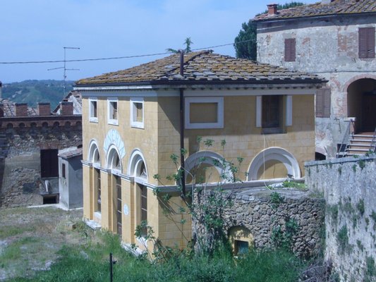 Villa in befestigtem Weiler mit Panoramagarten, Zitronenhaus, Ölmühle, zu restaurieren, nur einen Steinwurf von den Thermen in Armaiolo, Siena, Toskana. Im antiken Dorf Armaiolo, einem stolzen Bollwerk der Republik Siena gegen die Florentiner, steht