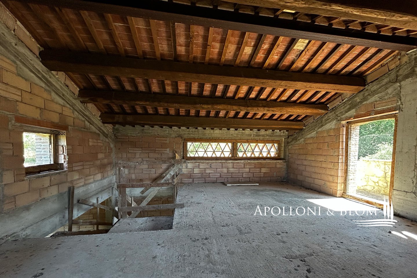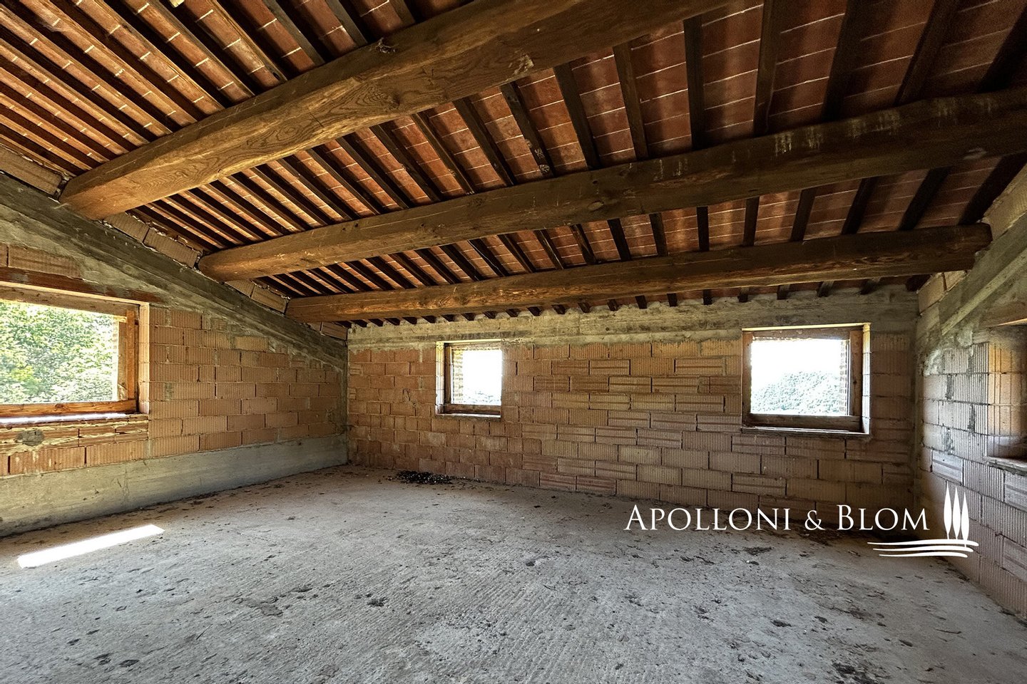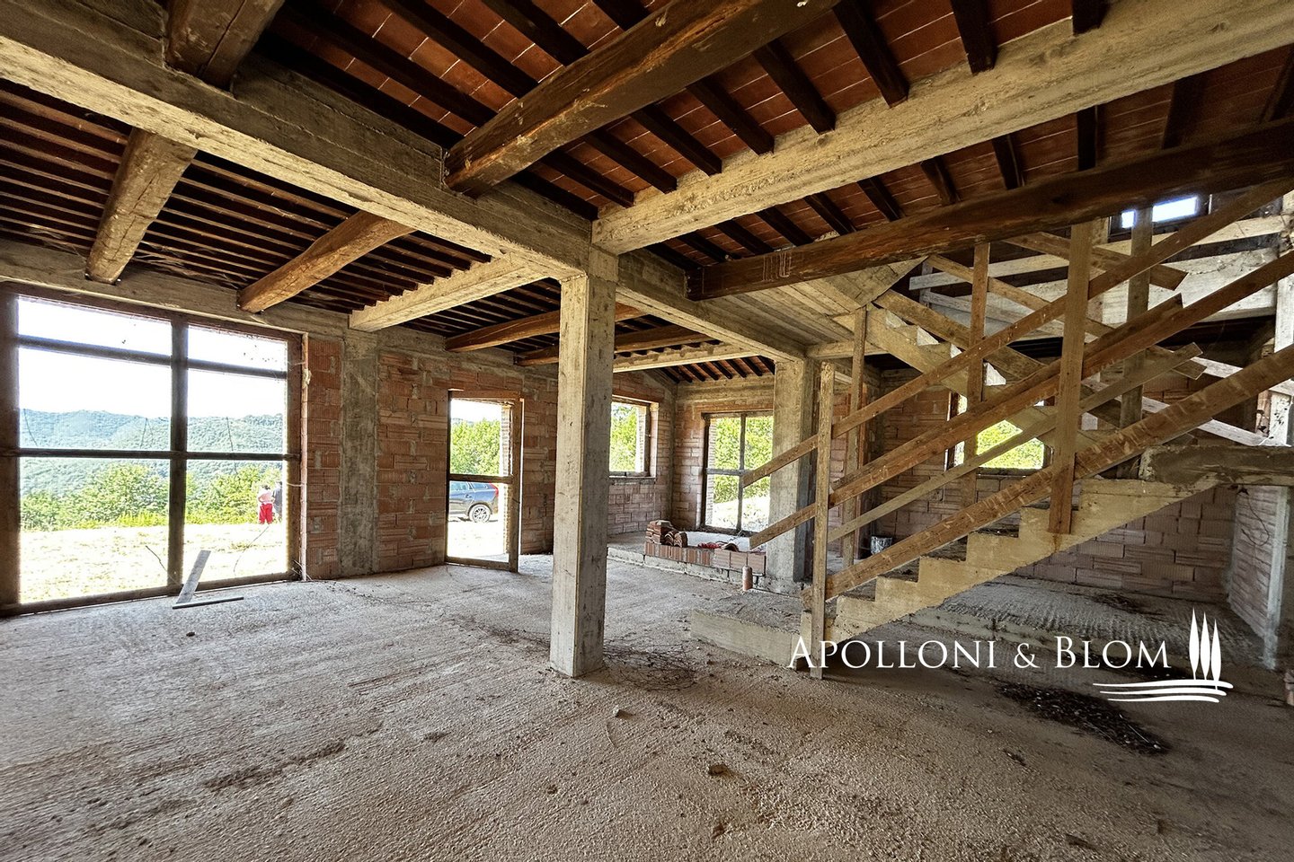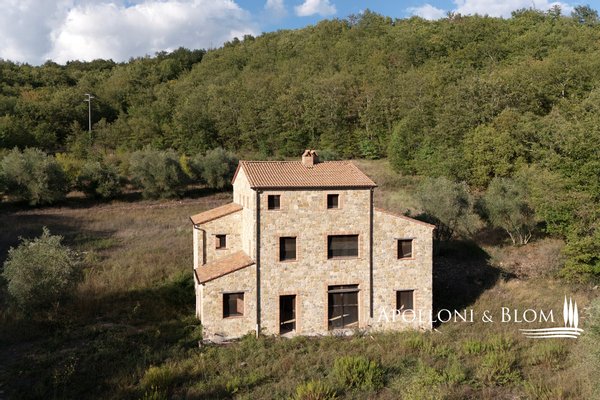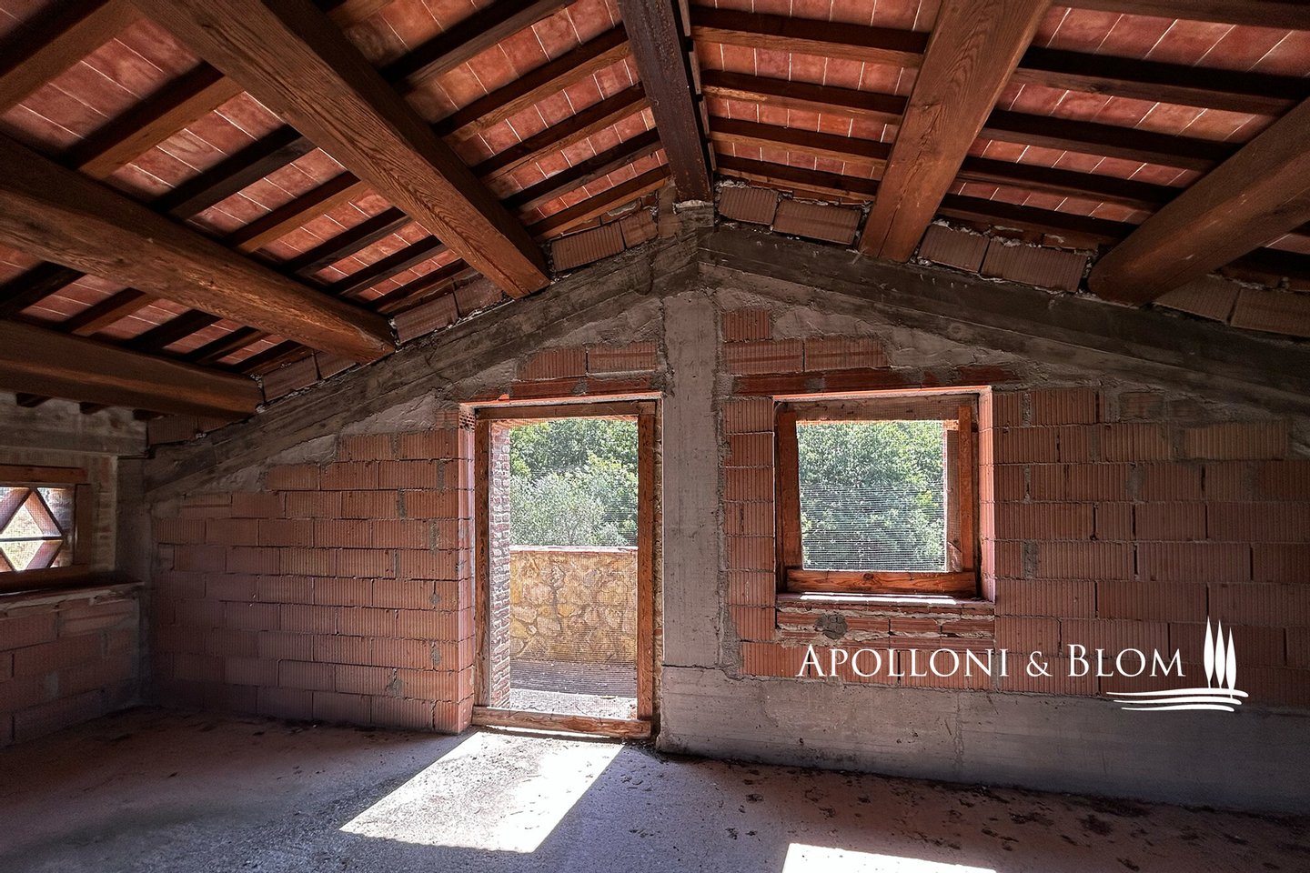 In der üppigen umbrischen Landschaft, nicht weit von der toskanischen Grenze und in einer seit prähistorischen Zeiten bewohnten Gegend, liegt dieses Bauernhaus aus Stein, das von seiner Panoramalage aus das nahe gelegene Dorf Parrano überblickt. Es wurde vor 15 Jahren neu erbaut und befindet sich derzeit in einem unfertigen Zustand. Das Projekt sieht einen großen Wohnbereich im Erdgeschoss, den Schlafbereich im ersten Stock und einen Dachboden im zweiten Stock vor, der sowohl von innen als auch von außen über eine schöne Steintreppe zugänglich ist. Die Innenräume ermöglichen eine vollständige individuelle Gestaltung der Oberflächen, angefangen bei den Fußböden, den Einrichtungsgegenständen, den Innenwänden und den Bädern. Der derzeitige Zustand, mit den noch zu installierenden Systemen, ermöglicht einen Wohnsitz der hohen Energieklasse für eine bessere Lebensqualität. Der Außenbereich eignet sich für den Bau eines Swimmingpools mit schöner Sonneneinstrahlung und am Rande eines produktiven Olivenhains. Die Lage und die besonderen Eigenschaften des Bauernhauses machen es zu einer ausgezeichneten Investition, sowohl aus der Sicht des Wohnens als auch aus der Sicht des Tourismus.