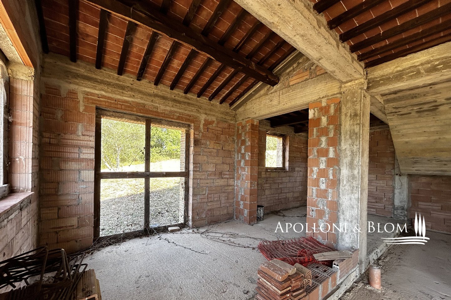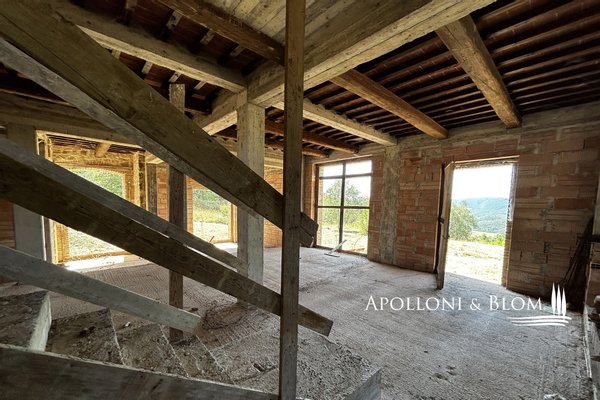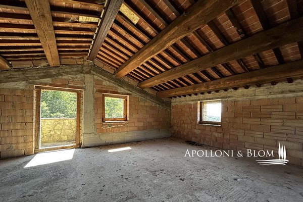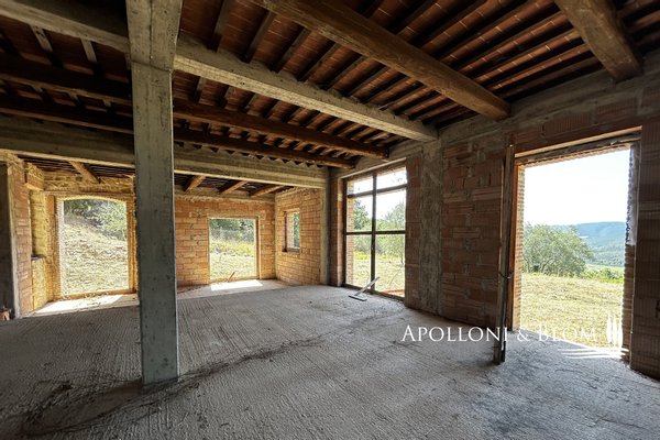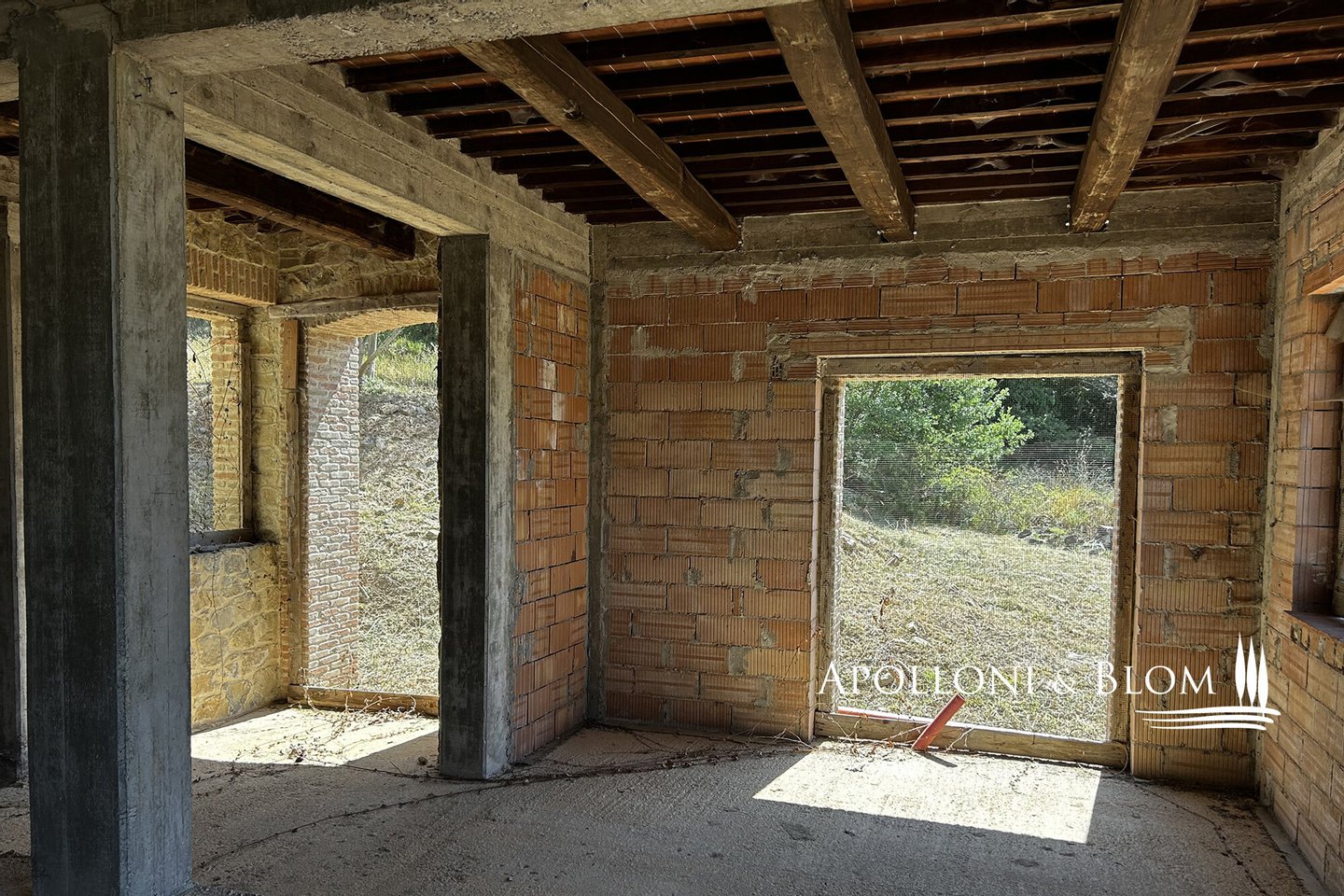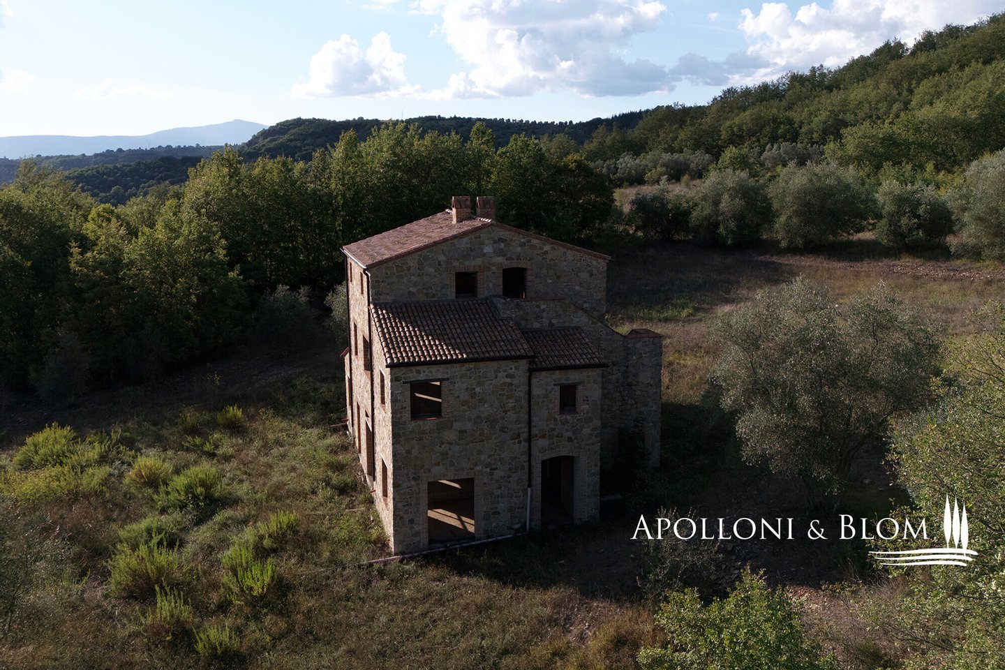 In der üppigen umbrischen Landschaft, nicht weit von der toskanischen Grenze und in einer seit prähistorischen Zeiten bewohnten Gegend, liegt dieses Bauernhaus aus Stein, das von seiner Panoramalage aus das nahe gelegene Dorf Parrano überblickt. Es wurde vor 15 Jahren neu erbaut und befindet sich derzeit in einem unfertigen Zustand. Das Projekt sieht einen großen Wohnbereich im Erdgeschoss, den Schlafbereich im ersten Stock und einen Dachboden im zweiten Stock vor, der sowohl von innen als auch von außen über eine schöne Steintreppe zugänglich ist. Die Innenräume ermöglichen eine vollständige individuelle Gestaltung der Oberflächen, angefangen bei den Fußböden, den Einrichtungsgegenständen, den Innenwänden und den Bädern. Der derzeitige Zustand, mit den noch zu installierenden Systemen, ermöglicht einen Wohnsitz der hohen Energieklasse für eine bessere Lebensqualität. Der Außenbereich eignet sich für den Bau eines Swimmingpools mit schöner Sonneneinstrahlung und am Rande eines produktiven Olivenhains. Die Lage und die besonderen Eigenschaften des Bauernhauses machen es zu einer ausgezeichneten Investition, sowohl aus der Sicht des Wohnens als auch aus der Sicht des Tourismus.