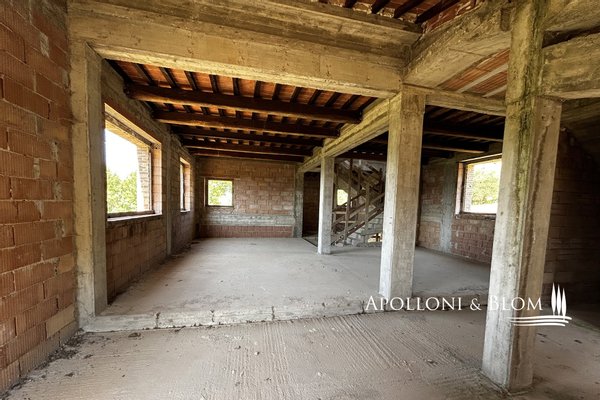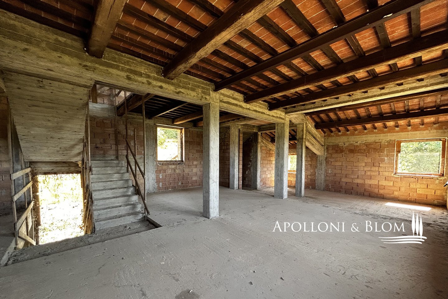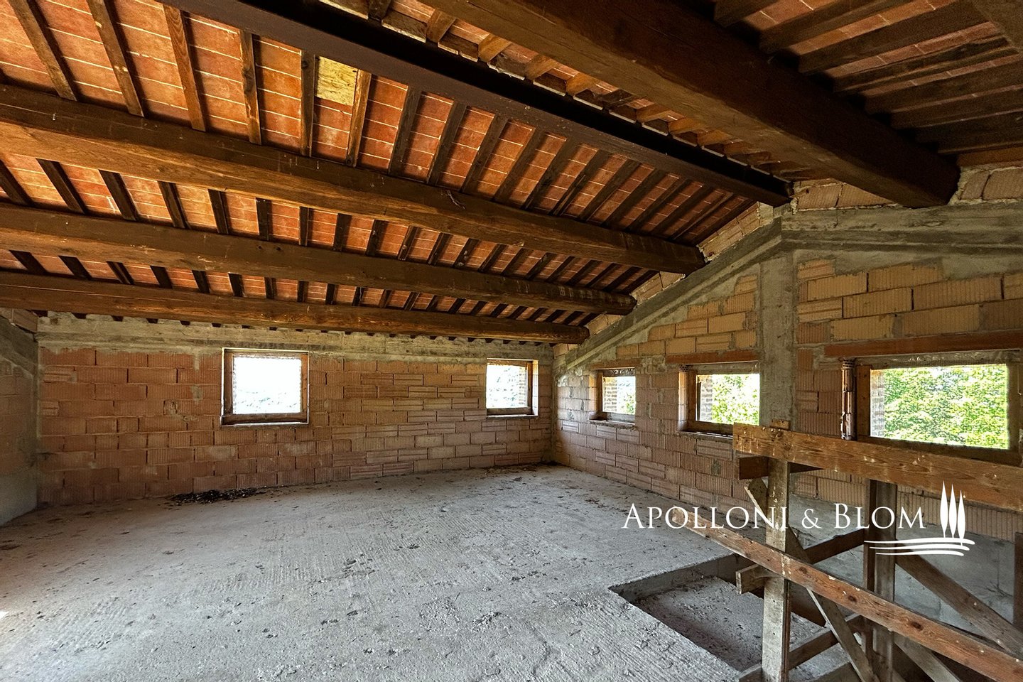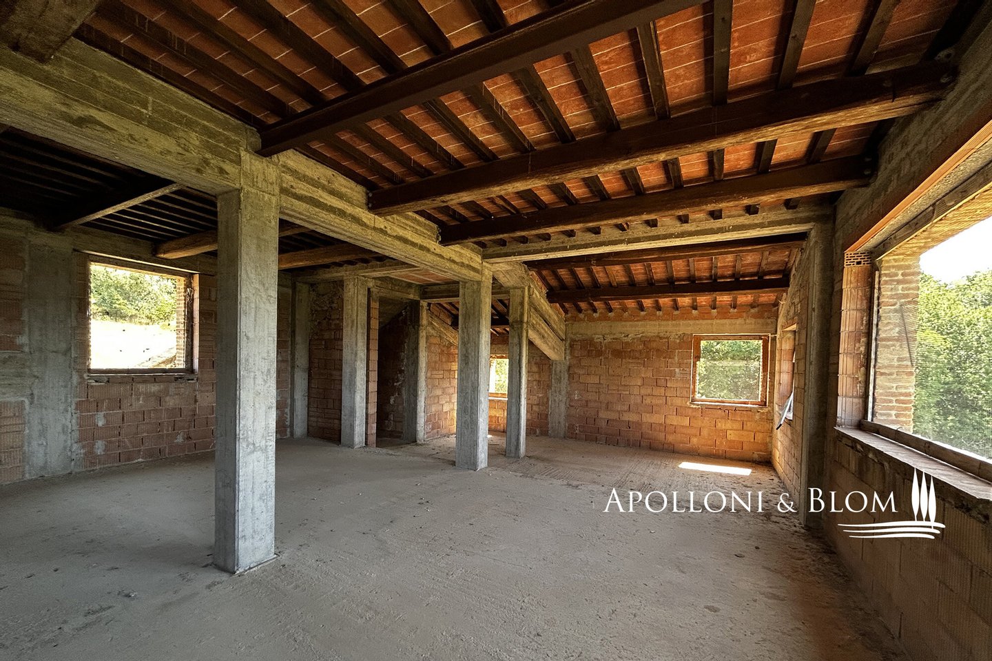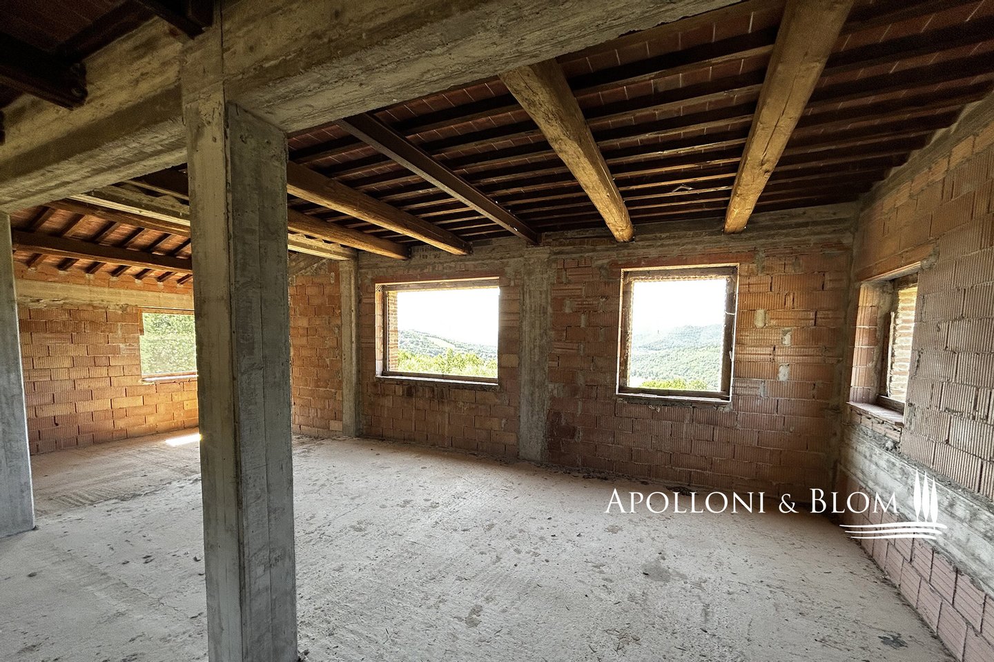 In der üppigen umbrischen Landschaft, nicht weit von der toskanischen Grenze und in einer seit prähistorischen Zeiten bewohnten Gegend, liegt dieses Bauernhaus aus Stein, das von seiner Panoramalage aus das nahe gelegene Dorf Parrano überblickt. Es wurde vor 15 Jahren neu erbaut und befindet sich derzeit in einem unfertigen Zustand. Das Projekt sieht einen großen Wohnbereich im Erdgeschoss, den Schlafbereich im ersten Stock und einen Dachboden im zweiten Stock vor, der sowohl von innen als auch von außen über eine schöne Steintreppe zugänglich ist. Die Innenräume ermöglichen eine vollständige individuelle Gestaltung der Oberflächen, angefangen bei den Fußböden, den Einrichtungsgegenständen, den Innenwänden und den Bädern. Der derzeitige Zustand, mit den noch zu installierenden Systemen, ermöglicht einen Wohnsitz der hohen Energieklasse für eine bessere Lebensqualität. Der Außenbereich eignet sich für den Bau eines Swimmingpools mit schöner Sonneneinstrahlung und am Rande eines produktiven Olivenhains. Die Lage und die besonderen Eigenschaften des Bauernhauses machen es zu einer ausgezeichneten Investition, sowohl aus der Sicht des Wohnens als auch aus der Sicht des Tourismus.