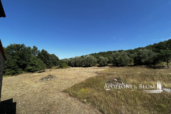 Land/Garten: ca. 15 Hektar, davon 12,5 Hektar Wald, 1,5 Hektar Ackerland und 1 Hektar Weinberg/Olivenhain