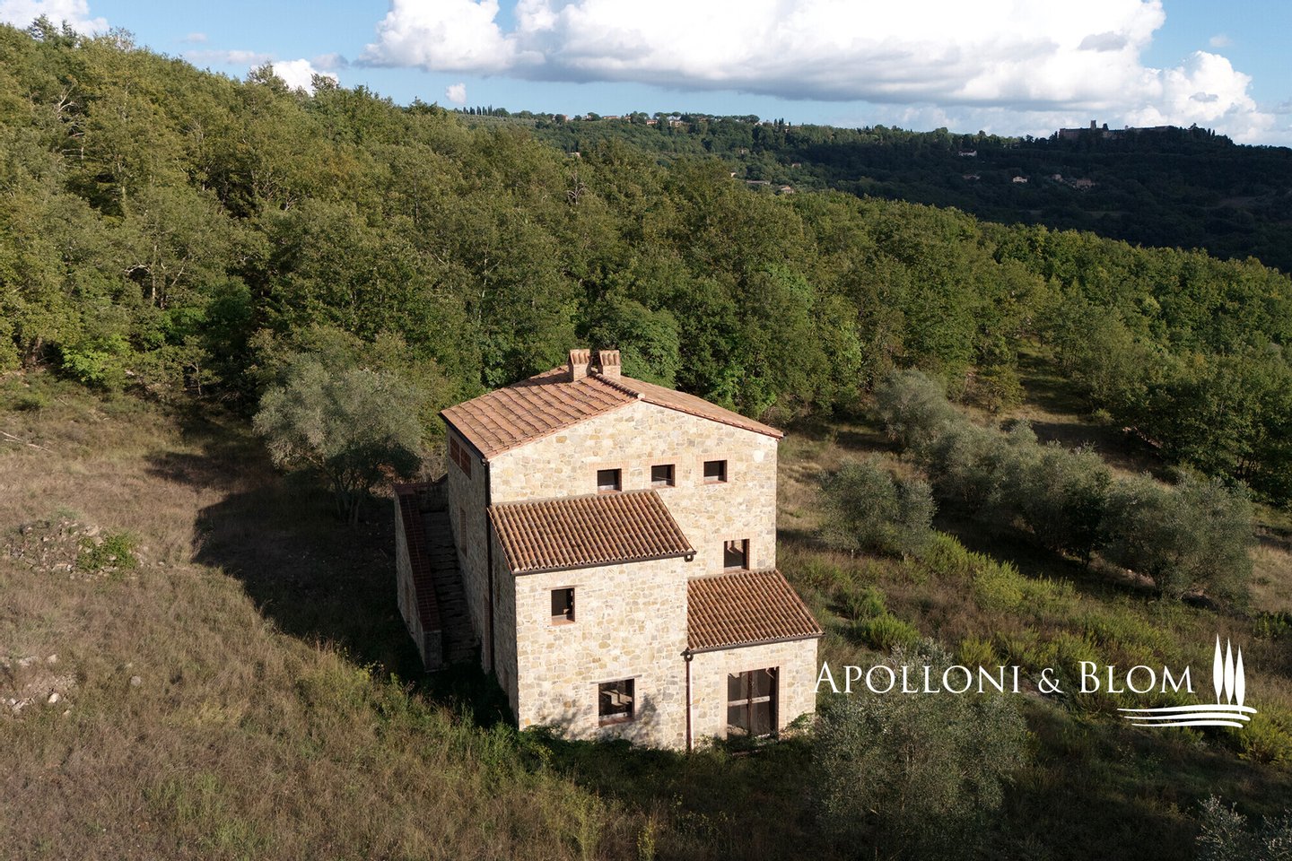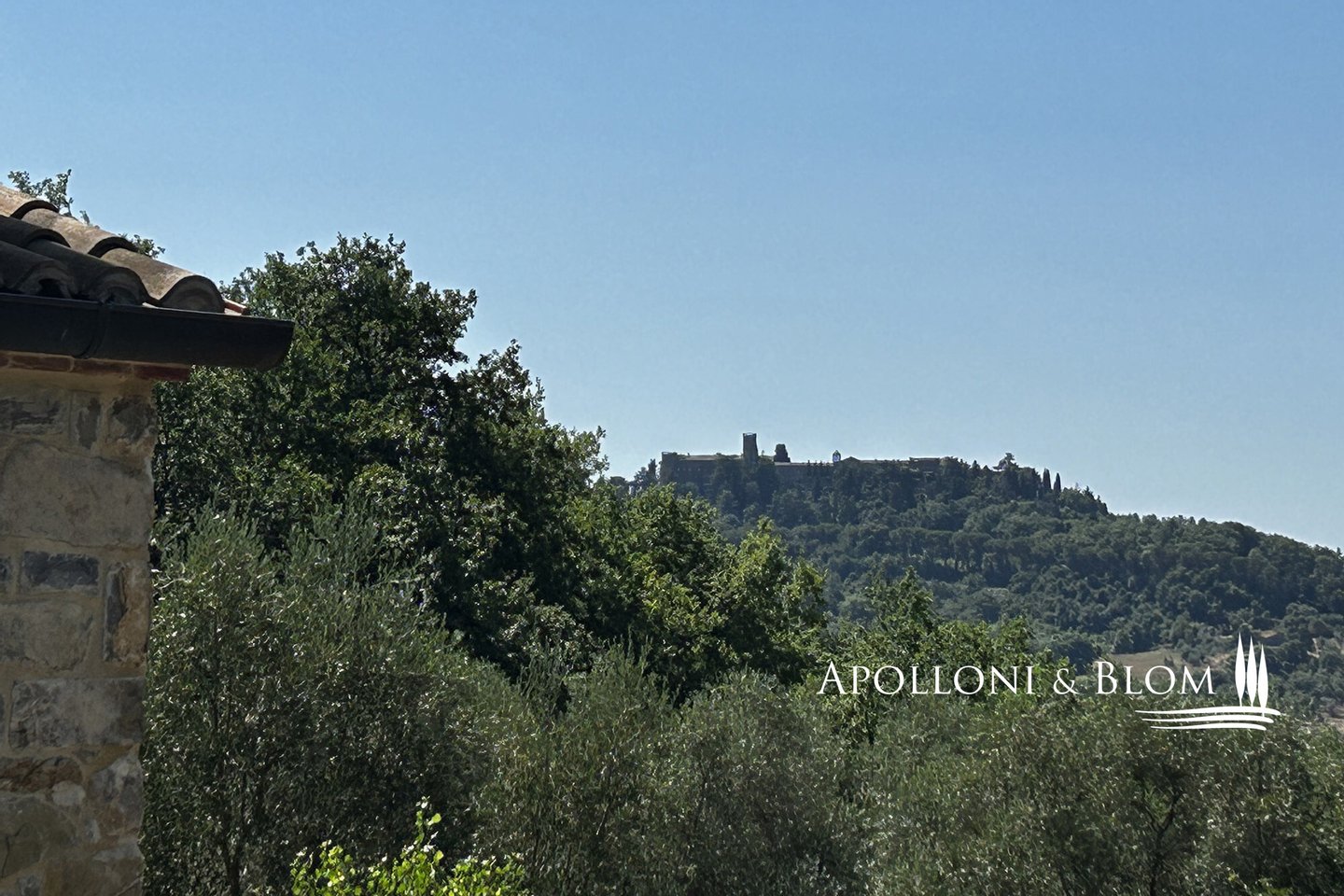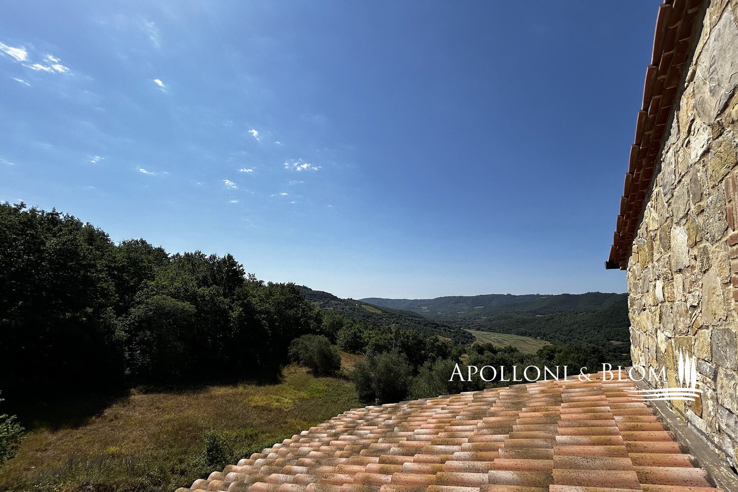 In der üppigen umbrischen Landschaft, nicht weit von der toskanischen Grenze und in einer seit prähistorischen Zeiten bewohnten Gegend, liegt dieses Bauernhaus aus Stein, das von seiner Panoramalage aus das nahe gelegene Dorf Parrano überblickt. Es