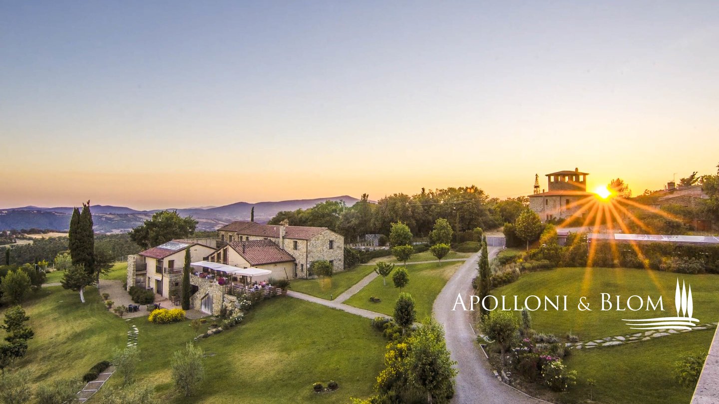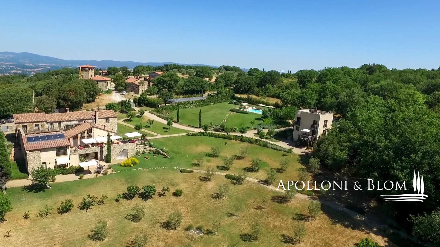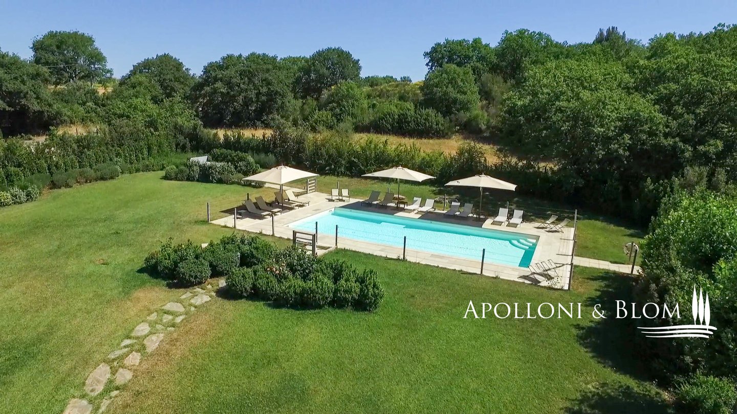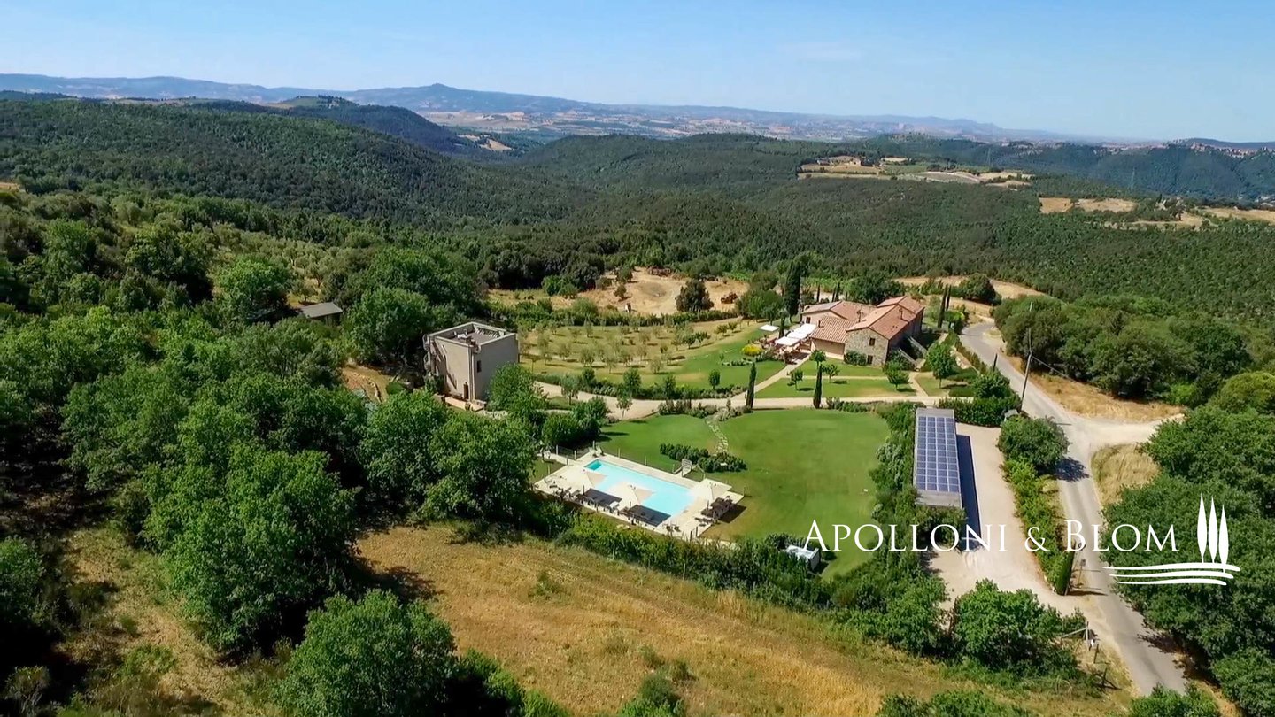 Elegantes restauriertes Bauernhaus aus dem 19. Jahrhundert mit 10 Zimmern, Nebengebäude, Schwimmbad, Sauna, Fitnessbereich im Freien, Sonnenkollektoren, zu verkaufen in Cinigiano. Mit einem atemberaubenden Blick über das Val d'Orcia und die Maremma, ist dieses authentische toskanische Anwesen von unberührten Wäldern, Olivenhainen und Montecucco-Weinbergen umgeben. Die Hauptvilla ist ein steinernes Bauernhaus aus dem 19. Jahrhundert und erstreckt sich über 750 Quadratmeter, das vom italienischen Architekten Edoardo Milesi sorgfältig restauriert und entworfen wurde, der die zeitlose Schönheit der klassischen toskanischen Architektur mit den Grundsätzen der Bioarchitektur, erneuerbaren Energien und modernsten Einrichtungen verbunden hat. Die Hauptvilla verfügt über zehn Schlafzimmer, zwölf Bäder und großzügige Wohnbereiche mit hohen Holzbalkendecken, eleganten Kaminen sowie Stein- und Terrakottaböden. Die Panoramaterrassen bieten faszinierende Ausblicke auf die Landschaft. Es wurde auf jedes Detail geachtet: doppelverglaste Holztüren und -fenster, ein komfortabler Fernsehraum, ein Entspannungsbereich, eine Speisekammer und eine Waschküche. Nicht weit von der Villa entfernt befindet sich das neu gebaute Nebengebäude mit zwei Zimmern und einer Panoramadachterrasse, die zum Sonnenbaden und Entspannen einlädt, sowie einer Garage und einer Waschküche. Der 1,5 Hektar große Park ist ein Paradies im Freien mit einem Swimmingpool, einem Whirlpool und einer Außendusche, einem voll ausgestatteten Fitnessraum im Freien, einer Musiktherapieeinrichtung im Wald, einer finnischen Sauna und einem charmanten Holzhäuschen mit einem Schlafzimmer, ideal für diejenigen, die eine ruhige Nacht in der Natur verbringen möchten. Die Energieeffizienz steht im Mittelpunkt: Sonnenkollektoren, Photovoltaikanlagen und drei Brunnen liefern Wasser für die automatische Bewässerung. Das Anwesen verfügt außerdem über eine Klimaanlage in jedem Zimmer, ein Videoüberwachungssystem mit 12 Kameras, Brandschutz und WiFi-Abdeckung in den Außenbereichen. Eine seltene Gelegenheit, den authentischen toskanischen Lebensstil zu genießen, entweder um mit Familie und Freunden zu leben oder als einzigartiger Ort, um Touristen im Urlaub zu beherbergen.