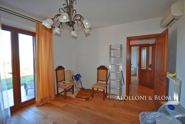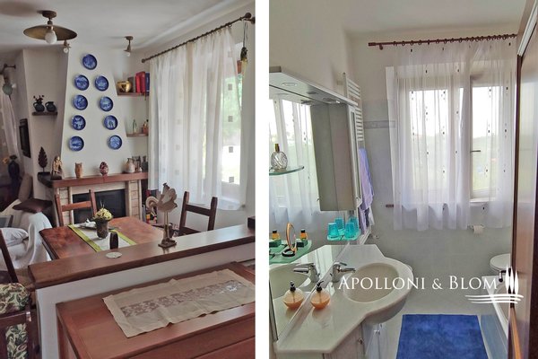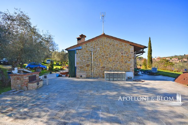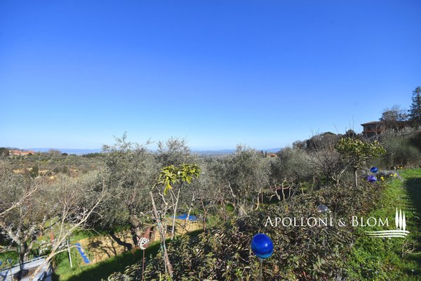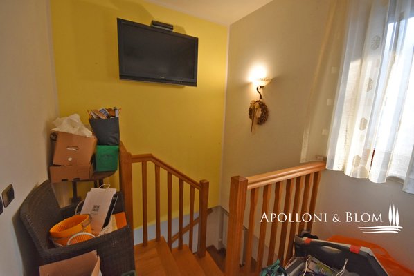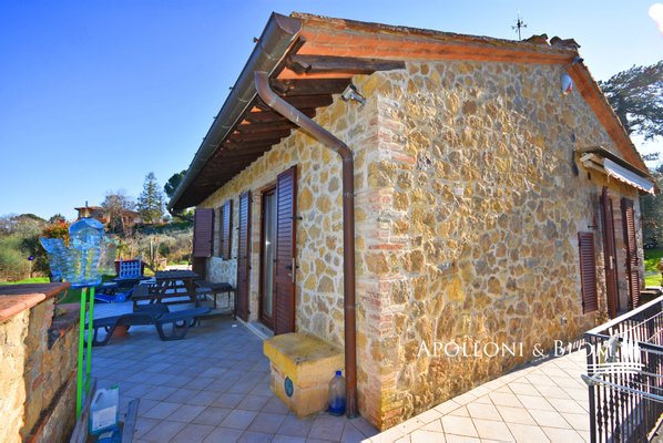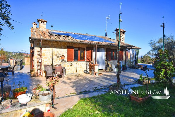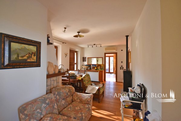 Typ: freistehendes Steinhaus von 159 qm auf zwei Ebenen mit Garten auf vier Seiten, Doppelgarage und Land mit Olivenhain