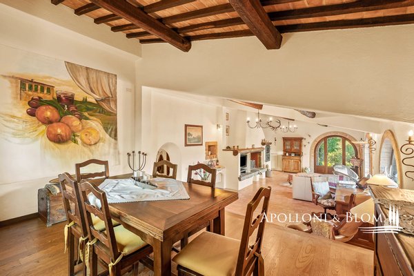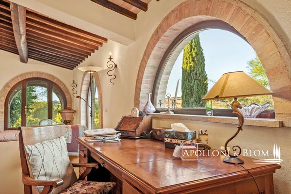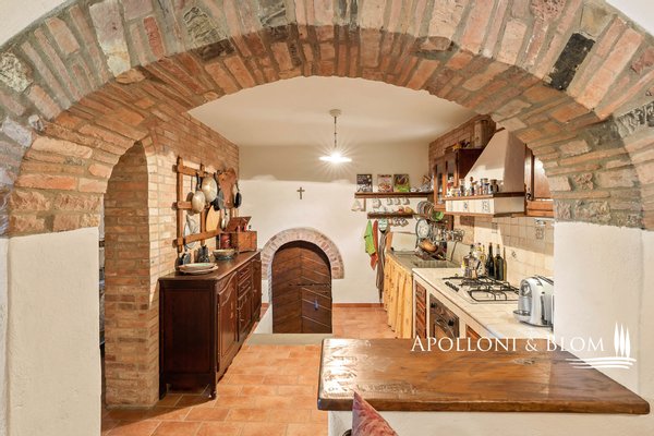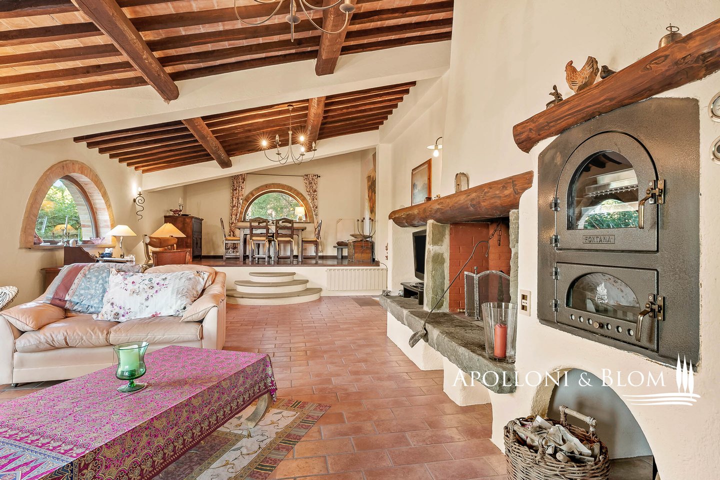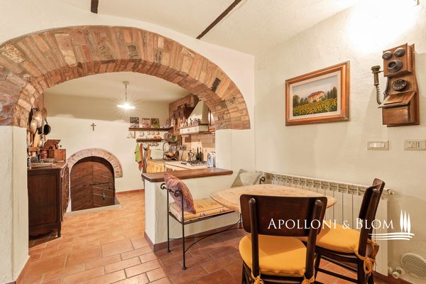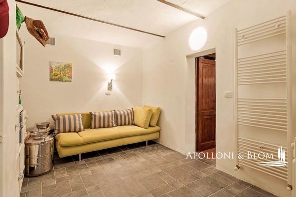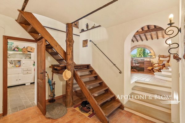 In einer der malerischsten Gegenden zwischen Umbrien und der Toskana, eingebettet in die Ruhe der sanften Hügel zwischen dem Trasimeno-See und dem Lago di Chiusi, steht dieses Bauernhaus aus Stein, eine perfekte Mischung aus ländlicher Authentizität und modernem Komfort. Das fein renovierte Bauernhaus erstreckt sich über drei Etagen mit einer Gesamtfläche von etwa 200 Quadratmetern und ist von einem üppigen Garten mit Olivenhain und Weinberg umgeben, der sich über mehr als eineinhalb Hektar erstreckt. Ein eleganter Säulengang gibt einen Vorgeschmack auf die warme Atmosphäre, die die Innenräume kennzeichnet: luftige, helle Räume, die mit originellen architektonischen Details wie Terrakottaböden, freiliegenden Holzbalken und einer malerischen Massivholztreppe verziert sind. Im Erdgeschoss befindet sich ein Wohnbereich, der von einem Steinkamin und einem Holzofen dominiert wird. Die Küche mit praktischem Hauswirtschaftsraum blickt auf eine zweite Veranda, die ideal für Mahlzeiten im Freien mit Blick auf die Hügellandschaft ist. Die Ebene wird durch ein Badezimmer und im unteren Bereich durch eine Waschküche, einen Keller und eine faszinierende natürliche Grotte vervollständigt, die den Charme der Tradition bewahrt hat. Im Obergeschoss befinden sich zwei Schlafzimmer, eines davon als Hauptschlafzimmer mit eigenem Bad und einer Terrasse, von der aus man den Zauber der umbrisch-toskanischen Landschaft bewundern kann. Das perfekt in die Landschaft integrierte Bauernhaus ist über eine gepflegte Panoramastraße zu erreichen. Die Möglichkeit, einen Swimmingpool zu bauen, macht dieses Bauernhaus zu einer noch exklusiveren Gelegenheit, ideal als Hauptwohnsitz oder als raffiniertes Ferienhaus. Ein Ort, an dem sich die Schönheit des Landes harmonisch mit der Freude am Leben verbindet.