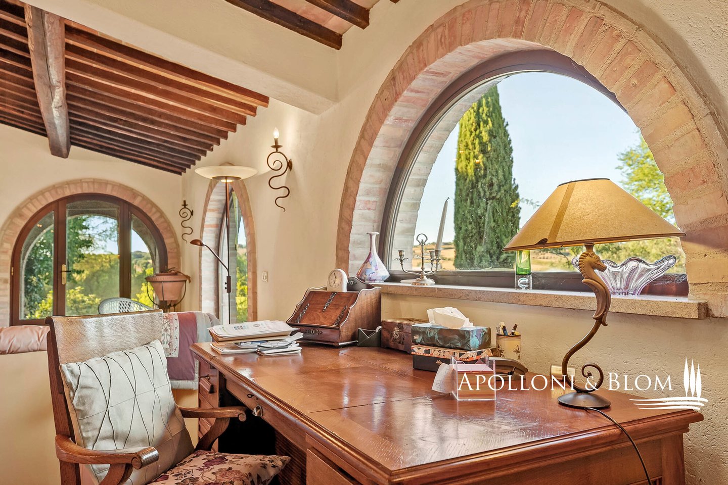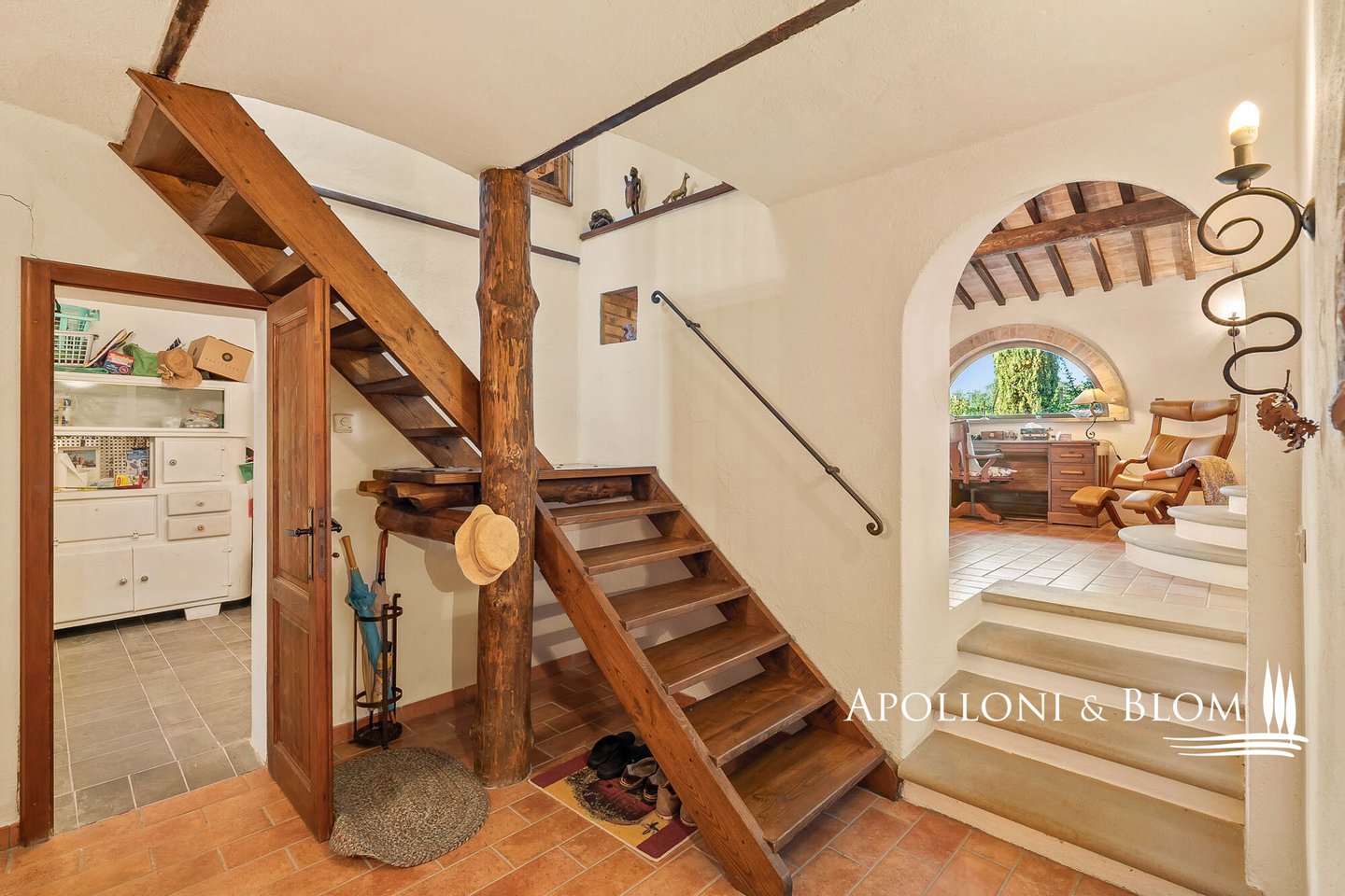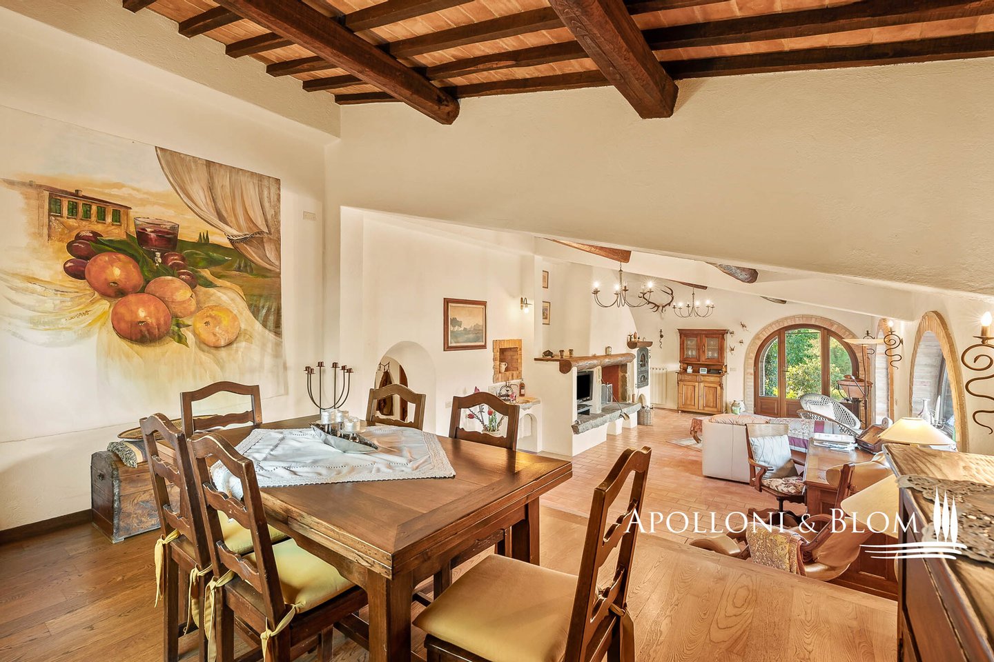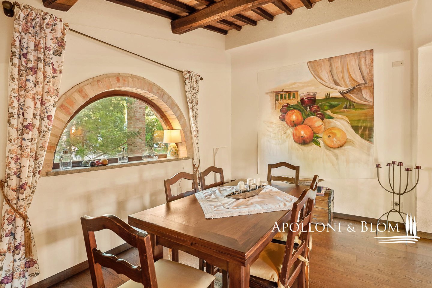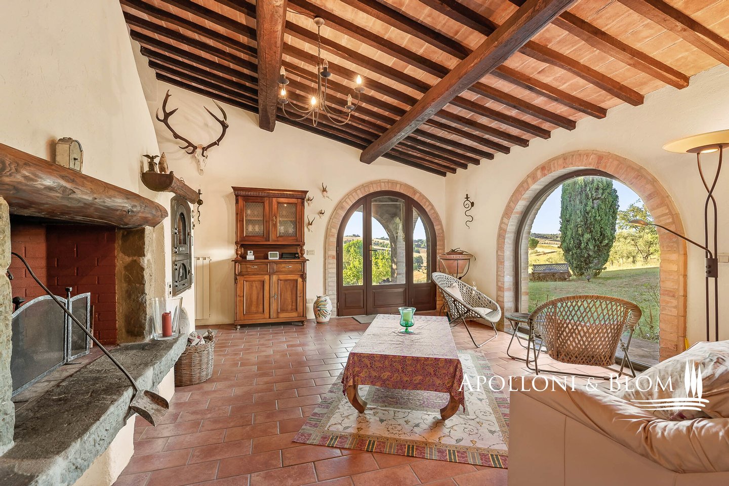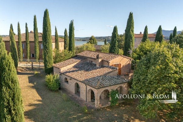In einer der malerischsten Gegenden zwischen Umbrien und der Toskana, eingebettet in die Ruhe der sanften Hügel zwischen dem Trasimeno-See und dem Lago di Chiusi, steht dieses Bauernhaus aus Stein, eine perfekte Mischung aus ländlicher Authentizität