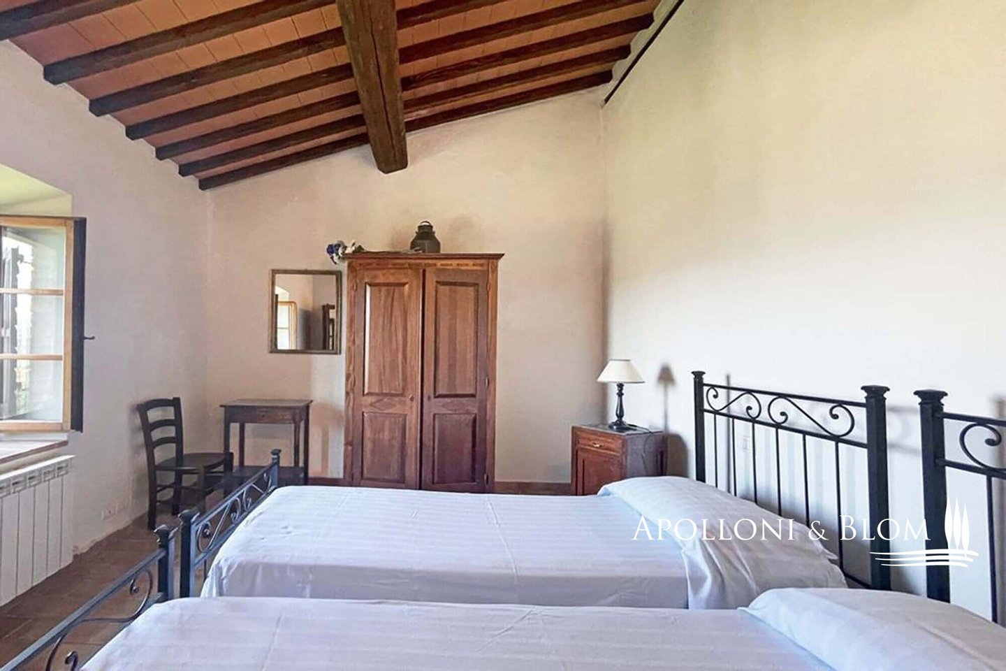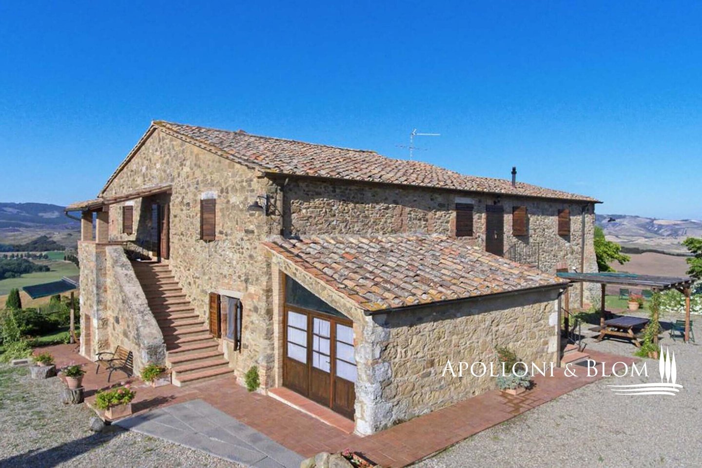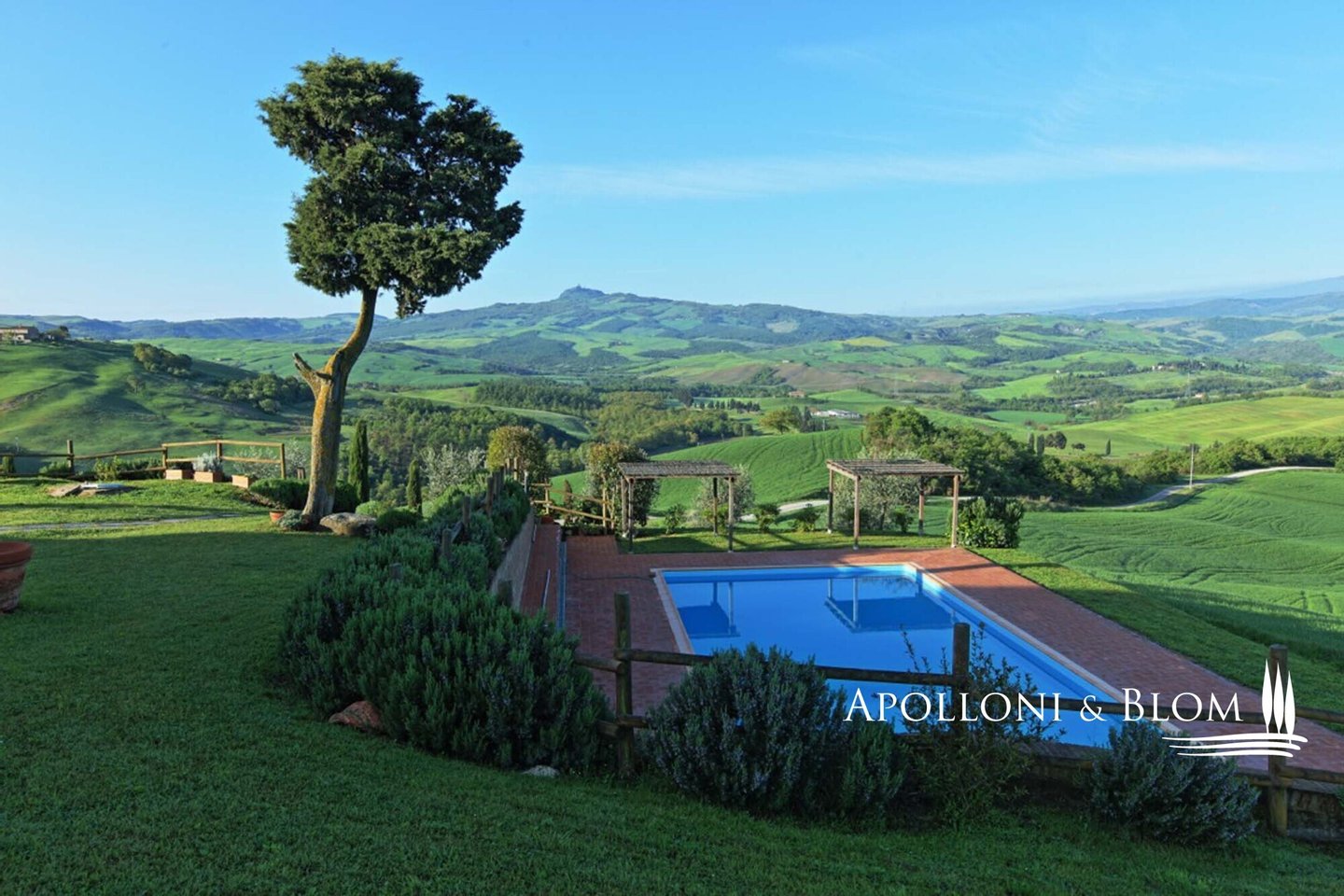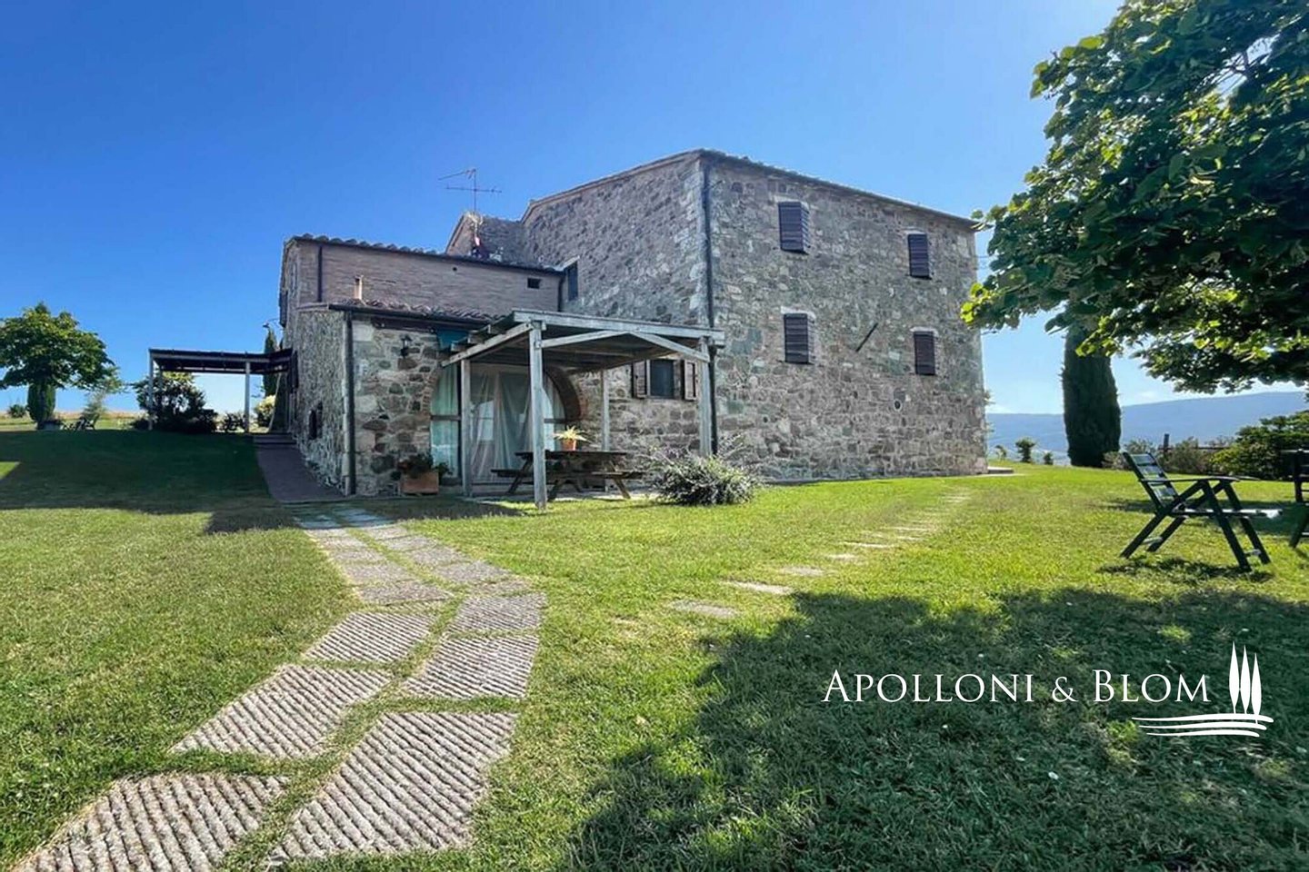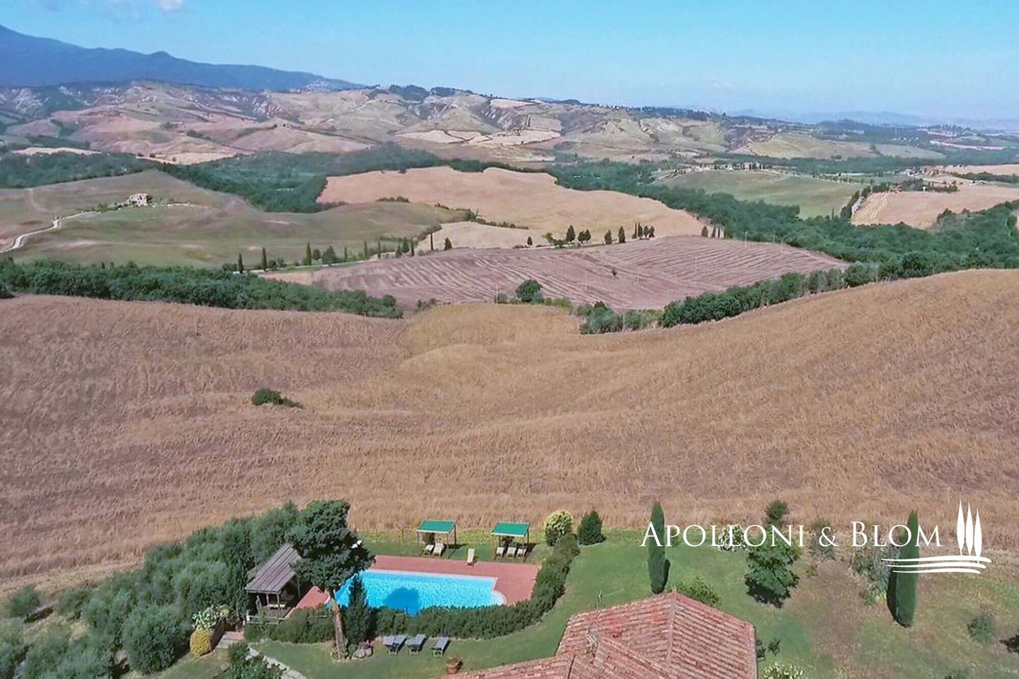In den toskanischen Hügeln, in einer privilegierten Lage, ein Bauernhof mit weitem Panoramablick, Land und Schwimmbad in der Nähe von Sarteano, Siena - Toskana. Es handelt sich um ein Bauernhaus mit Schwimmbad, das auf zwei Ebenen in fünf unabhängige Wohnungen von 496 Quadratmetern aufgeteilt ist, die alle gut eingerichtet und sehr geräumig sind und mit allem Komfort ausgestattet sind, wobei der rustikale toskanische Stil respektiert wird, sowie 160 Hektar Land. Das Bauernhaus mit seiner gegliederten Form und Steinstruktur stammt aus dem 18. Jahrhundert und wurde um das Jahr 2000 herum fachmännisch restauriert, wobei die ursprünglichen Merkmale sowohl in Form als auch in Material erhalten wurden. Das Dach wurde ordnungsgemäß isoliert. Das Anwesen, ca. 6 km von der nächsten Stadt und ca. 20 km von Pienza entfernt, erreicht man nach ca. 1 km Fahrt über eine unbefestigte Straße in gutem Zustand. Die Fassaden sind aus Stein und Sichtmauerwerk, die Innenböden aus Holzbalken und Terrakottafliesen. Der Stall wurde ebenfalls restauriert, seine Decken weisen typische Gewölbe auf, und die alte Krippe ist heute eine reizvolle Sitzbank. In diesem Landhaus gibt es auch eine Außentreppe aus Stein, die in der typischen Loggia endet. Die Einrichtungsgegenstände sind aus edlem Kastanienholz, und die Heizung wird mit Flüssiggas betrieben. Im gepflegten Garten befindet sich ein Panoramaschwimmbad mit Blick auf das Val d'Orcia und den Monte Amiata, der sich in seiner ganzen Pracht am Horizont abzeichnet, mit römischer Treppe, Hydromassage und großer gepflasterter Sonnenterrasse. Mit seiner großzügigen Fläche und der unvergleichlichen Aussicht ist das Bauernhaus ein beneidenswertes Feriendomizil in einem der schönsten Täler der Welt.
