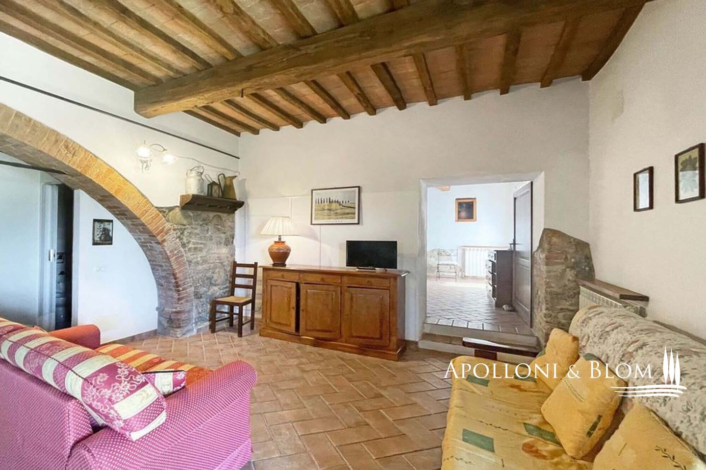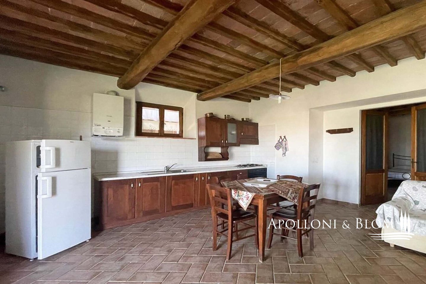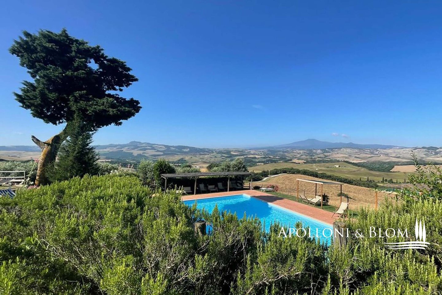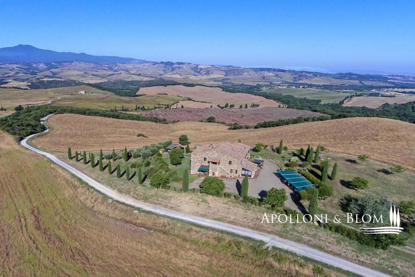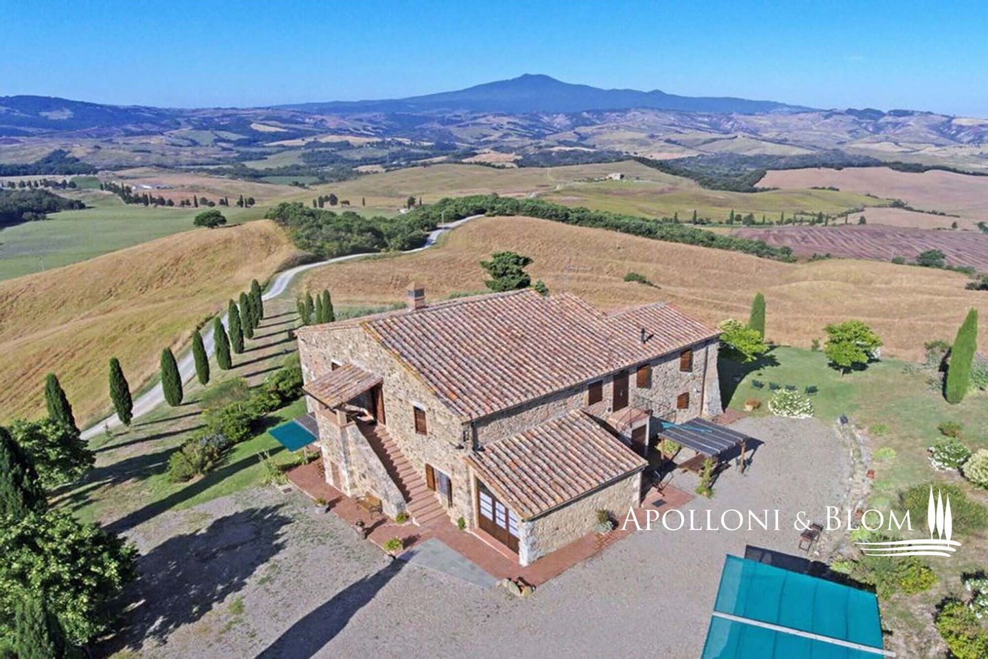In den toskanischen Hügeln, in einer privilegierten Lage, ein Bauernhof mit weitem Panoramablick, Land und Schwimmbad in der Nähe von Sarteano, Siena - Toskana. Es handelt sich um ein Bauernhaus mit Schwimmbad, das auf zwei Ebenen in fünf unabhängige Wohnungen von 496 Quadratmetern aufgeteilt ist, die alle gut eingerichtet und sehr geräumig sind und mit allem Komfort ausgestattet sind, wobei der rustikale toskanische Stil respektiert wird, sowie 160 Hektar Land. Das Bauernhaus mit seiner gegliederten Form und Steinstruktur stammt aus dem 18. Jahrhundert und wurde um das Jahr 2000 herum fachmännisch restauriert, wobei die ursprünglichen Merkmale sowohl in Form als auch in Material erhalten wurden. Das Dach wurde ordnungsgemäß isoliert. Das Anwesen, ca. 6 km von der nächsten Stadt und ca. 20 km von Pienza entfernt, erreicht man nach ca. 1 km Fahrt über eine unbefestigte Straße in gutem Zustand. Die Fassaden sind aus Stein und Sichtmauerwerk, die Innenböden aus Holzbalken und Terrakottafliesen. Der Stall wurde ebenfalls restauriert, seine Decken weisen typische Gewölbe auf, und die alte Krippe ist heute eine reizvolle Sitzbank. In diesem Landhaus gibt es auch eine Außentreppe aus Stein, die in der typischen Loggia endet. Die Einrichtungsgegenstände sind aus edlem Kastanienholz, und die Heizung wird mit Flüssiggas betrieben. Im gepflegten Garten befindet sich ein Panoramaschwimmbad mit Blick auf das Val d'Orcia und den Monte Amiata, der sich in seiner ganzen Pracht am Horizont abzeichnet, mit römischer Treppe, Hydromassage und großer gepflasterter Sonnenterrasse. Mit seiner großzügigen Fläche und der unvergleichlichen Aussicht ist das Bauernhaus ein beneidenswertes Feriendomizil in einem der schönsten Täler der Welt.