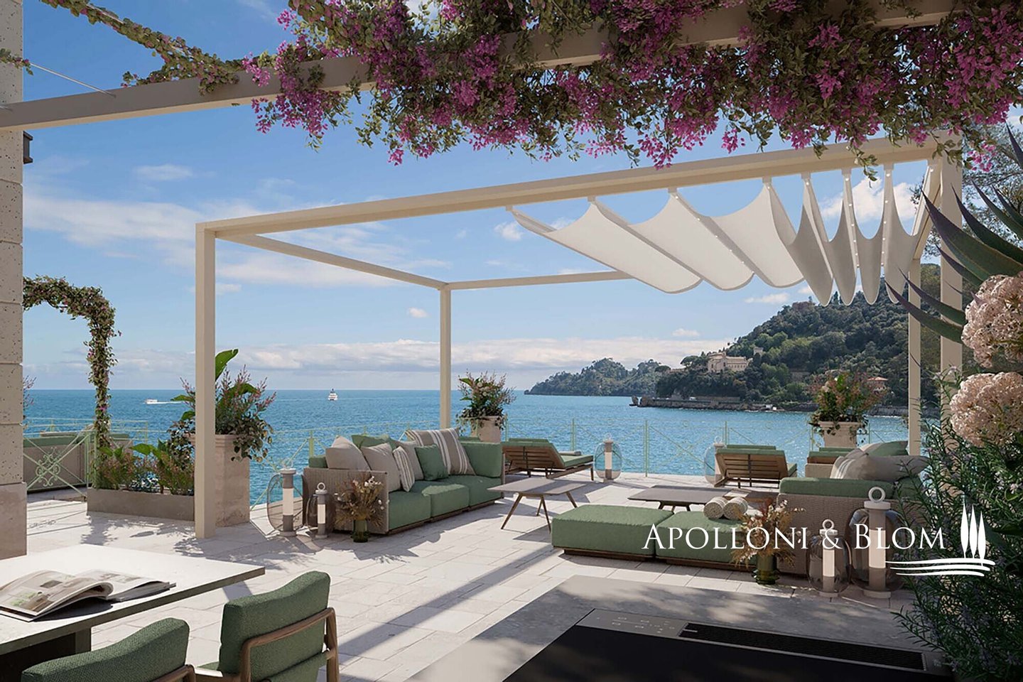 Neubau mit privatem Aufzug, vier Schlafzimmern, einer außergewöhnlichen Panoramaterrasse mit Blick auf das Meer und mit Garage zu verkaufen in Santa Margherita Ligure. Eine noch nie dagewesene Immobiliengelegenheit erwartet Sie am prestigeträchtigen