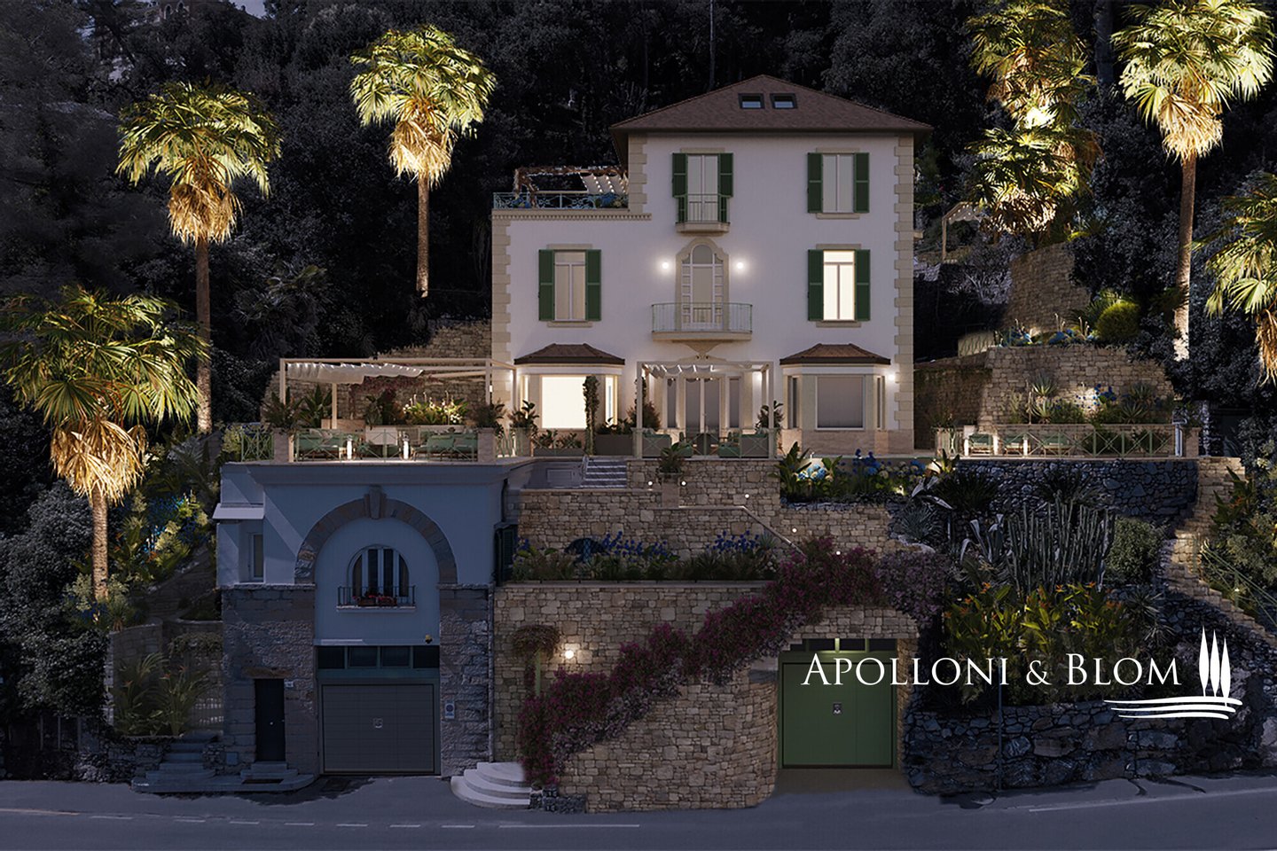 Hier ist eine anspruchsvolle Renovierung der prestigeträchtigen Villa Marli im Gange: Einzigartig, erbaut von einer prominenten englischen Familie, bietet sie außergewöhnliche Ausblicke auf eine der exklusivsten und stimmungsvollsten Meereslandschaften Italiens. Sie liegt inmitten eines fantastischen Privatparks mit typisch mediterraner Vegetation und erstreckt sich entlang der Hänge des Berges Portofino im berühmten "Parco di Portofino".