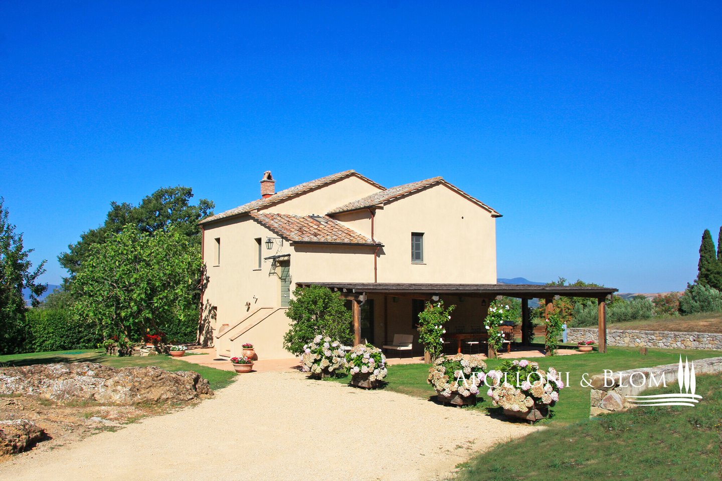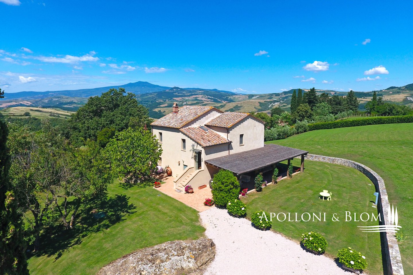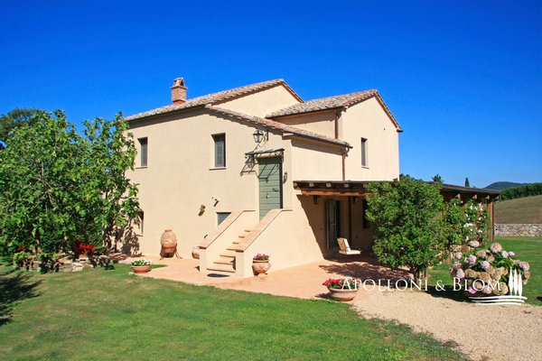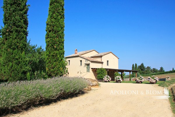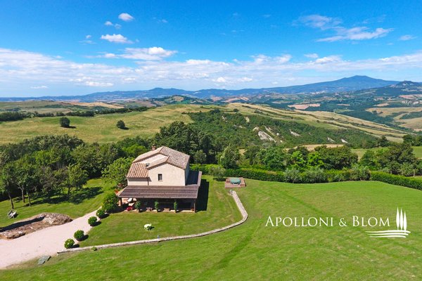 Wunderschönes restauriertes toskanisches Bauernhaus, Park und Aussichtsterrassen, hochwertige Ausstattung und moderner Komfort in Val d'Orcia zu verkaufen. Im renommierten Val d'Orcia gelegen, vereint das Casale Villa Rosa Bianca historische toskanische Authentizität, modernen Komfort und eine strategische Lage, ein ideales Domizil sowohl als private Residenz als auch als Luxusunterkunft. Das komplett restaurierte und bezugsfertige Anwesen garantiert exklusive Privatsphäre und bietet gleichzeitig eine gute Anbindung an das Zentrum von San Casciano dei Bagni und das bekannte Thermalbad Fonteverde. Ein kurzer Feldweg führt durch die Landschaft zu diesem bezaubernden Ort. Im Außenbereich befinden sich ein Park, ein Entspannungsbereich mit Jacuzzi und eine Aussichtsterrasse mit 360-Grad-Blick. Das typisch toskanische Bauernhaus aus dem Jahr 1800 ist auf zwei Etagen verteilt und verfügt über 195 Quadratmeter. Die originalen historischen Details, die Terrakottaböden und das natürliche Licht in allen Räumen sorgen für eine warme und einladende Atmosphäre. Im Erdgeschoss befinden sich zwei Doppelschlafzimmer mit eigenem Bad, von denen eines über eine interne Sauna verfügt, ein Arbeits- oder Gästezimmer, ein Badezimmer und ein Waschraum. Im ersten Stock gibt es ein elegantes Wohnzimmer mit einem großen Kamin, eine Küche, ein viertes Schlafzimmer und ein Badezimmer. Von der ersten Etage aus hat man direkten Zugang zur Terrasse mit Blick auf die sanften Hügel, soweit das Auge reicht. Der Garten bietet die Möglichkeit, einen Swimmingpool in den Boden einzubauen, vorbehaltlich einer Baugenehmigung. Apolloni & Blom bietet einen Service zur individuellen Gestaltung der von unseren Kunden ausgewählten Immobilien mit einem lokalen Netzwerk von Fachleuten und Bauunternehmern, die Sie vom Entwurf bis zur schlüsselfertigen Übergabe unterstützen! Kontaktieren Sie uns für weitere Details!