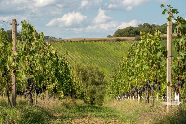 Land/Garten: 6,8 Hektar, davon 3.500 qm Garten im mediterranen Stil mit hohen Pinien, Zypressen und aromatischen Pflanzen, Grillplatz und gemauerter Außenküche, sowie weitere 6 Hektar landwirtschaftliche Nutzfläche mit 3 ha Weinbergen mit der Bezeichnung Rosso di Montepulciano DOC und 3 ha Waldfläche