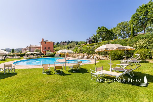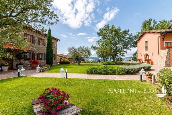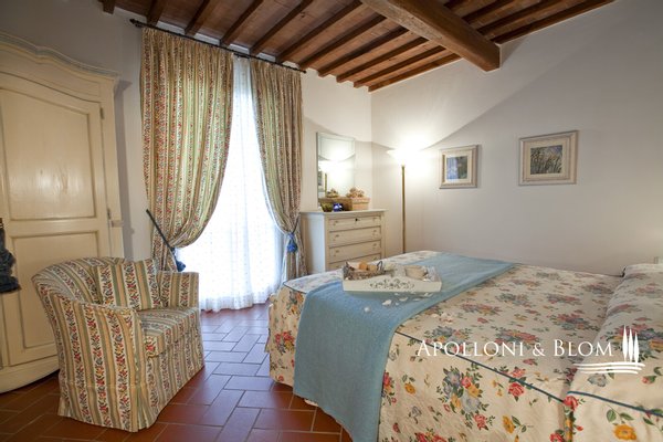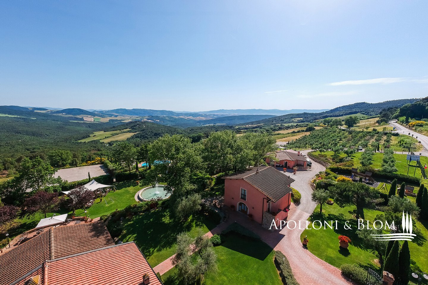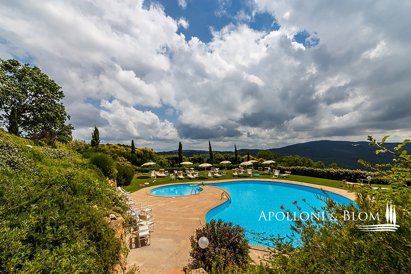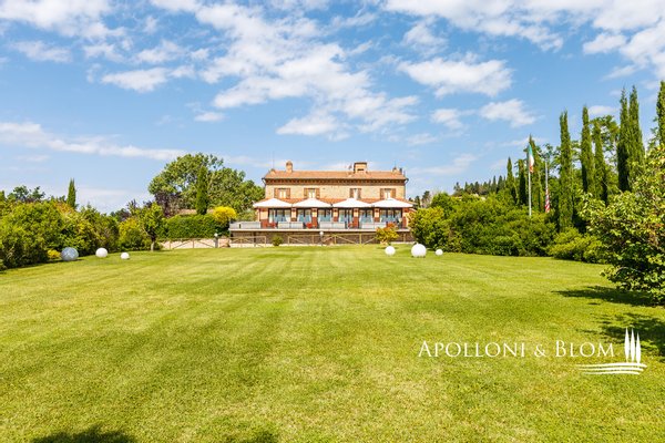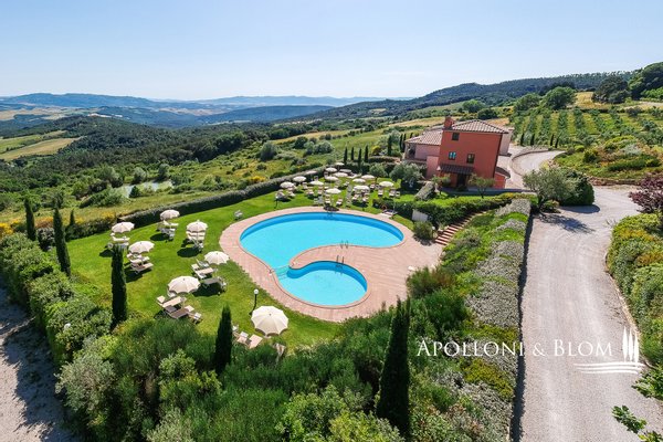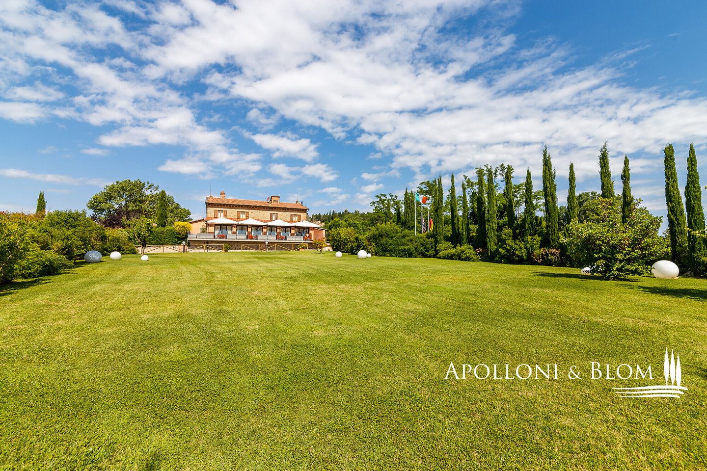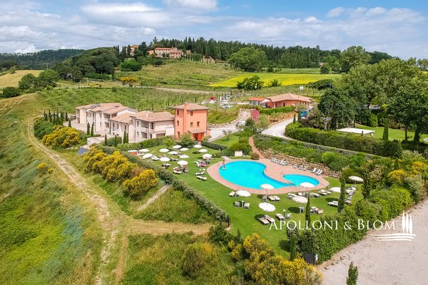 Ein bezaubernder, fein restaurierter Ort mit Schwimmbad, 34 Zimmern, Weinberg und Olivenhain mit Panoramablick auf Volterra zu verkaufen. Inmitten der authentischsten Hügel der Toskana, auf einer Höhe von ca. 400 Metern, steht ein altes Jagdschloss aus dem 19. Jahrhundert, das die umliegende Landschaft elegant beherrscht und einen Blick bis zur Stadt Volterra bietet. Das Anwesen, das sich über mehr als 73 Hektar Land innerhalb eines Jagdreservats erstreckt, ist eine harmonische Mischung aus Natur, Geschichte und Architektur, die heute perfekt restauriert und bereit ist, eine neue Berufung zu erzählen, sowohl als prestigeträchtige Privatresidenz als auch als Ort für hochrangige Gastfreundschaft oder Unternehmensrepräsentation. Das Herzstück des Anwesens ist der historische Kern, der Ende des 19. Jahrhunderts erbaut und durch sorgfältige Restaurierung wieder zum Leben erweckt wurde. In vier Gebäuden aus Stein und Backstein, die einst das Herrenhaus, die Scheune, den Keller und den Schweinestall beherbergten, befinden sich heute Empfangsräume und ein Bistro sowie 12 Zimmer, darunter Suiten und Appartements, auf einer Gesamtfläche von ca. 1140 Quadratmetern. Nicht weit davon entfernt, in diskreter Panoramalage, befindet sich der neue Wohnkomplex, der im Jahr 2000 in perfekter Übereinstimmung mit dem toskanischen Baustil errichtet wurde. Er besteht aus zwei Gebäuden, eines davon mit einem charakteristischen Türmchen, mit einer Gesamtfläche von ca. 975 Quadratmetern, die 12 Wohnungen unterschiedlicher Art mit insgesamt 22 Zimmern beherbergen. Loggien, Säulengänge, Terrakottaböden und Marmorbäder verleihen Authentizität und Wärme, während moderne Anlagen wie Wärmepumpen, Klimaanlagen und integrierte Sonnenkollektoren vorhanden sind. Das gesamte Anwesen wird möbliert verkauft, mit ausgewählten Möbeln im raffinierten, rustikalen toskanischen Stil. Der eingezäunte Park ist eine Oase der Ruhe und Landschaft. Terrakotta-Wege führen zu einem Brunnen mit Wasserspielen und einem kurvenreichen Schwimmbad, das durch einen Whirlpool und einen Kinderbereich ergänzt wird. Hinter dem Park liegt das Ackerland: 2,5 Hektar Weinberge mit der Bezeichnung Chianti DOCG, Olivenhaine, Ackerland und Wälder sowie drei Seen, die das ganze Jahr über Wasser für die Bewässerung liefern. Die Lage ist strategisch günstig: nur wenige Minuten entfernt liegt Gambassi Terme mit seinen Thermen und archäologischen Stätten, und nur 10 km entfernt befindet sich einer der beliebtesten 18-Loch-Golfplätze der Region. Mit 34 Zimmern und der Möglichkeit einer Erweiterung um bis zu 20 zusätzliche Betten und der Einrichtung eines Wellness-Zentrums sind Prestige und Rentabilität in einer der interessantesten Investitionen auf dem Markt perfekt miteinander verbunden. Ein altes Jagdgut, das nach mehr als einem Jahrhundert Geschichte als Symbol für Eleganz, Natur und Geschäftsmöglichkeiten im Herzen der Toskana wieder zum Leben erwacht.
