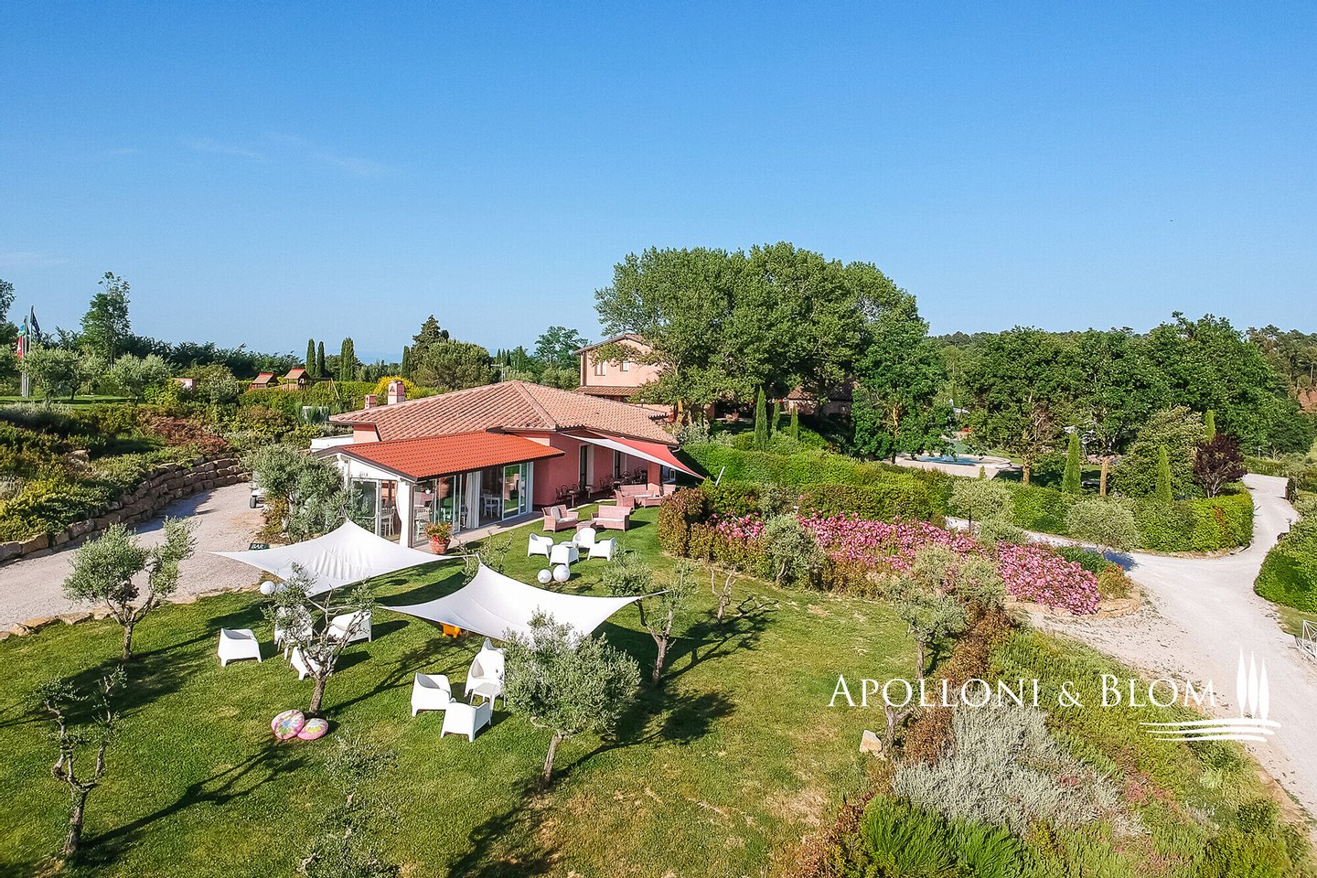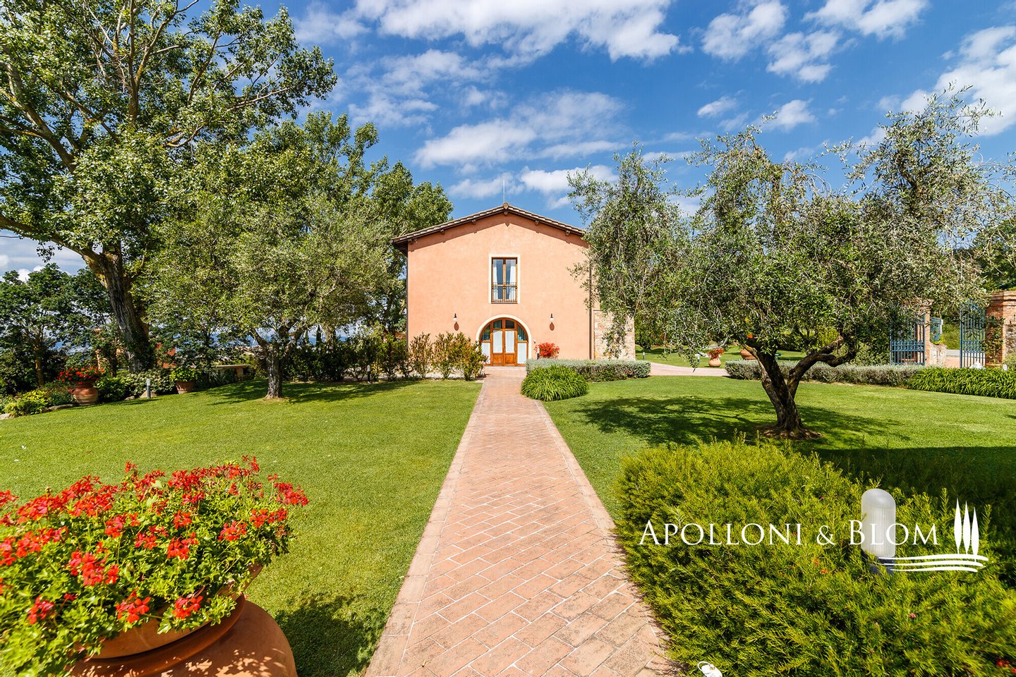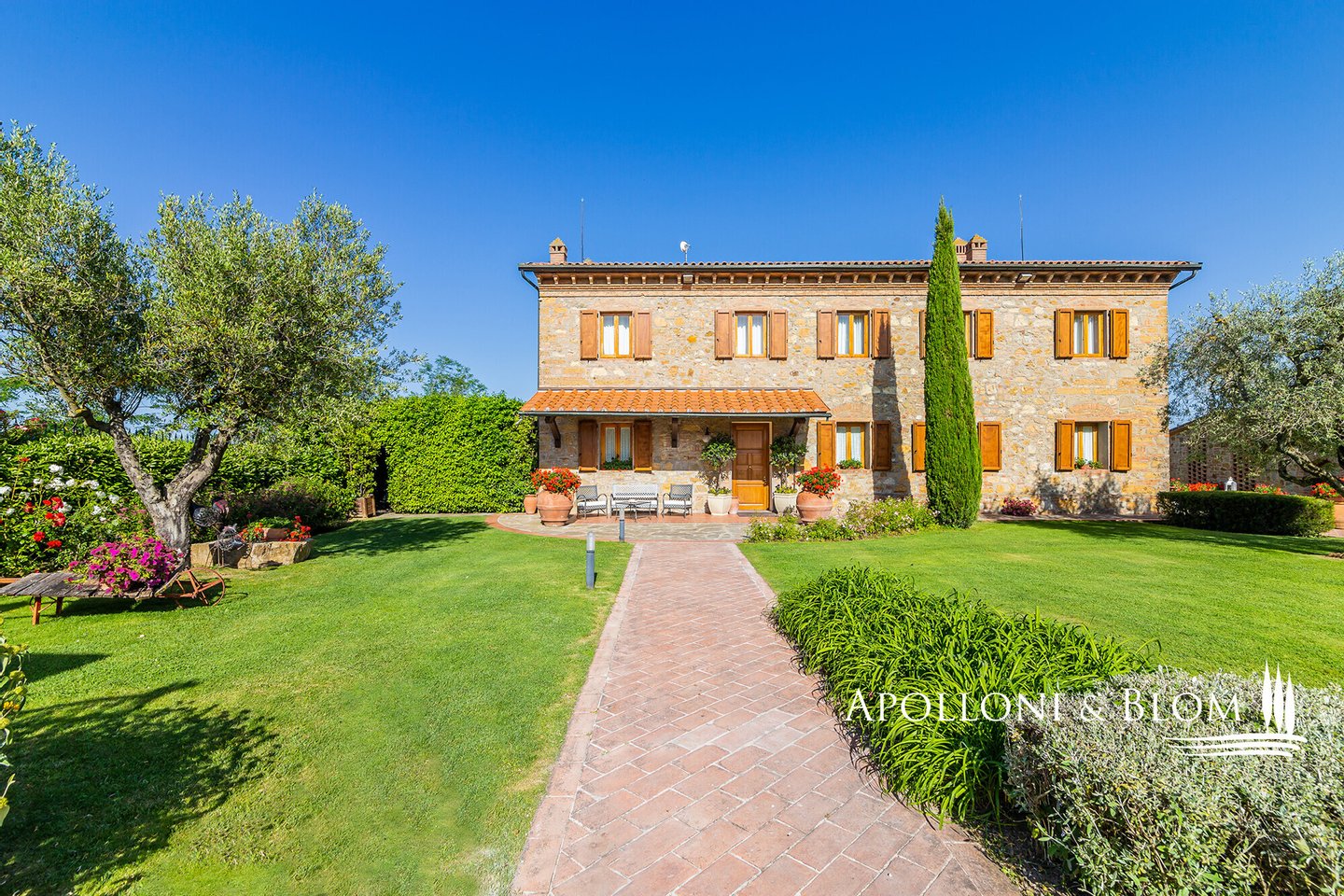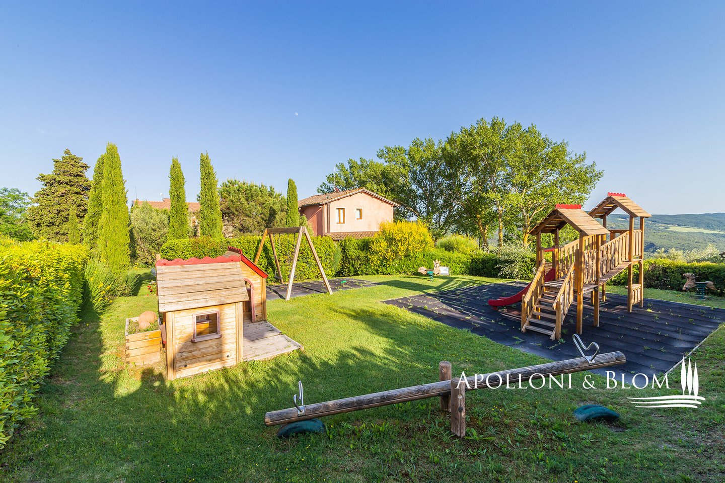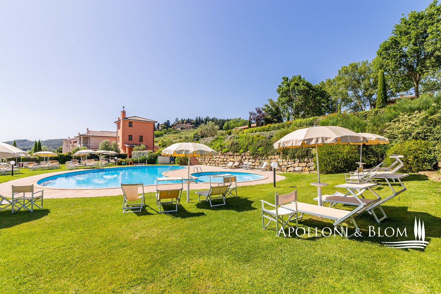 Ein bezaubernder, fein restaurierter Ort mit Schwimmbad, 34 Zimmern, Weinberg und Olivenhain mit Panoramablick auf Volterra zu verkaufen. Inmitten der authentischsten Hügel der Toskana, auf einer Höhe von ca. 400 Metern, steht ein altes Jagdschloss aus dem 19. Jahrhundert, das die umliegende Landschaft elegant beherrscht und einen Blick bis zur Stadt Volterra bietet. Das Anwesen, das sich über mehr als 73 Hektar Land innerhalb eines Jagdreservats erstreckt, ist eine harmonische Mischung aus Natur, Geschichte und Architektur, die heute perfekt restauriert und bereit ist, eine neue Berufung zu erzählen, sowohl als prestigeträchtige Privatresidenz als auch als Ort für hochrangige Gastfreundschaft oder Unternehmensrepräsentation. Das Herzstück des Anwesens ist der historische Kern, der Ende des 19. Jahrhunderts erbaut und durch sorgfältige Restaurierung wieder zum Leben erweckt wurde. In vier Gebäuden aus Stein und Backstein, die einst das Herrenhaus, die Scheune, den Keller und den Schweinestall beherbergten, befinden sich heute Empfangsräume und ein Bistro sowie 12 Zimmer, darunter Suiten und Appartements, auf einer Gesamtfläche von ca. 1140 Quadratmetern. Nicht weit davon entfernt, in diskreter Panoramalage, befindet sich der neue Wohnkomplex, der im Jahr 2000 in perfekter Übereinstimmung mit dem toskanischen Baustil errichtet wurde. Er besteht aus zwei Gebäuden, eines davon mit einem charakteristischen Türmchen, mit einer Gesamtfläche von ca. 975 Quadratmetern, die 12 Wohnungen unterschiedlicher Art mit insgesamt 22 Zimmern beherbergen. Loggien, Säulengänge, Terrakottaböden und Marmorbäder verleihen Authentizität und Wärme, während moderne Anlagen wie Wärmepumpen, Klimaanlagen und integrierte Sonnenkollektoren vorhanden sind. Das gesamte Anwesen wird möbliert verkauft, mit ausgewählten Möbeln im raffinierten, rustikalen toskanischen Stil. Der eingezäunte Park ist eine Oase der Ruhe und Landschaft. Terrakotta-Wege führen zu einem Brunnen mit Wasserspielen und einem kurvenreichen Schwimmbad, das durch einen Whirlpool und einen Kinderbereich ergänzt wird. Hinter dem Park liegt das Ackerland: 2,5 Hektar Weinberge mit der Bezeichnung Chianti DOCG, Olivenhaine, Ackerland und Wälder sowie drei Seen, die das ganze Jahr über Wasser für die Bewässerung liefern. Die Lage ist strategisch günstig: nur wenige Minuten entfernt liegt Gambassi Terme mit seinen Thermen und archäologischen Stätten, und nur 10 km entfernt befindet sich einer der beliebtesten 18-Loch-Golfplätze der Region. Mit 34 Zimmern und der Möglichkeit einer Erweiterung um bis zu 20 zusätzliche Betten und der Einrichtung eines Wellness-Zentrums sind Prestige und Rentabilität in einer der interessantesten Investitionen auf dem Markt perfekt miteinander verbunden. Ein altes Jagdgut, das nach mehr als einem Jahrhundert Geschichte als Symbol für Eleganz, Natur und Geschäftsmöglichkeiten im Herzen der Toskana wieder zum Leben erwacht.