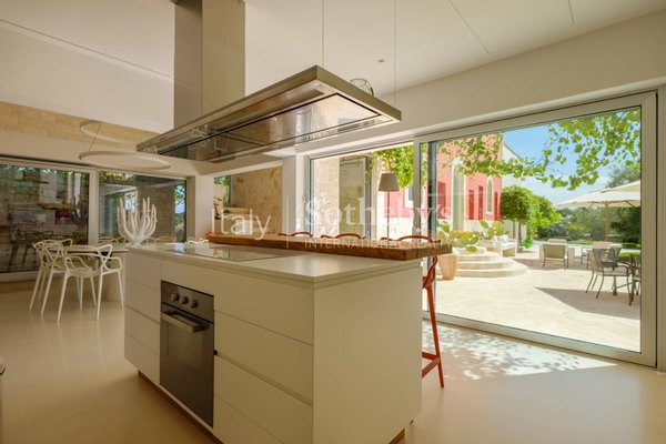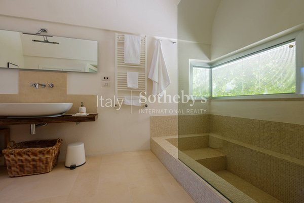 Nur 7,5 km vom historischen Zentrum von Ostuni und wenige Minuten von Ceglie Messapica entfernt, vereint dieses eindrucksvolle Landhaus den authentischen Charme der apulischen Landschaft mit dem Komfort eines fein restaurierten Anwesens.Mit über 300 m² Wo