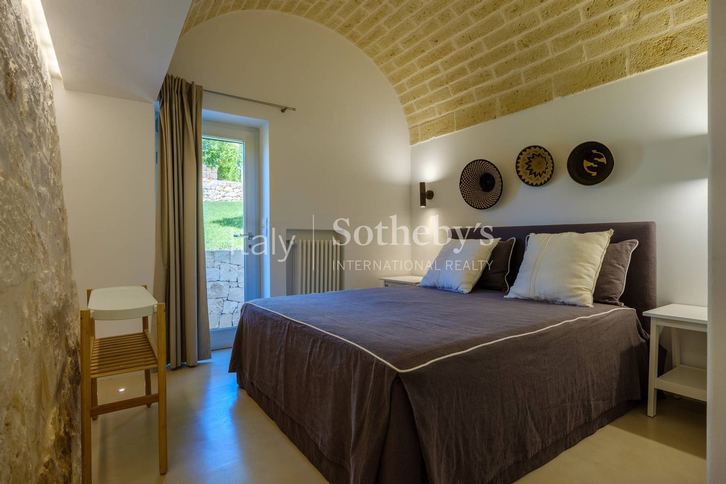 Mit über 300 m² Wohnfläche erstreckt sich die Immobilie auf einem 4,5 Hektar großen Hügelgrundstück in erhöhter Lage mit weitem Panoramablick. Sie besteht aus zwei angrenzenden Gebäuden. Das Hauptgebäude bewahrt hochwertige Originalelemente wie Stern- und Tonnengewölbe sowie Böden aus lokalem Stein. Im Inneren befinden sich ein großes Doppelwohnzimmer mit Galerie, ein Esszimmer mit offener Küche, ein weiteres helles Wohnzimmer und ein Gästebad. Der Schlafbereich besteht aus einem Schlafzimmer mit eigenem Bad und Badewanne, einem zweiten Schlafzimmer und einem weiteren Bad. Große Panoramafenster bieten durchgehend Ausblicke auf den Garten und den Pool.