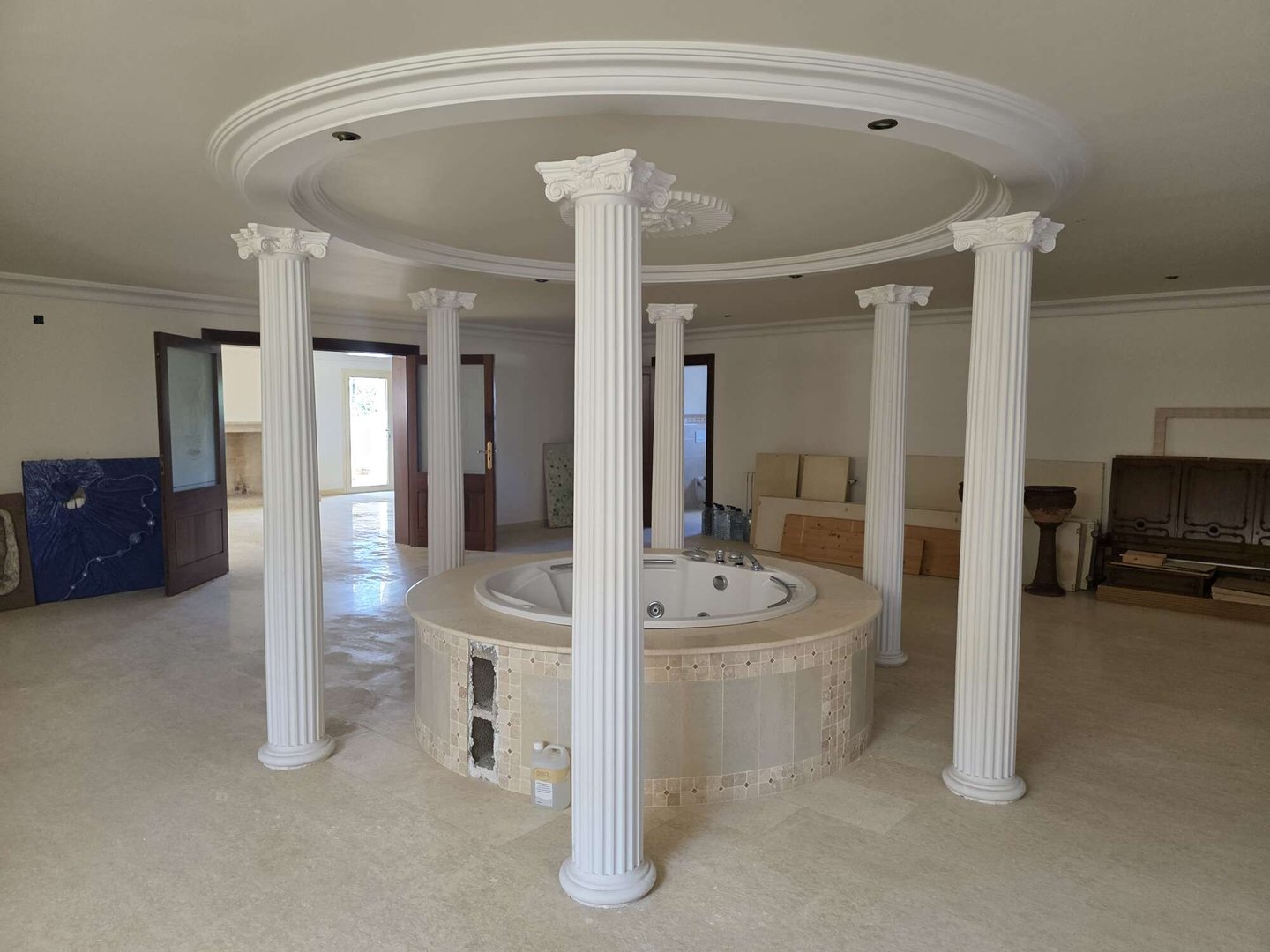 * Exklusive Details: Verzierte Gewölbekuppel eines renommierten Malers, edle Travertin-Marmorböden