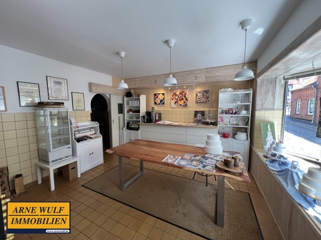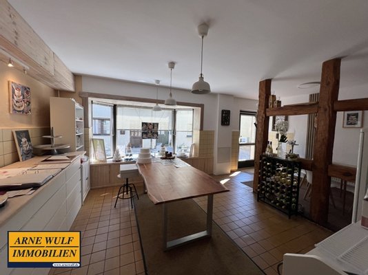 Derzeit aufgeteilt in eine Gewerbeeinheit (Bäckerei) im Erdgeschoss und zwei Wohnungen. Die Wohneinheiten lassen sich bei Bedarf zu einer großen Wohnung zusammenführen.