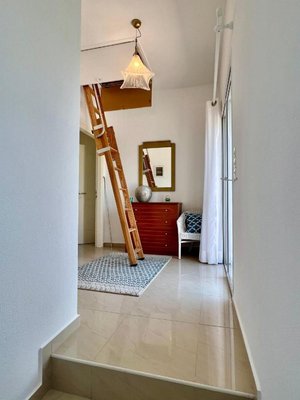 Treppenabsatz führt zu zwei großzügigen Doppelzimmern, jedes mit Einbauschränken, privaten Balkonen mit Panoramablick auf das Meer und eigenen Duschräumen