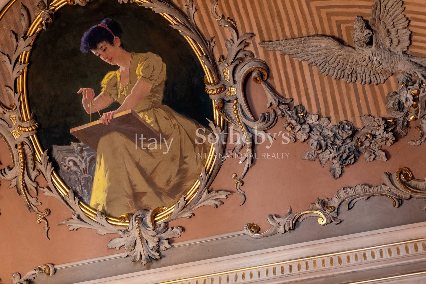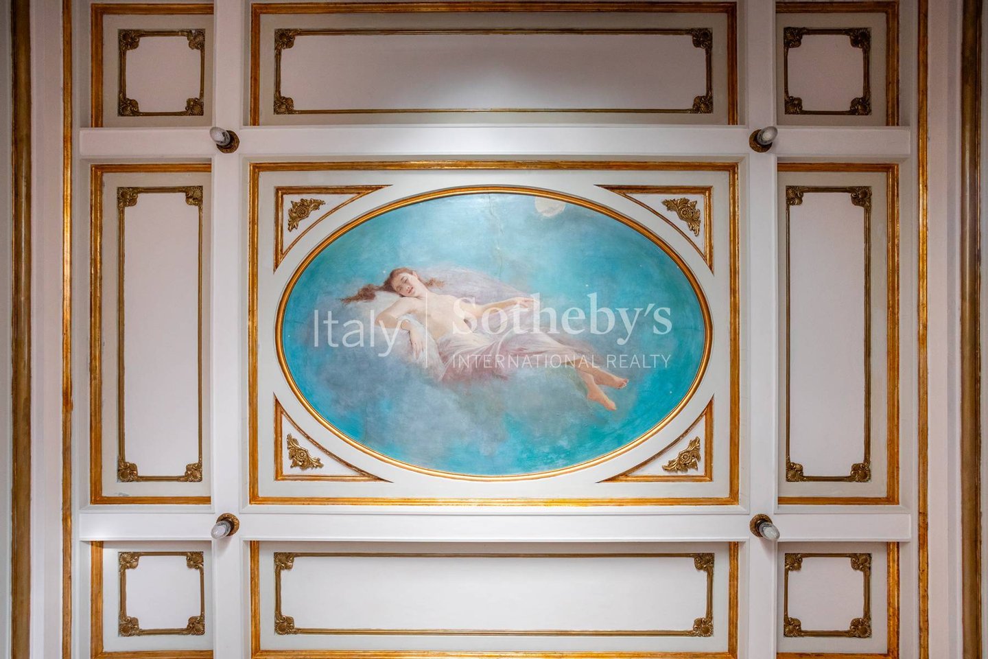 Die Räumlichkeiten umfassen zahlreiche Zimmer, Lagerräume, einen Weinkeller und im Piano Nobile vier besonders wertvolle Säle: den Spiegelsaal oder Festsaal mit Dekorationen aus Blattgold und Bronzefarbe, einer Decke im Jugendstil und Rokokomotiven, die die Geburt und den Triumph der Venus oder Flora darstellen; den Saal der Künste; den Musiksaal; und das Speisezimmer. Alle Räume sind in derselben dekorativen Technik ausgeführt, jedoch mit unterschiedlichen, von der klassischen Mythologie inspirierten Themen. Im Schlafzimmer sticht zudem ein wertvolles Deckenfresko hervor, das die Allegorie des Schlafes zeigt.
