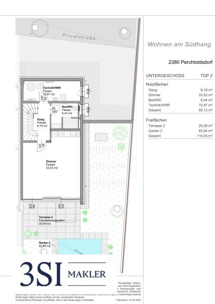 Jedes Doppelhaus verfügt über großzügige Privatbereiche im Freien: Ein Eigengarten mit Rollrasen und Terrasse lädt zum Entspannen ein, während die Dachterrassen mit ihrem spektakulären Panoramablick über den Wienerwald zum persönlichen Refugium werden. Die Option zur Installation eines eigenen Outdoor-Pools macht das Wohnerlebnis komplett. Perchtoldsdorf verbindet das Beste zweier Welten: Die Ruhe und Naturverbundenheit des Wienerwalds mit der urbanen Infrastruktur einer erstklassigen Wohnlage und ein atemberaubender Ausblick auf Wien, die umliegenden Weinberge und den Wienerwald. Kindergärten, Schulen – darunter die International Highschool Herzog – sowie Nahversorger und die historische Burg Perchtoldsdorf befinden sich in unmittelbarer Nähe. Die ausgezeichnete öffentliche Anbindung gewährleistet schnelle Erreichbarkeit der Wiener Innenstadt.