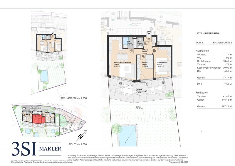 Gesamt Freifläche: rund 187 m² pures Outdoor-Leben. Diese Gartenwohnung vereint die Großzügigkeit eines Eigenheims mit dem Komfort eines modernen Neubaus – ideal für Paare, Familien oder alle, die Wert auf Qualität, Ruhe und viel Platz im Freien legen.