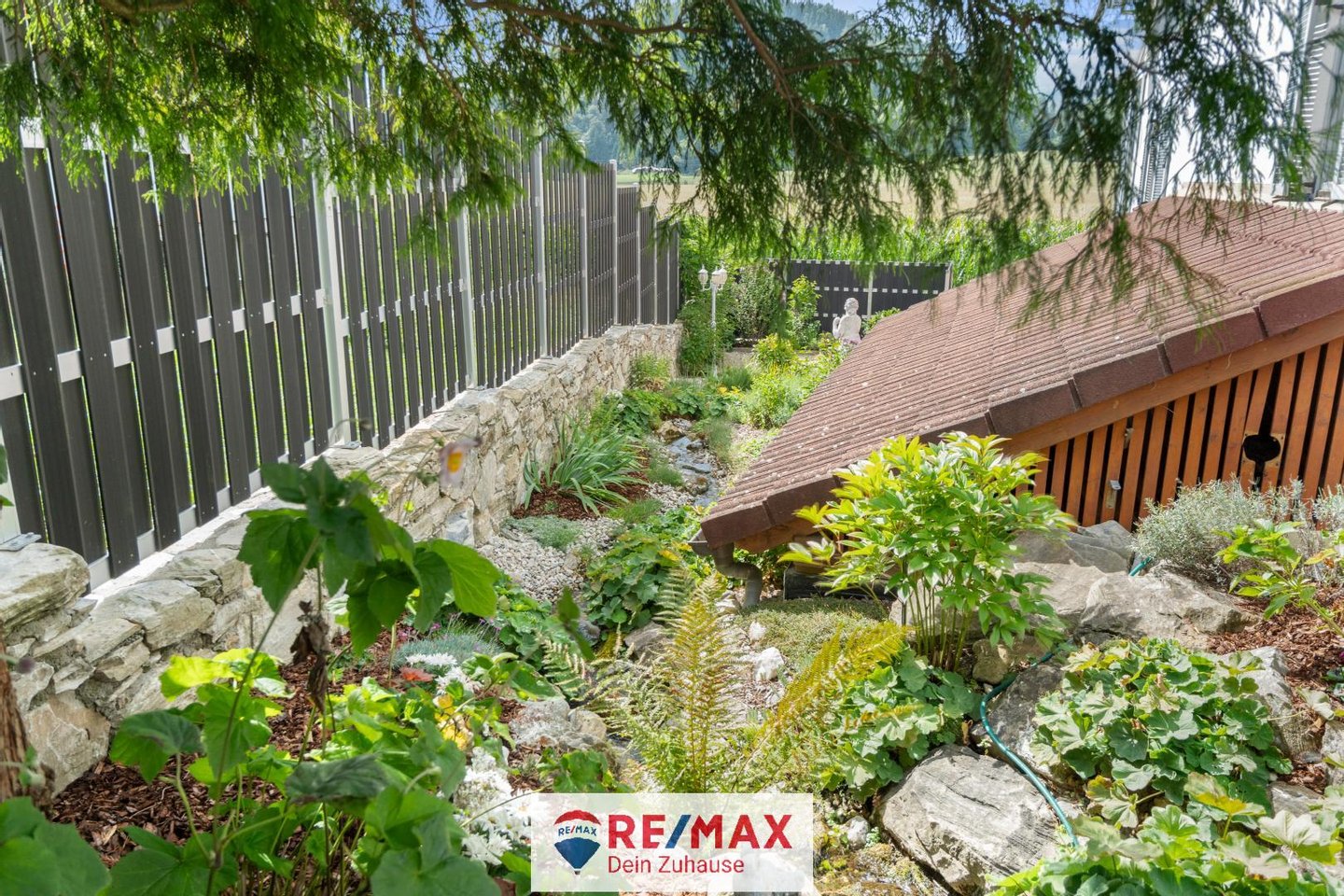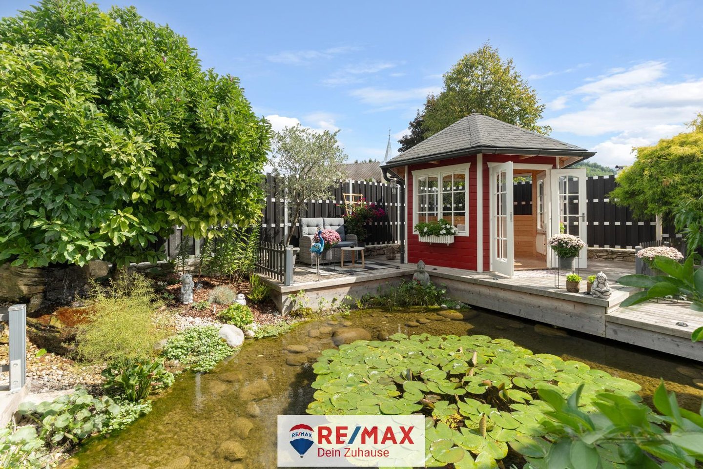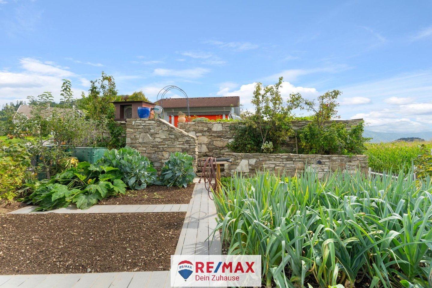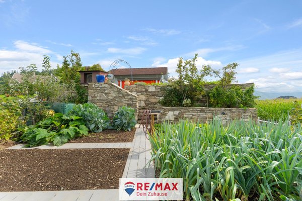 Der Außenbereich beeindruckt mit einem sehr gepflegten Garten, einem großzügigen Gemüsegarten, einer Vielzahl an Obstbäumen sowie einer Teichanlage mit zwei Teichen und Wasserfall. Das Anwesen verfügt über eine eigene Quelle mit großer Zisterne, die eine nachhaltige Wasserversorgung garantiert. Ein stilvoller Pavillon auf der Terrasse schafft ideale Orte für Erholung, Gartenfeste oder naturnahe Momente und verbindet das Anwesen harmonisch mit der Umgebung.
