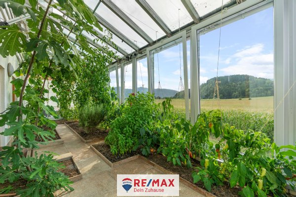 Im Erdgeschoss empfängt Sie ein eleganter Wohn- und Essbereich, der durch einen lichtdurchfluteten Wintergarten erweitert wird. Dieser wird derzeit als voll elektrisch gesteuertes Gewächshaus genutzt, wodurch Sie sich das ganze Jahr über mit eigenem Gemüse versorgen können. Die moderne, voll ausgestattete Küche eröffnet direkten Zugang zur Terrasse, während ein Gäste-WC den gehobenen Komfort abrundet.