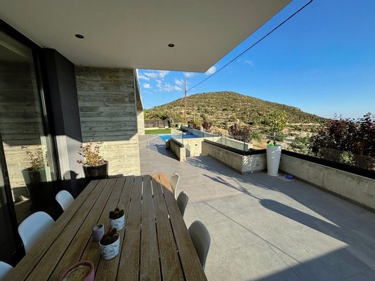 Die Villa ist mit hochmodernen energieeffizienten Systemen ausgestattet, darunter 6,4-kW-Photovoltaikmodule und eine 2-Panel-Solaranlage mit zwei Wassertanks und Pumpen, die Nachhaltigkeit und reduzierte Versorgungskosten gewährleisten. Das Interieur ist auf Eleganz und Komfort ausgelegt und verfügt über halbfeste Parkettböden, hochwertige Sanitärkeramik und eine moderne Küche mit großer Inselbar und hochwertigen Geräten.