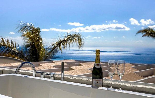 Panoramablick auf das saphirfarbene Meer und atemberaubende "California Sunsets" auf dem