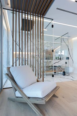 Das Innendesign fördert Ruhe, Komfort und Selbstreflexion. Alle Räume wurden so gestaltet, dass sie Privatsphäre und Entspannung maximieren. Eingebaute Badezimmer mit atemberaubender Aussicht, begehbare Duschen, stilvolle Waschbecken und Spa-Bäder in den Zimmern bieten ein persönliches Retreat-Erlebnis, ohne das Haus verlassen zu müssen.