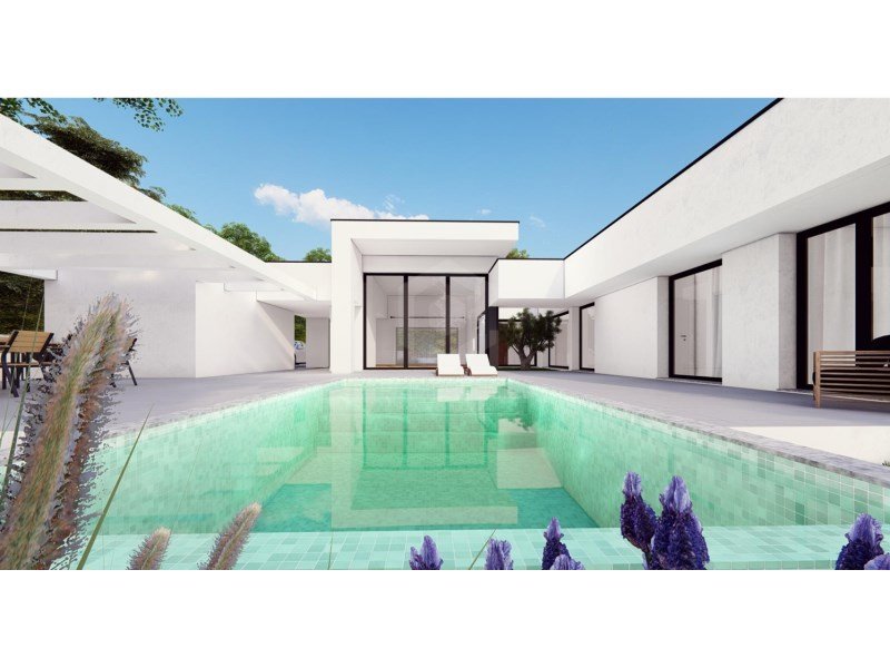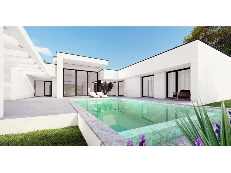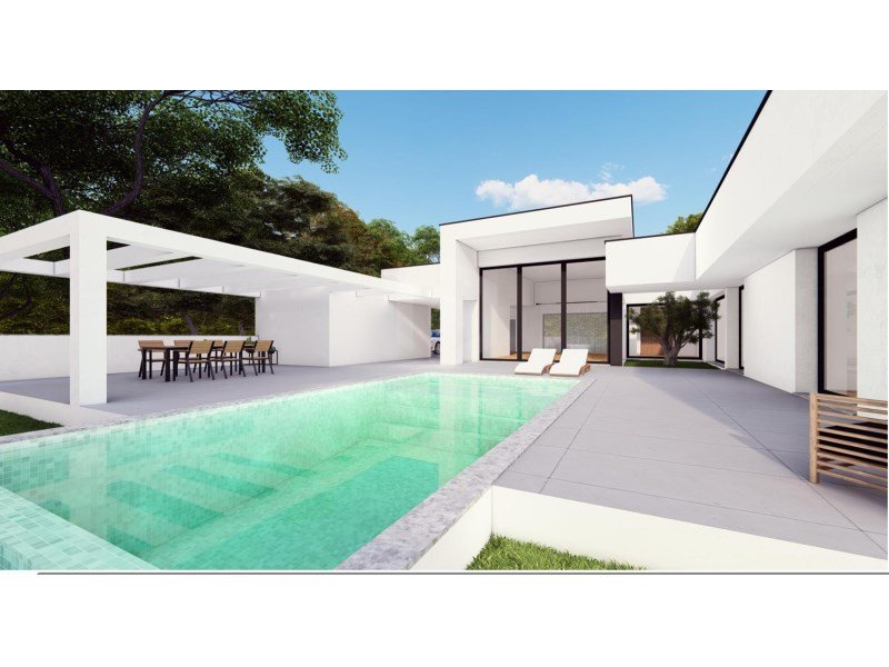 Luxuriöse einstöckige Villa mit 4 Schlafzimmern, erbaut auf einem Grundstück von 741 m², mit 240 m² Baufläche. Ein Haus mit modernen und funktionalen Linien, das entworfen ...mehr lesen