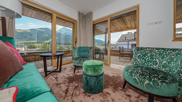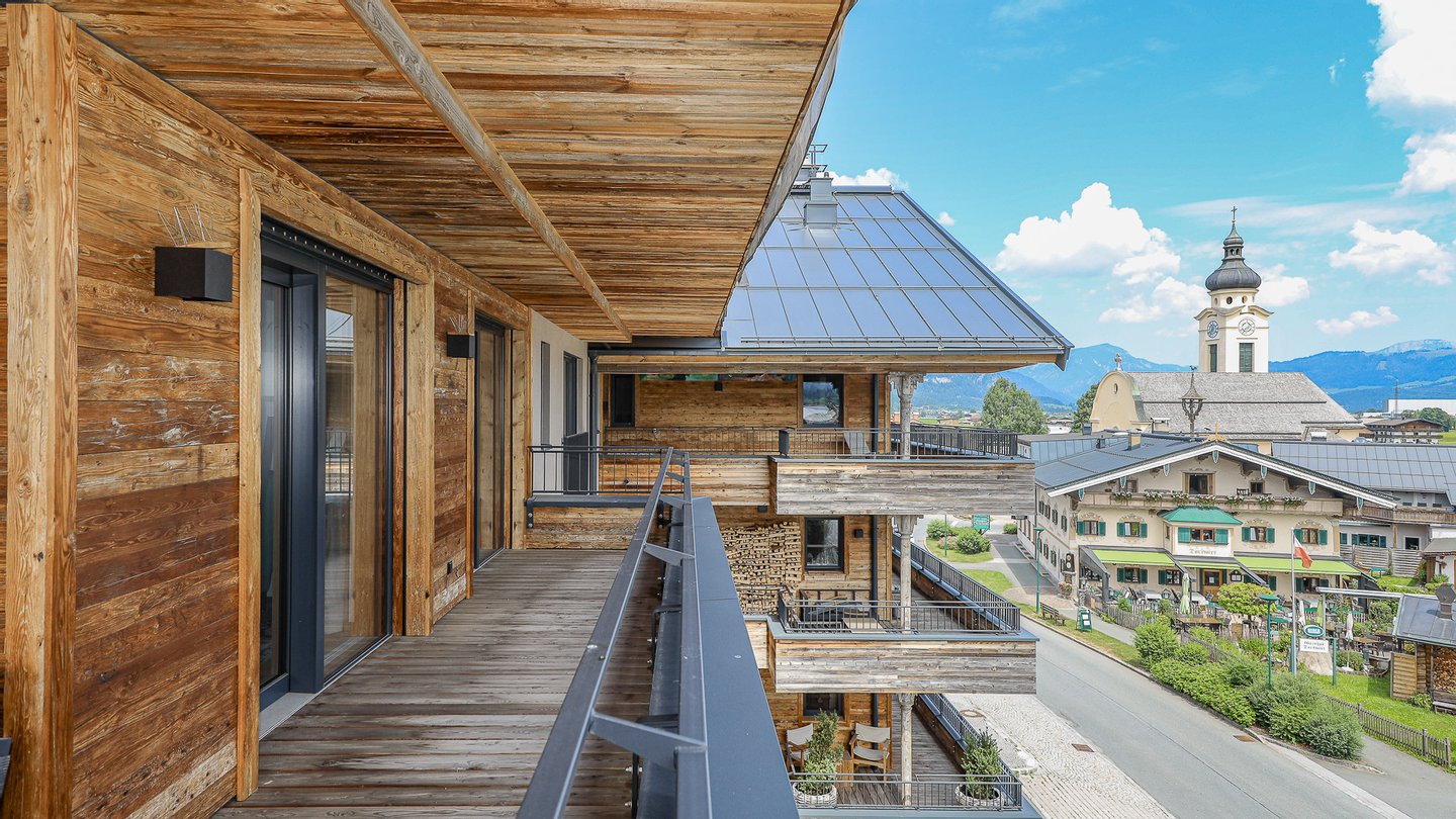 Ein weiteres Highlight ist die ca. 29 m² große, komplett überdachte Balkon-Terrasse mit traumhaftem Blick auf das Kitzbüheler Horn.