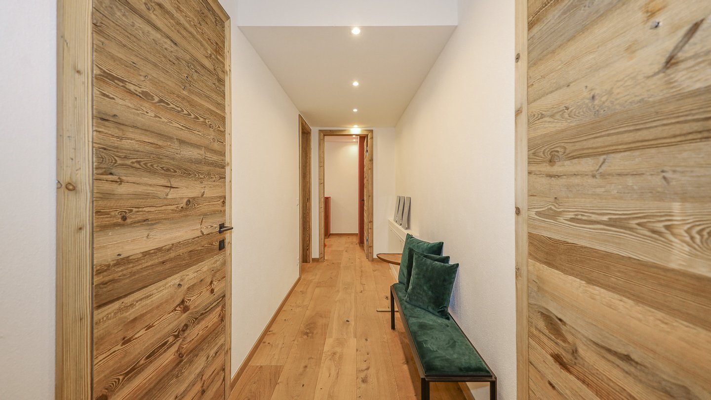 In den Wohn- und Schlafräumen wurde ein hochwertiger Eichendielenboden verlegt.