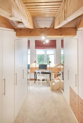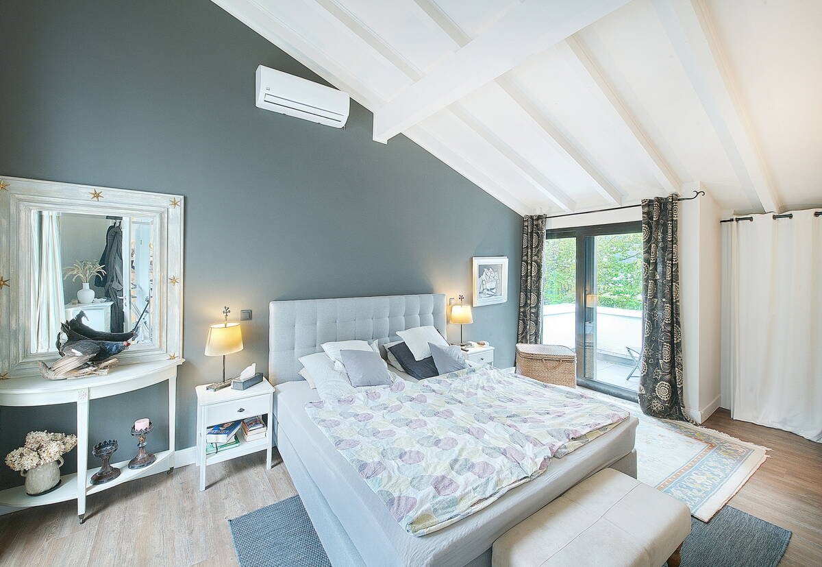 Das Obergeschoss hält ein komfortables Schlafzimmer mit Klimaanlage, ein modernes Bad sowie ein weiteres Zimmer bereit, das aktuell als Ankleide dient, aber ebenso als Kinder- oder Arbeitszimmer genutzt werden kann.