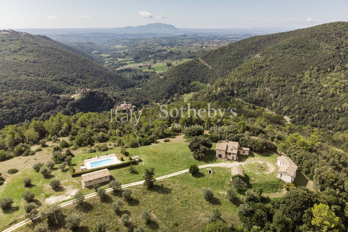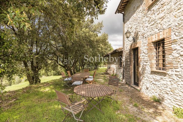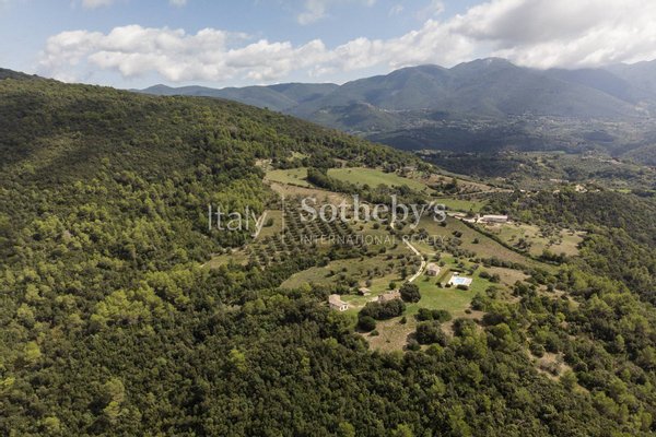 Eingebettet in die zeitlose Ruhe der Sabina, in einer natürlichen Umgebung von seltener Schönheit, umfasst dieses prestigeträchtige Anwesen von 21 Hektar ein Herrenhaus aus dem 17. Jahrhundert sowie zwei reizvolle Depandancen.Das Hau